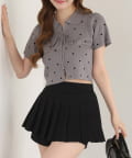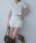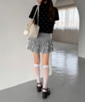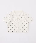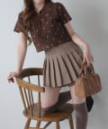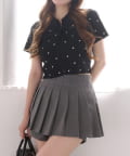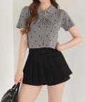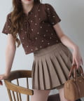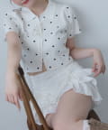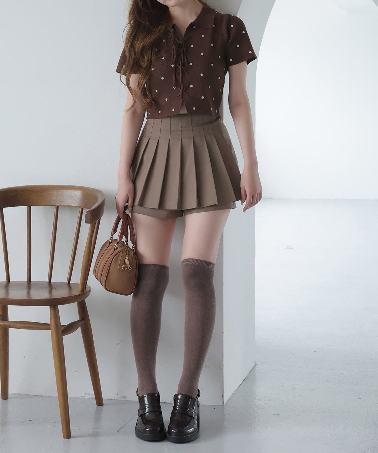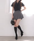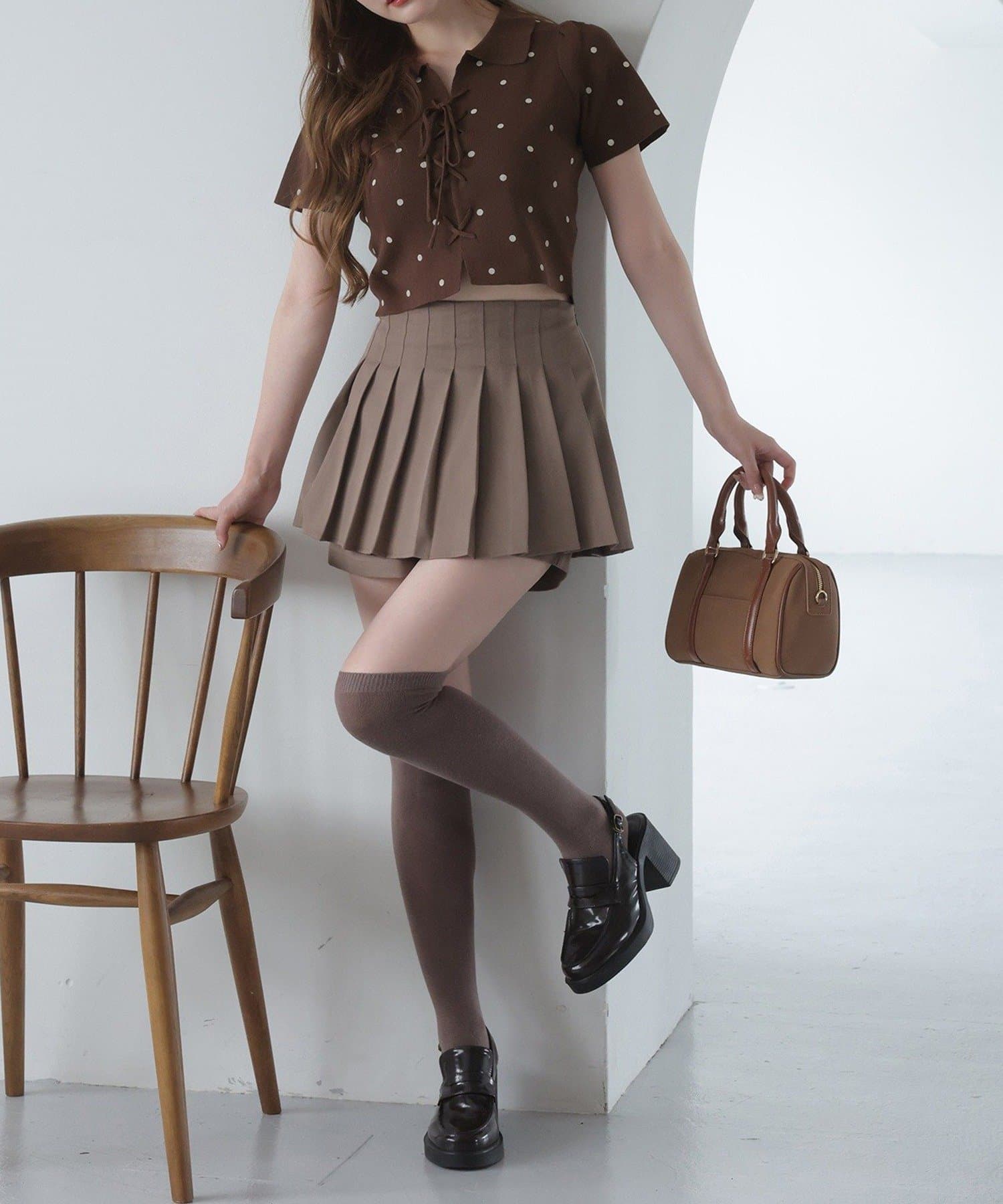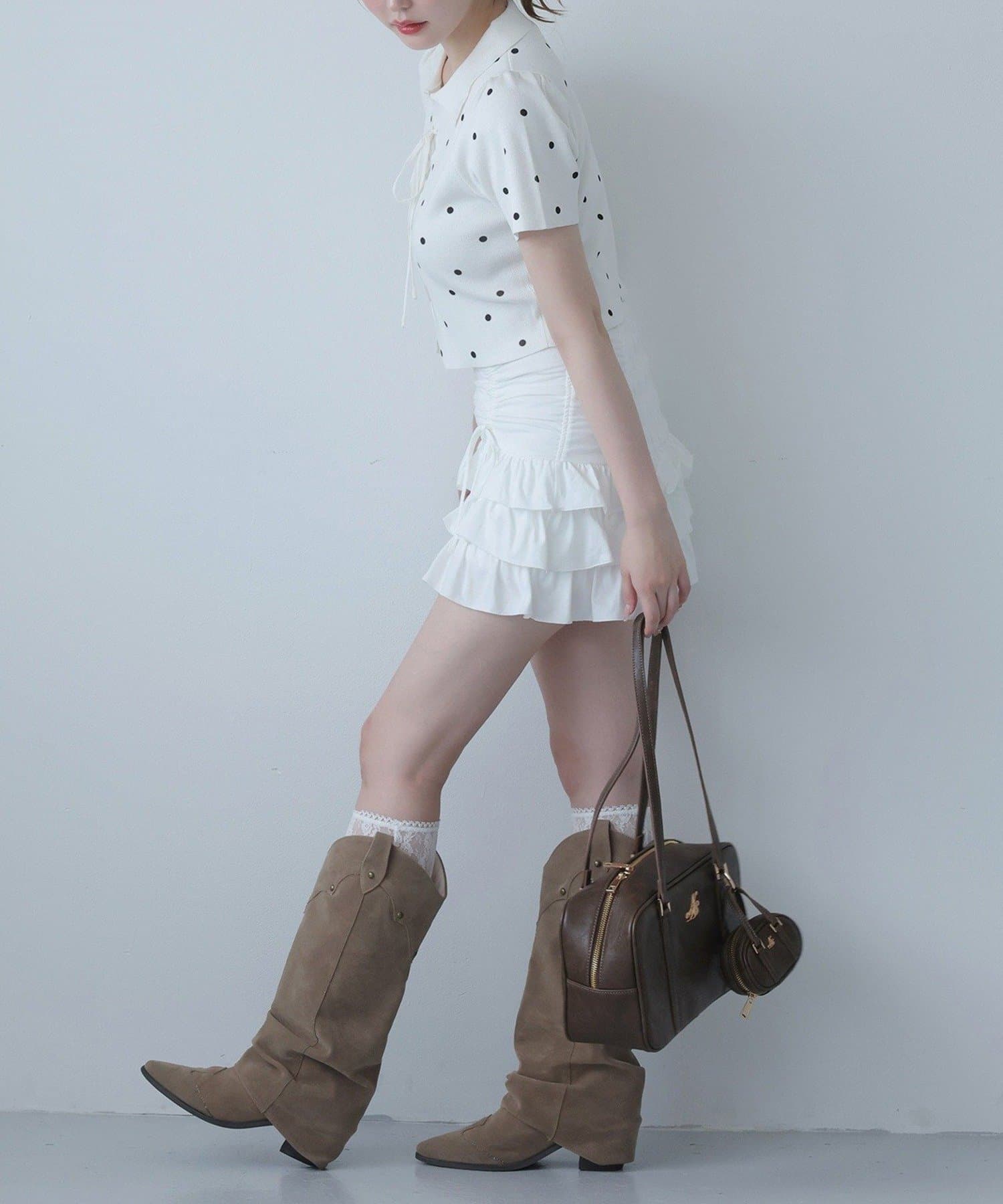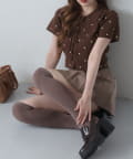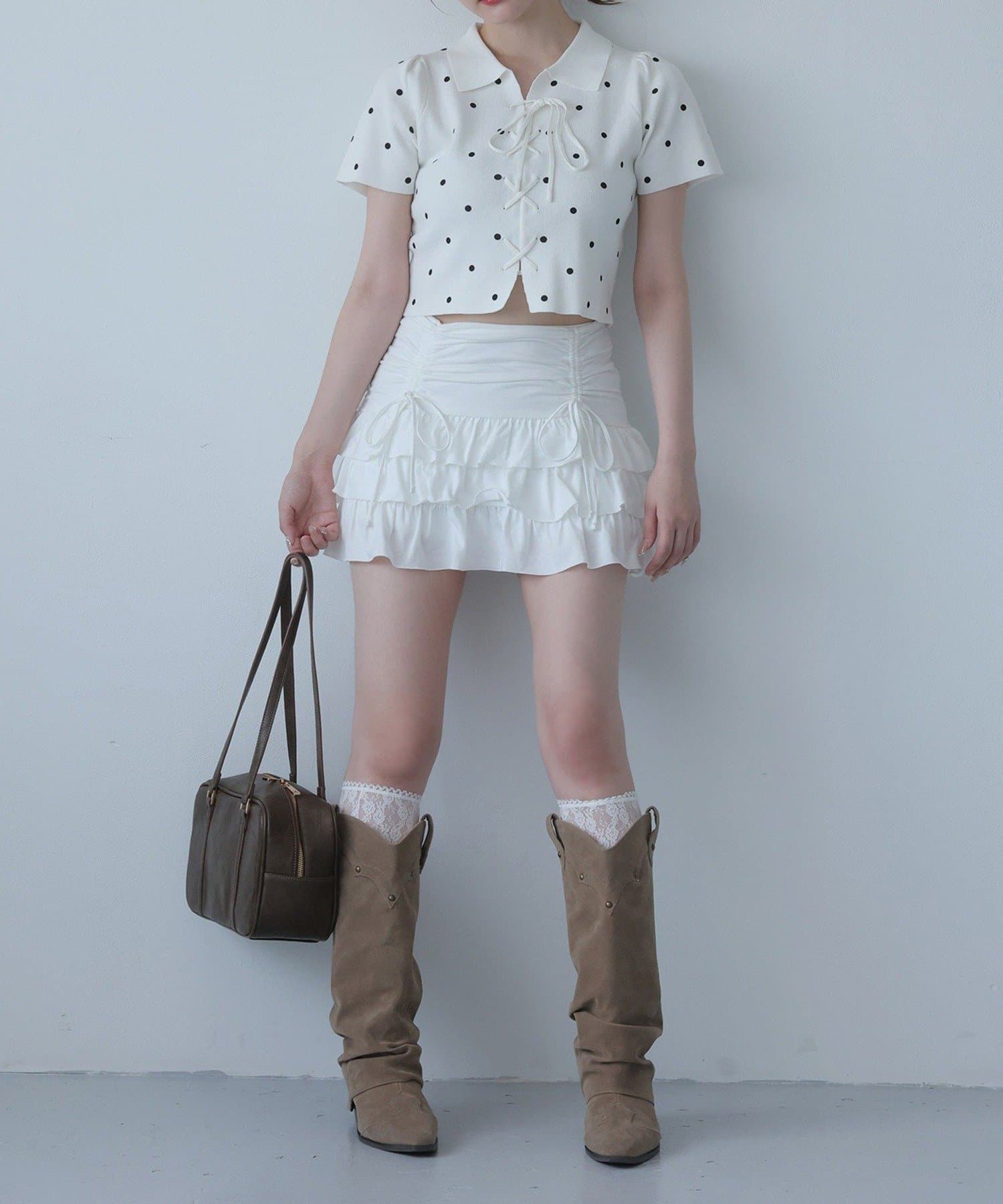 クラシカルなドット柄のニットに襟を合わせた甘さたっぷりの一枚。