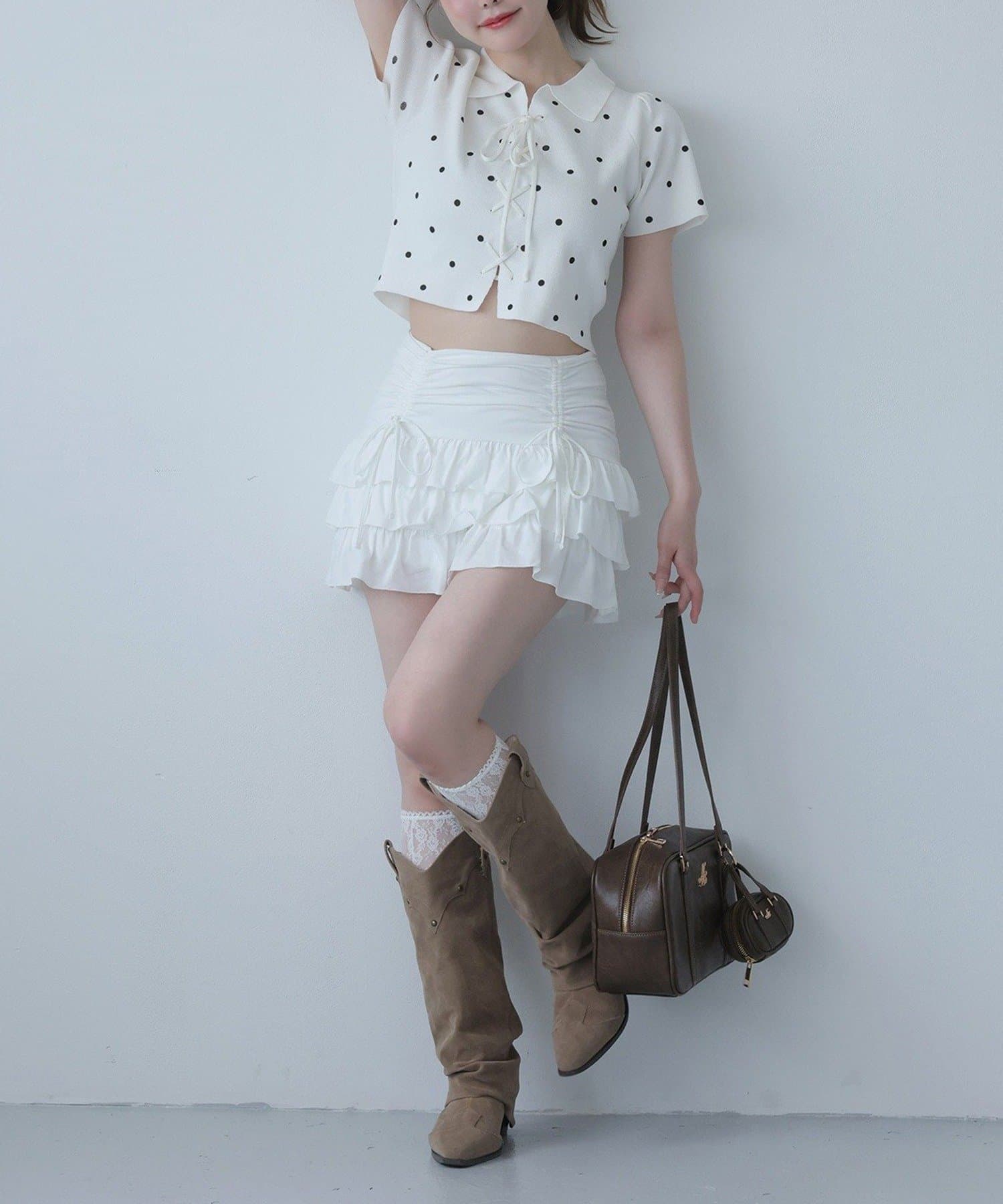 フロントにはレースアップデザインのリボンをあしらい、ガーリーなアクセントをプラスしました♡
