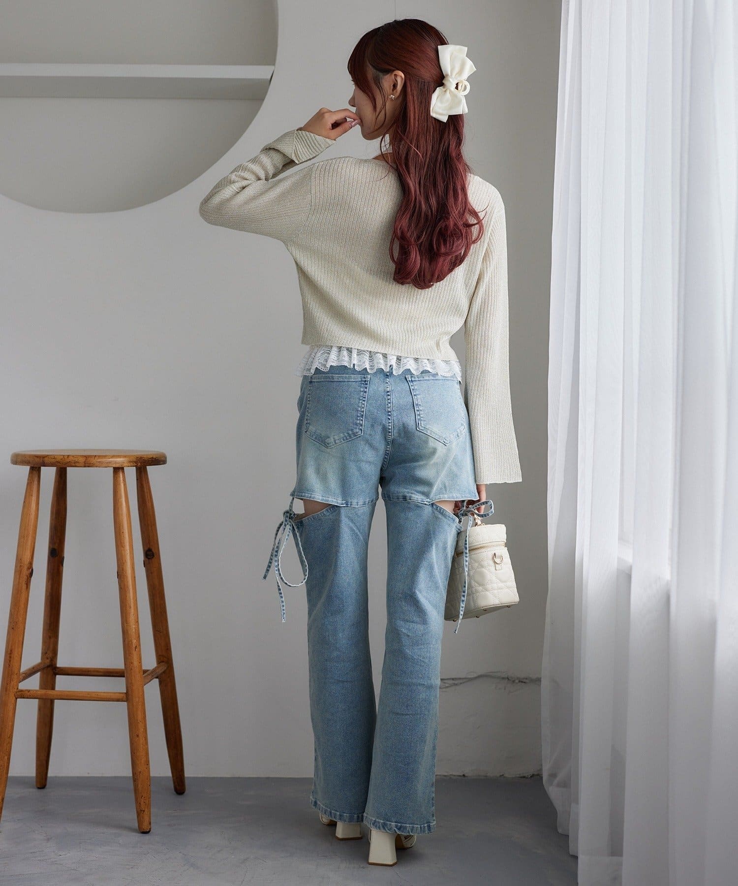 マーメイドスカートやフレアスカートと合わせればフェミニンな雰囲気に。