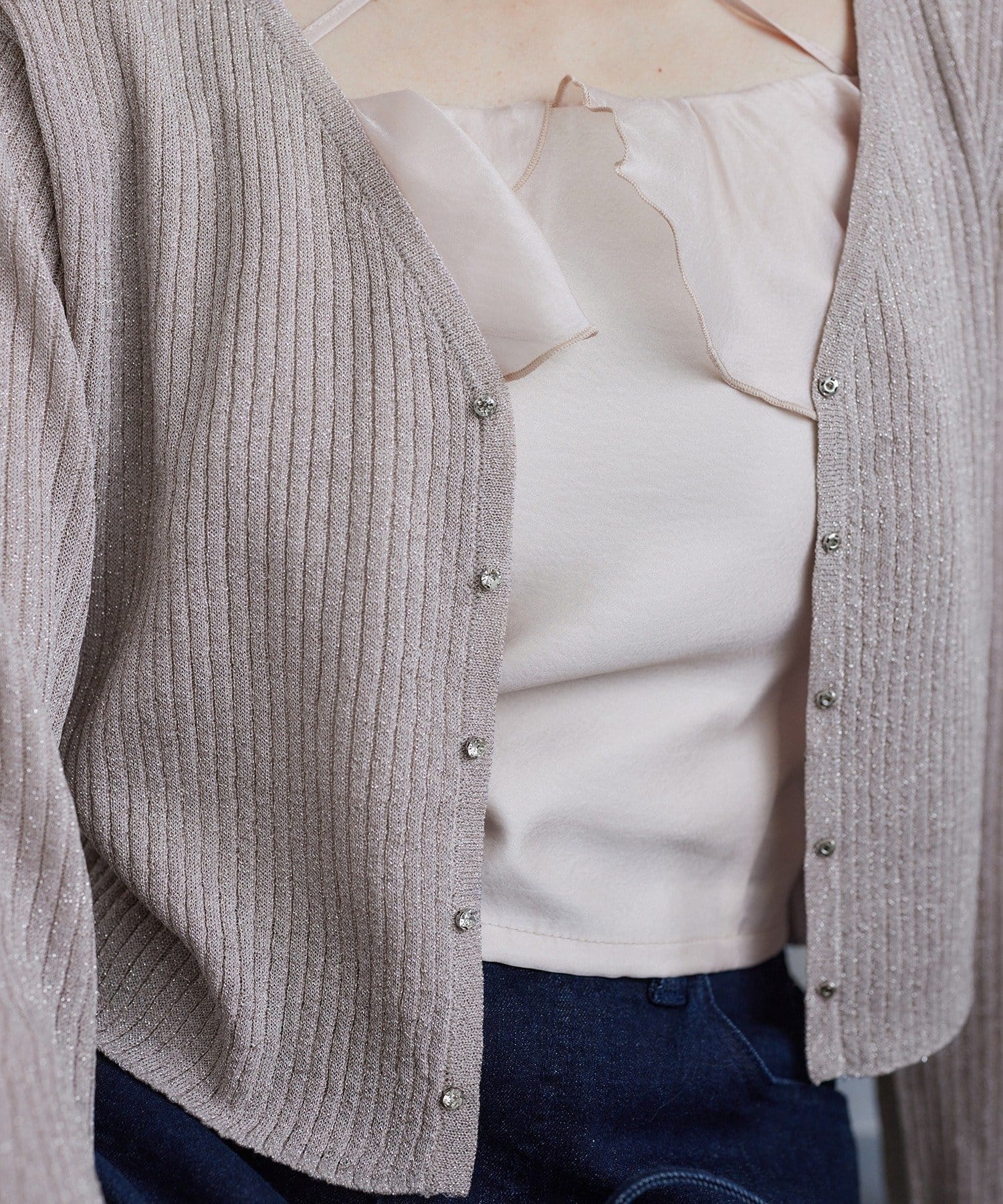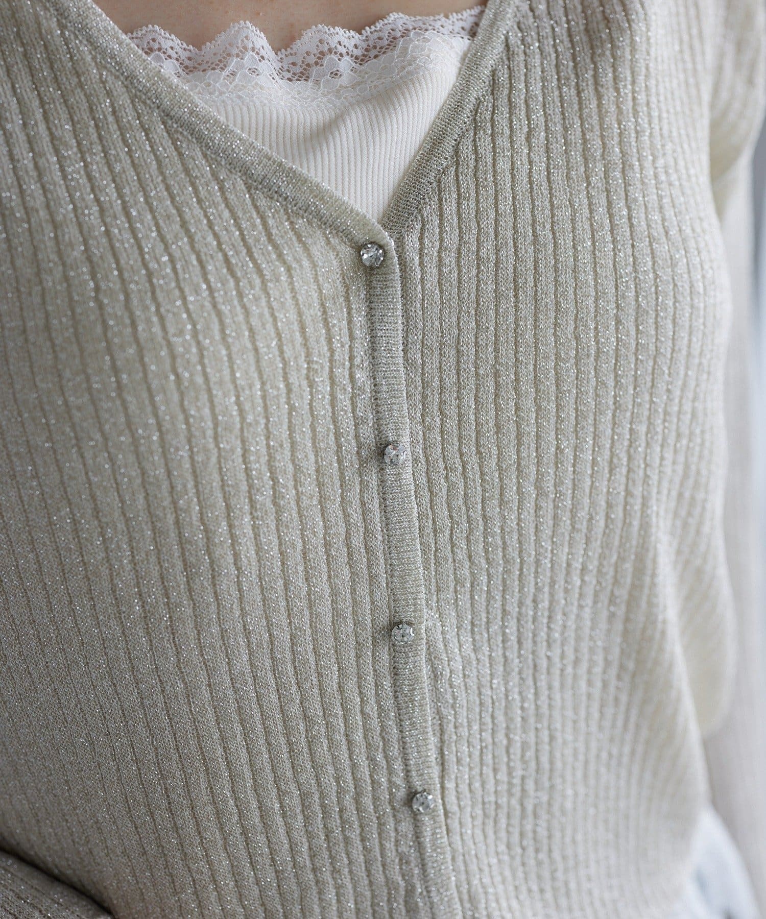 NICE CLAUP / OLIVE des OLIVE OUTLET(ナイスクラップ  / オリーブ デ オリーブ アウトレット) 【one after another】ビジュー釦ラメシアーカーデ