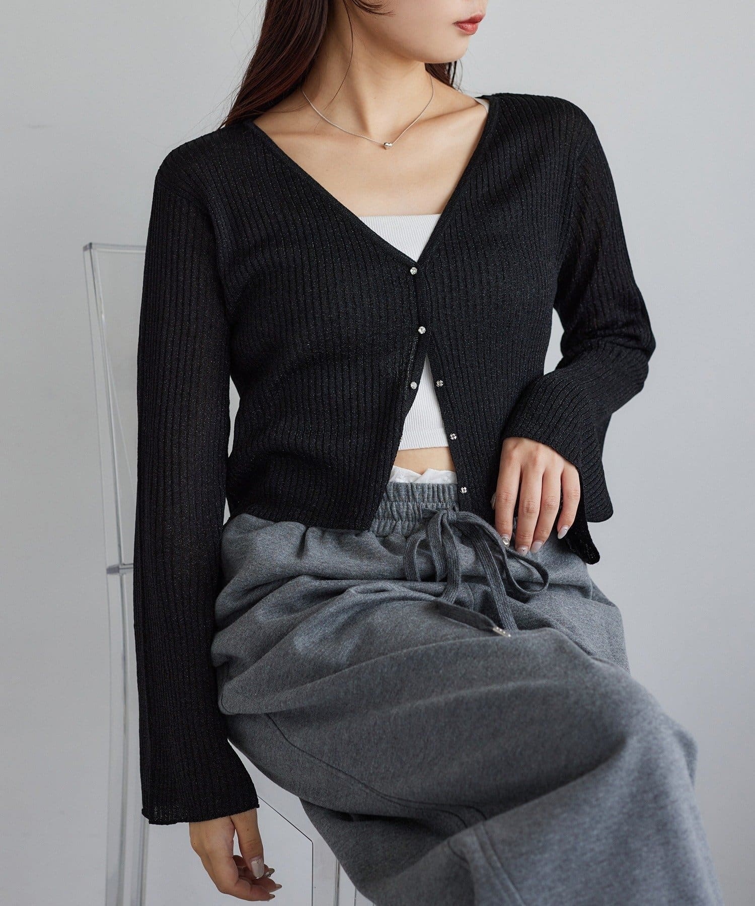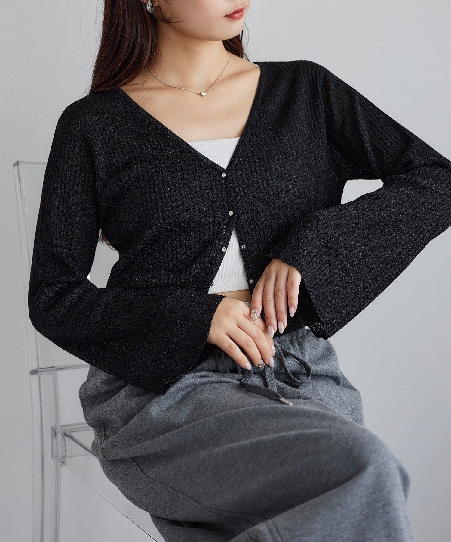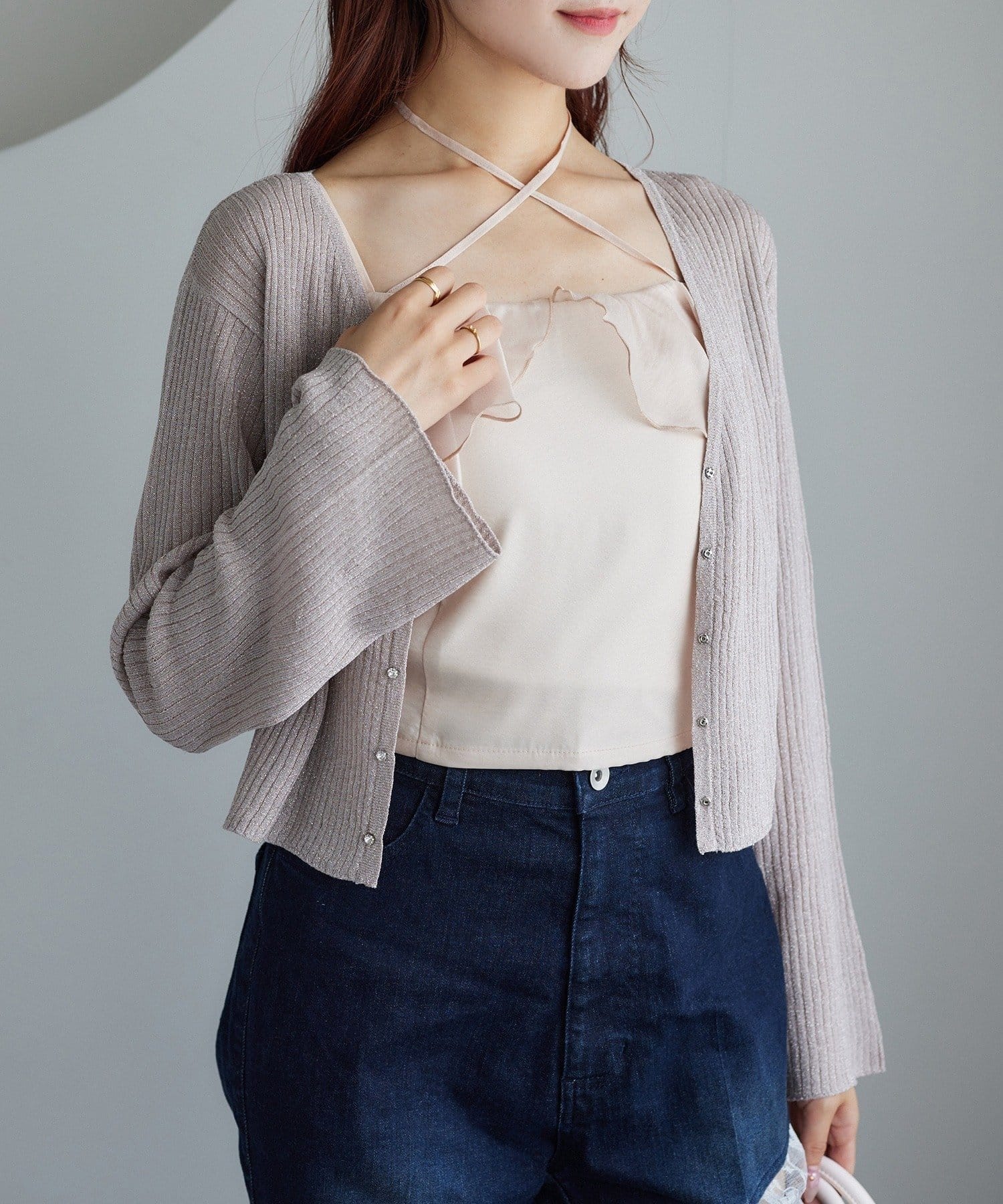 TOP > NICE CLAUP / OLIVE des OLIVE OUTLET > レディース > トップス > カーディガン/ボレロ > 【one after another】ビジュー釦ラメシアーカーデ