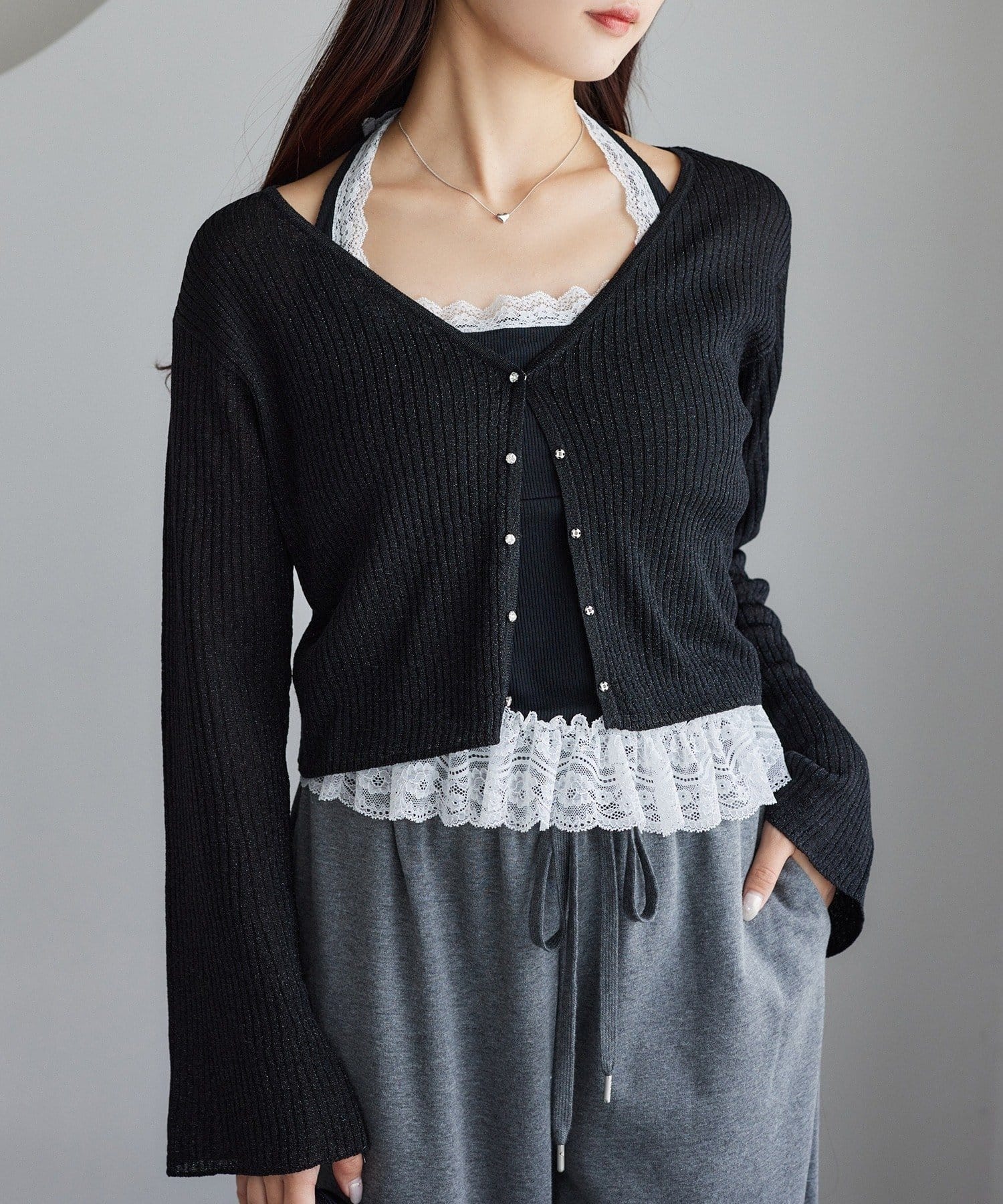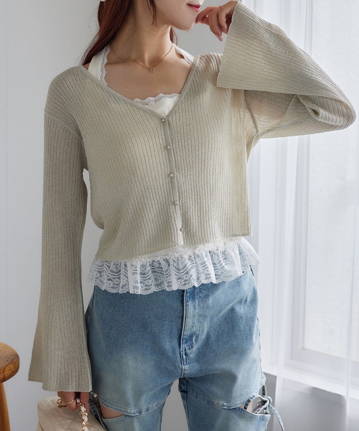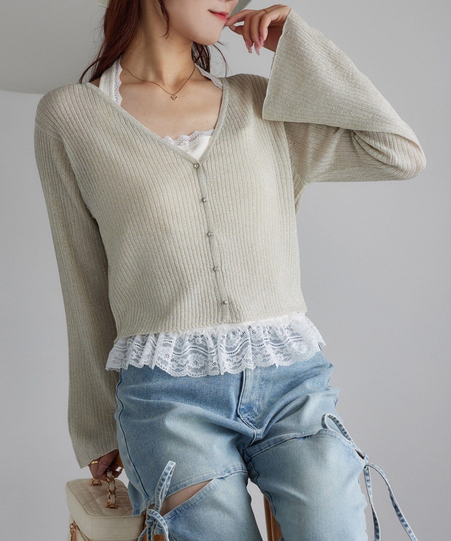 TOP > NICE CLAUP / OLIVE des OLIVE OUTLET > レディース > トップス > カーディガン/ボレロ > 【one after another】ビジュー釦ラメシアーカーデ