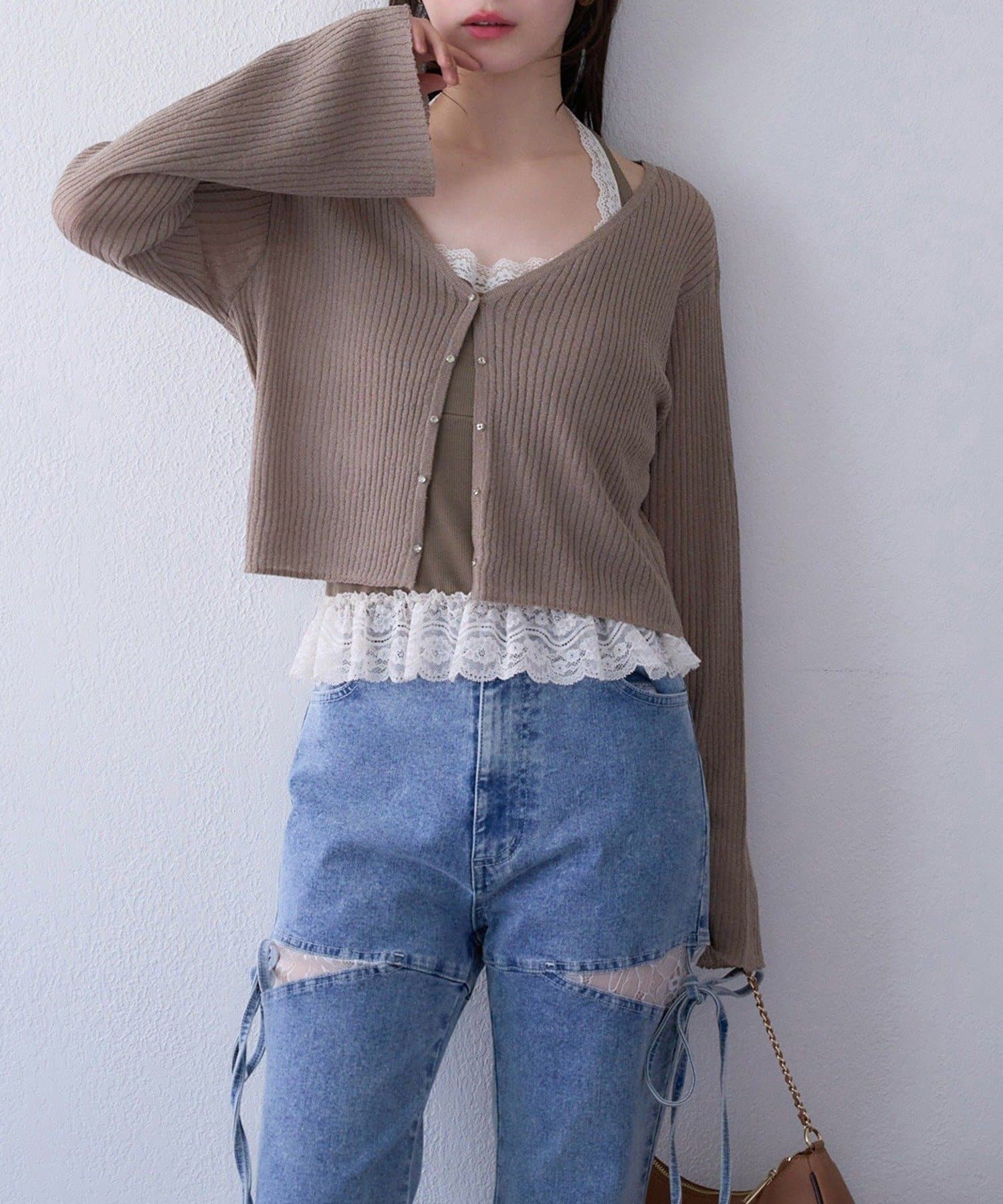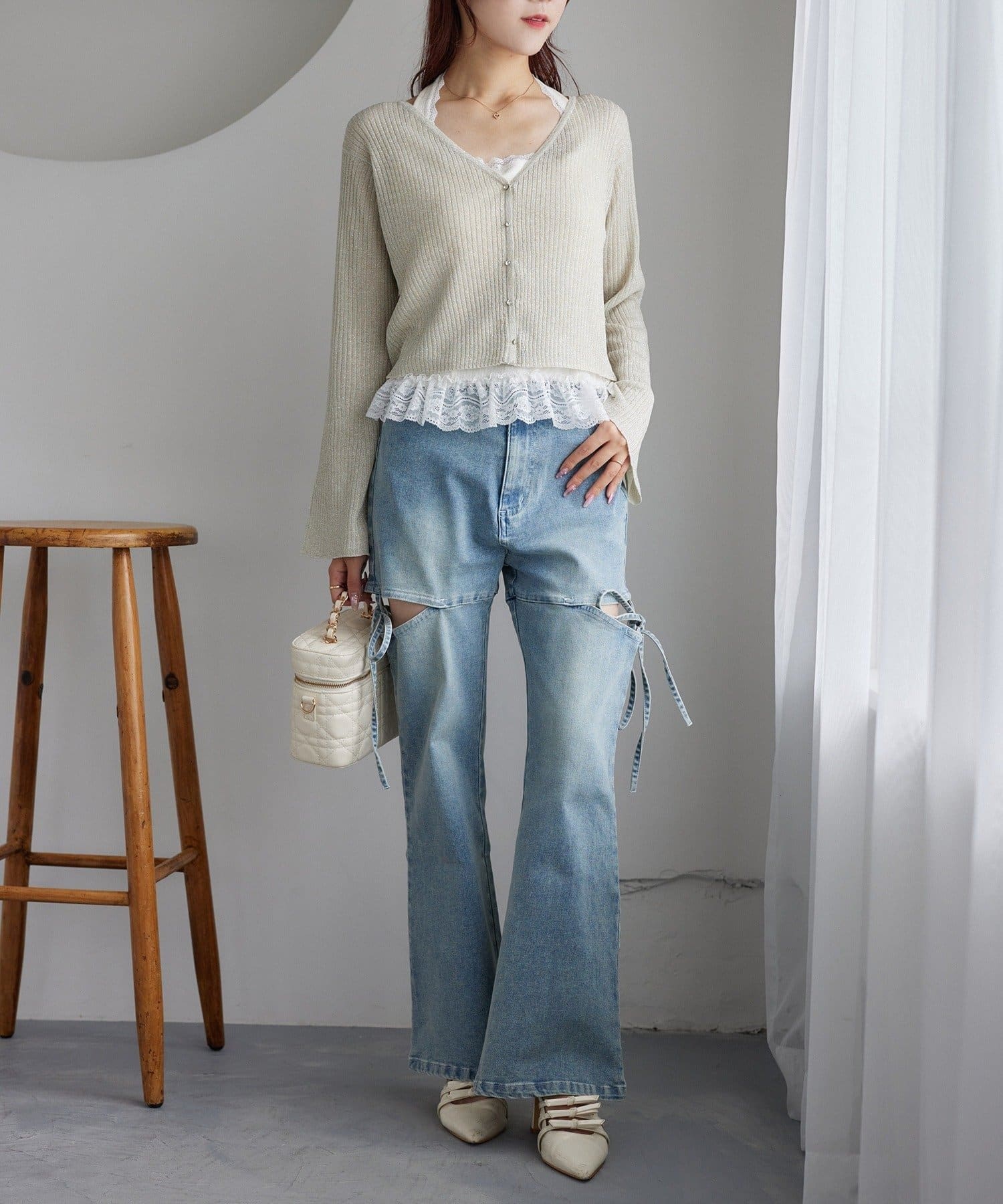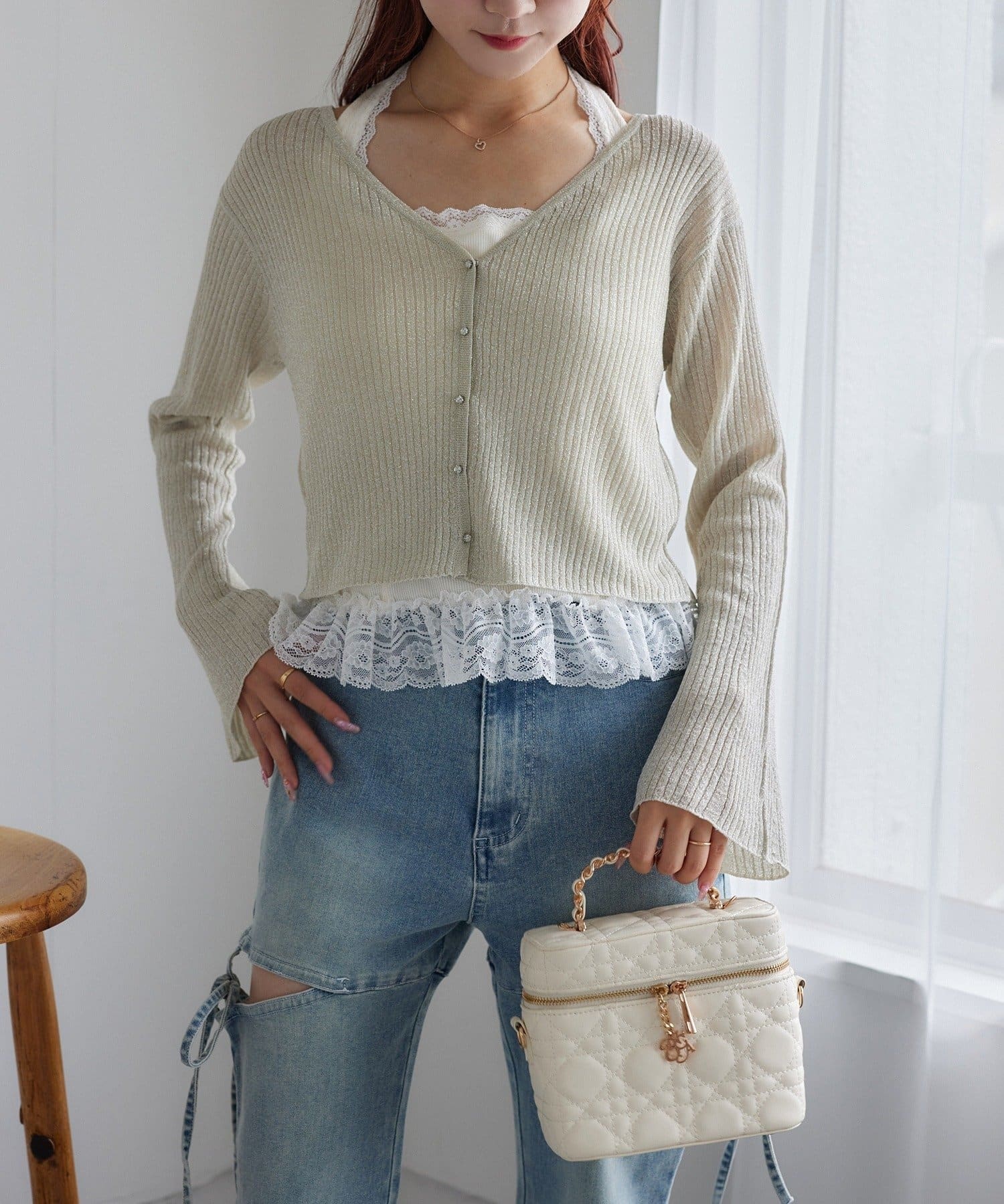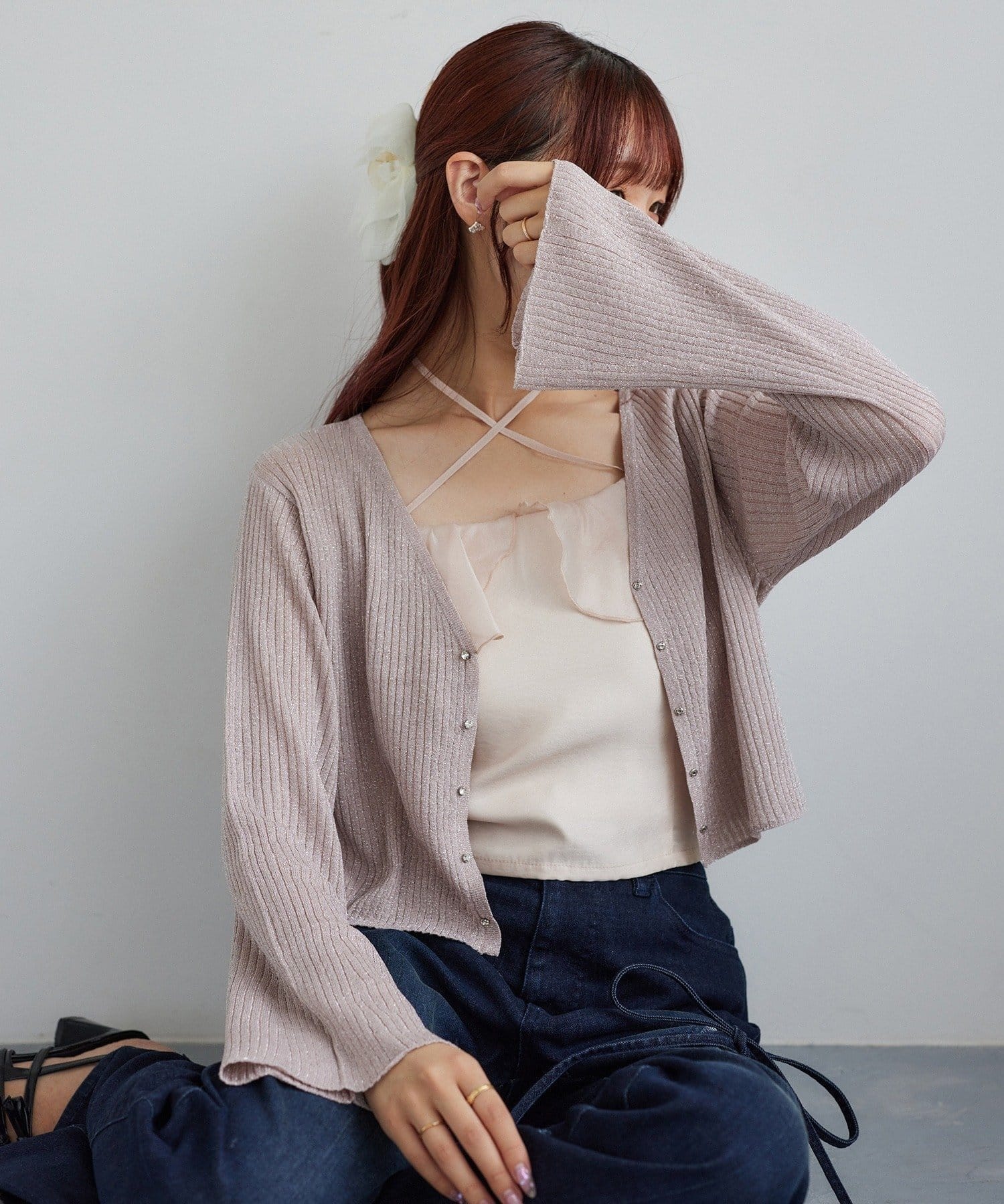 • NICE CLAUP / OLIVE des OLIVE OUTLET(ナイスクラップ  / オリーブ デ オリーブ アウトレット) 【one after another】ビジュー釦ラメシアーカーデ
