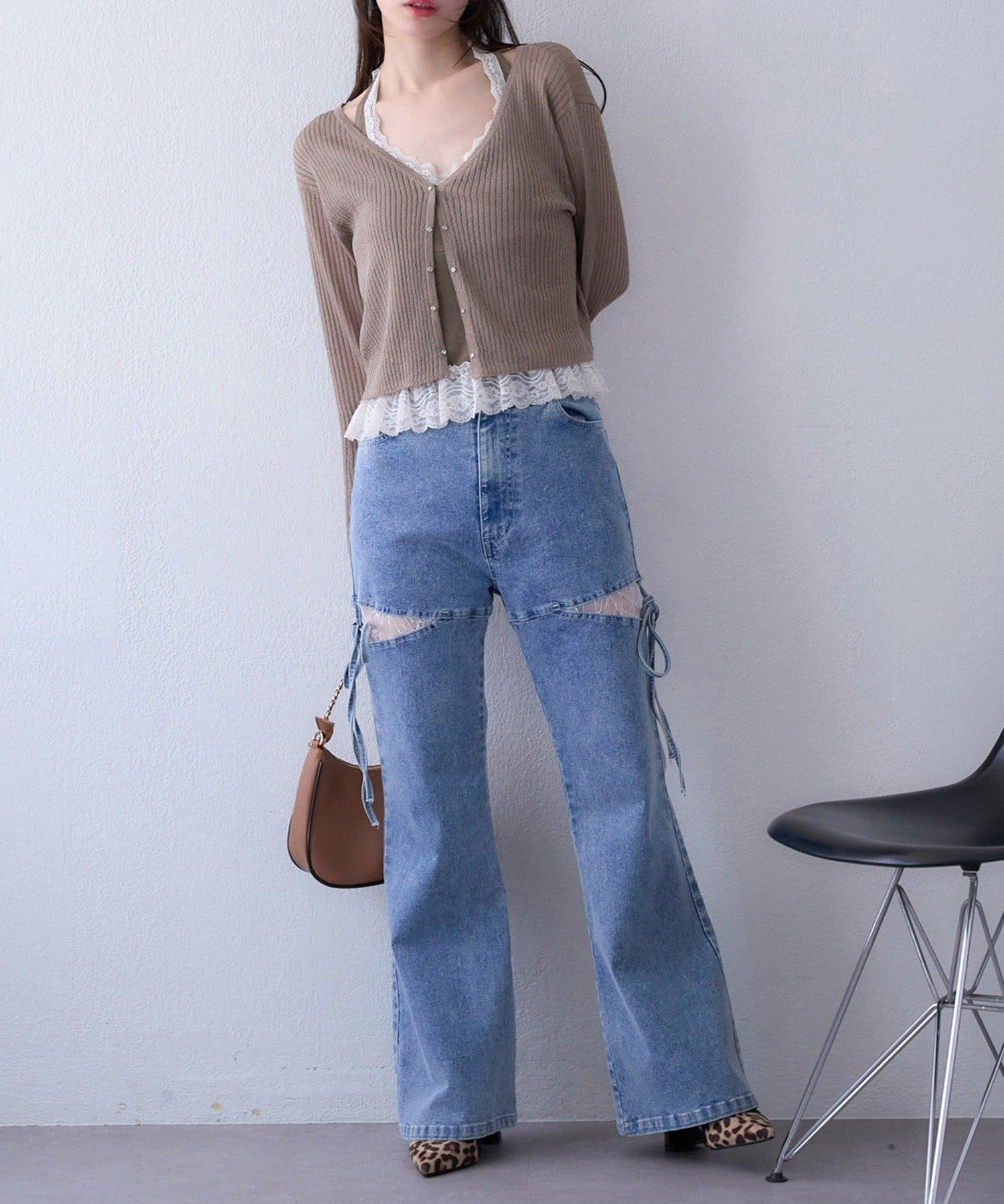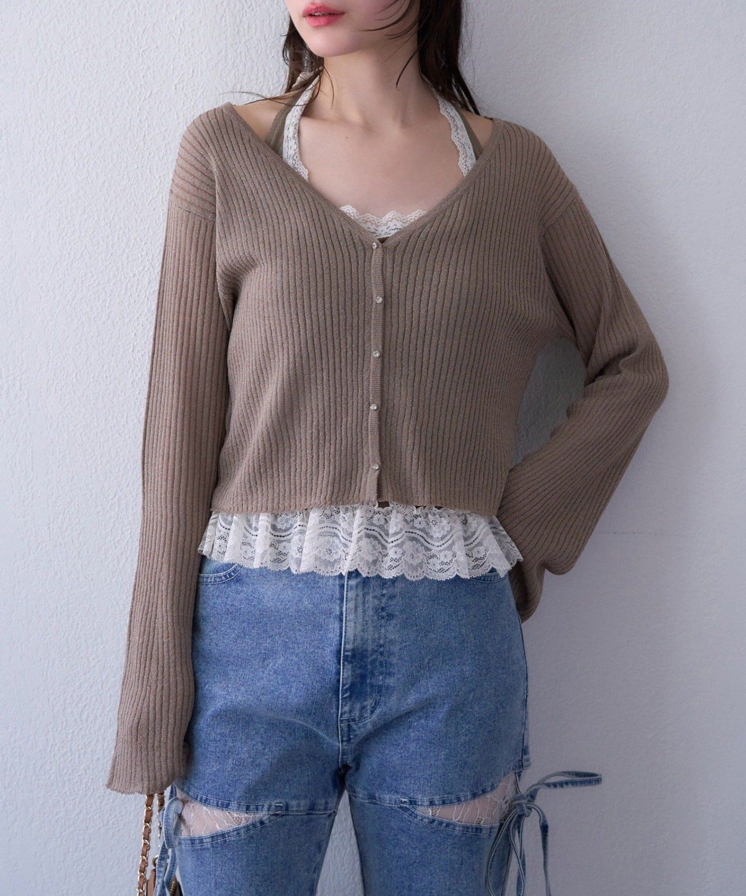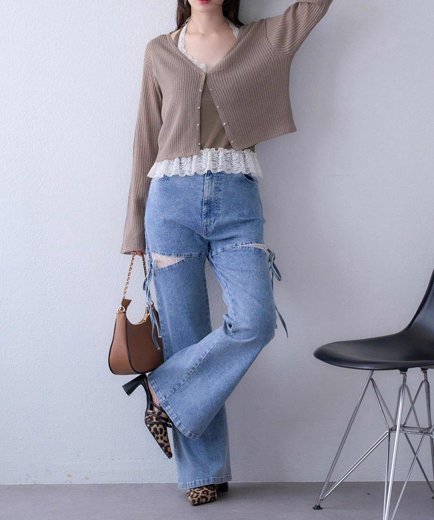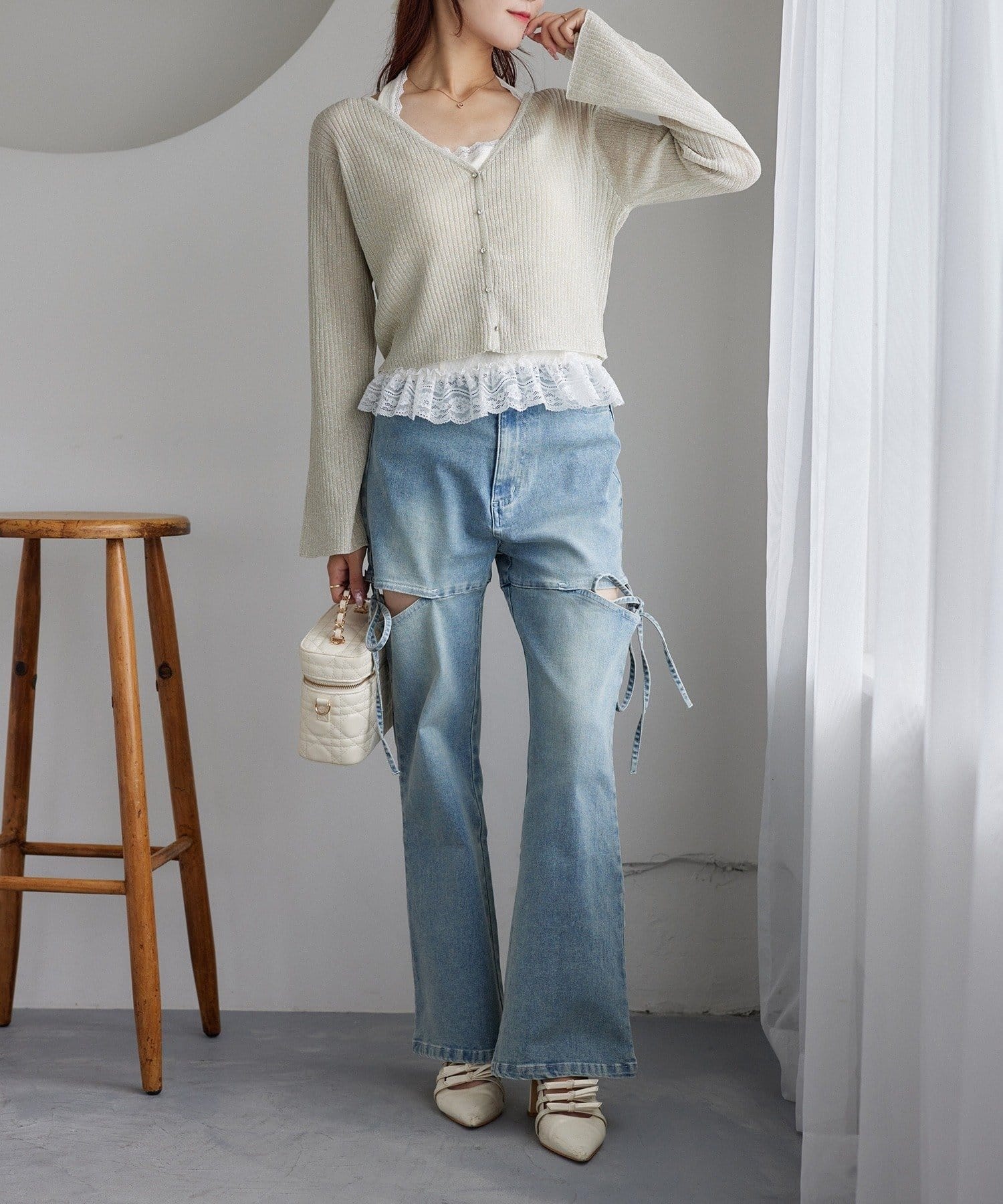 • NICE CLAUP / OLIVE des OLIVE OUTLET(ナイスクラップ  / オリーブ デ オリーブ アウトレット) 【one after another】ビジュー釦ラメシアーカーデ