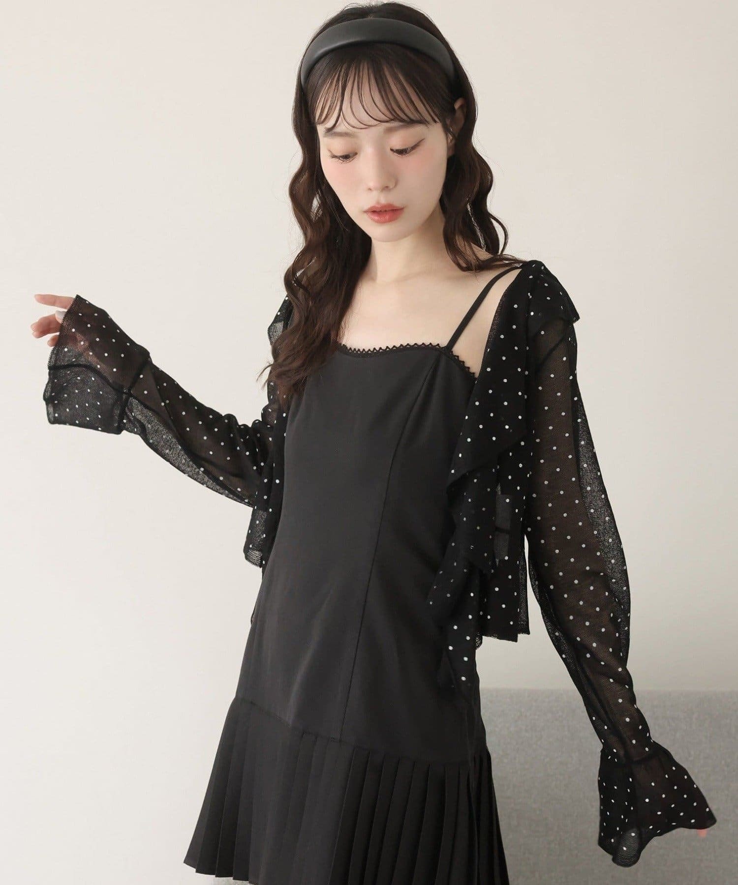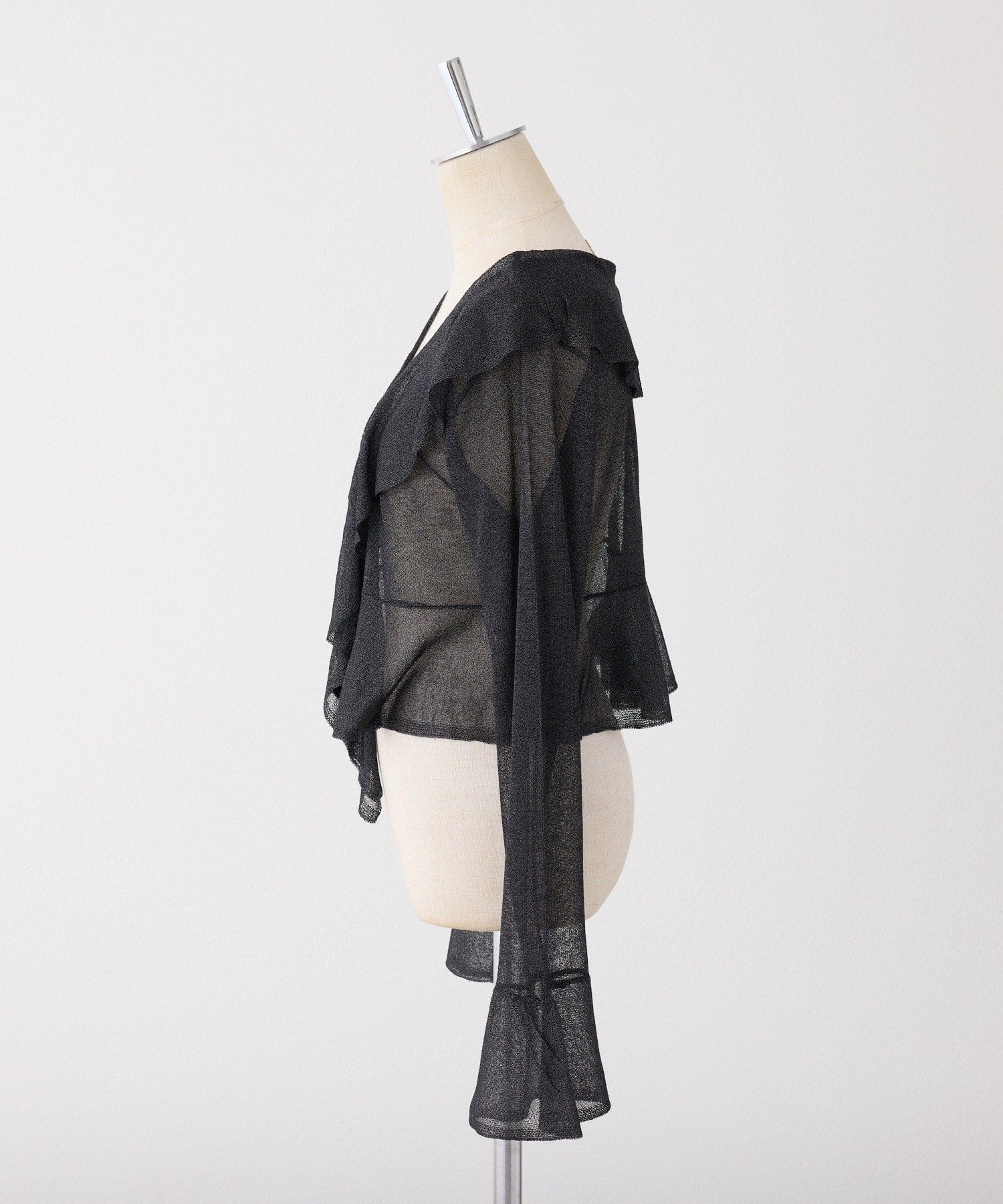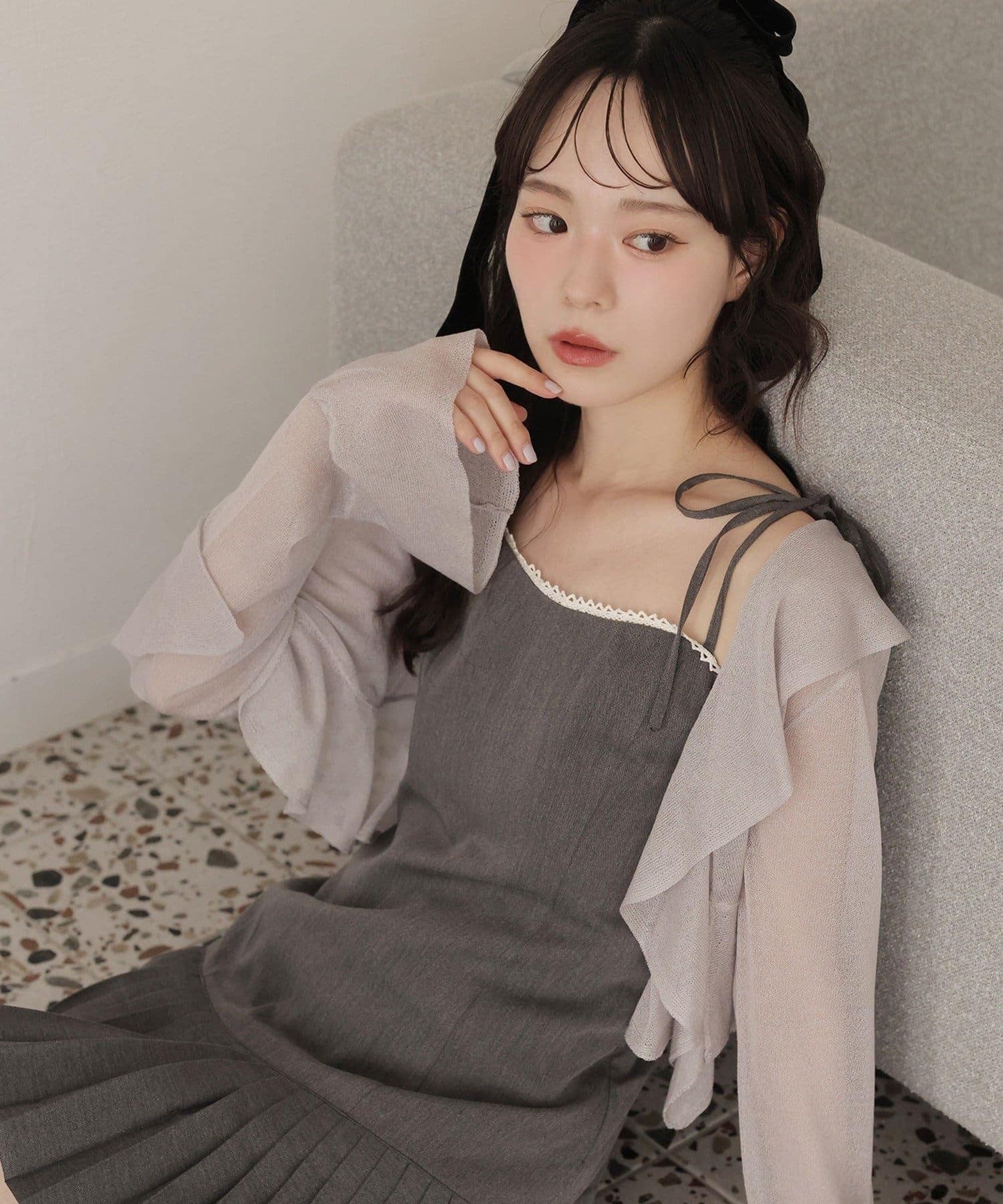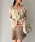ショート丈でこなれ感があり、フリルが華やかさをプラスしてくれるボレロカーディガン