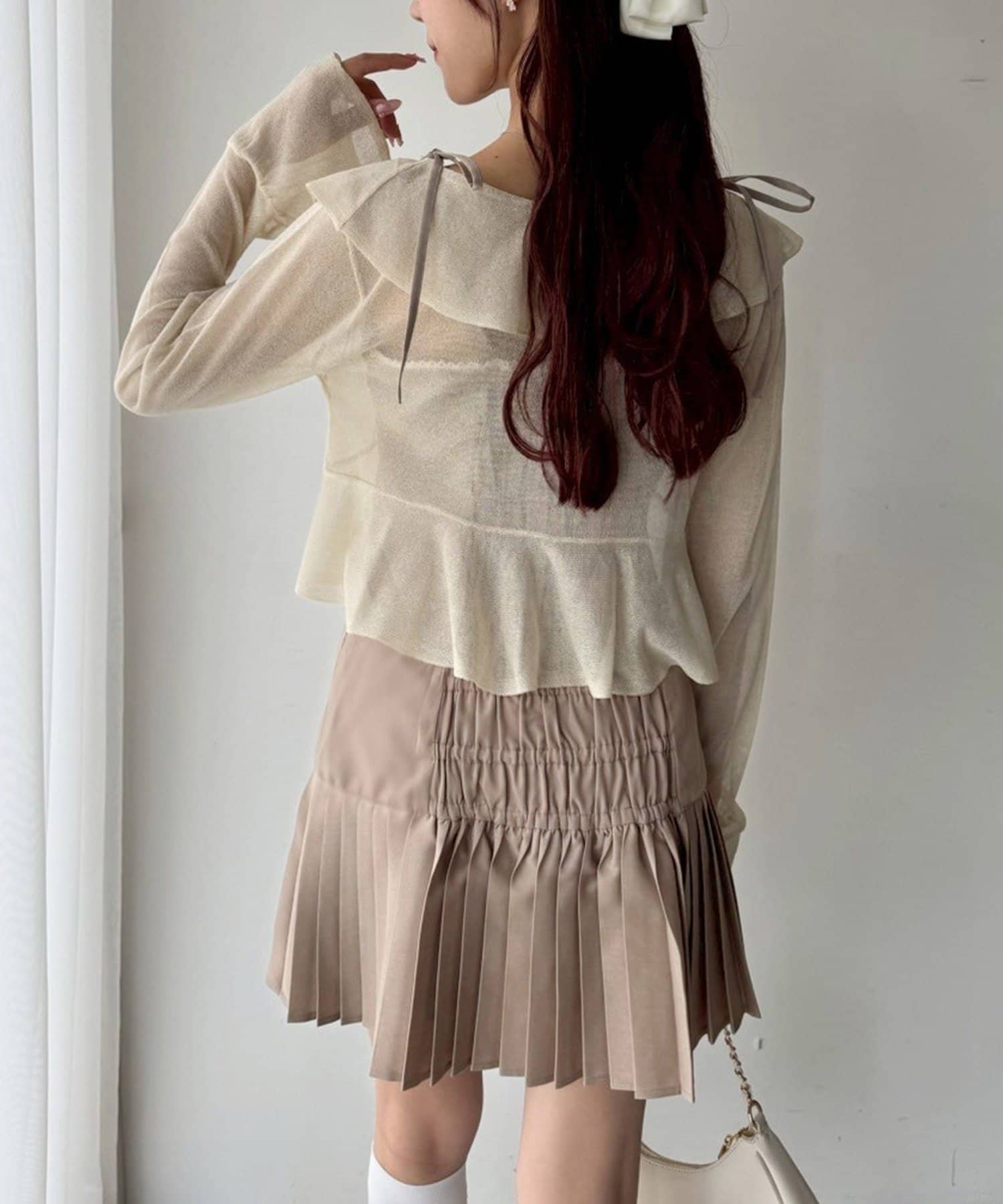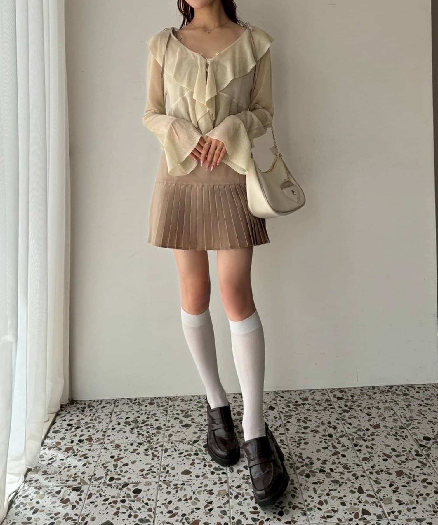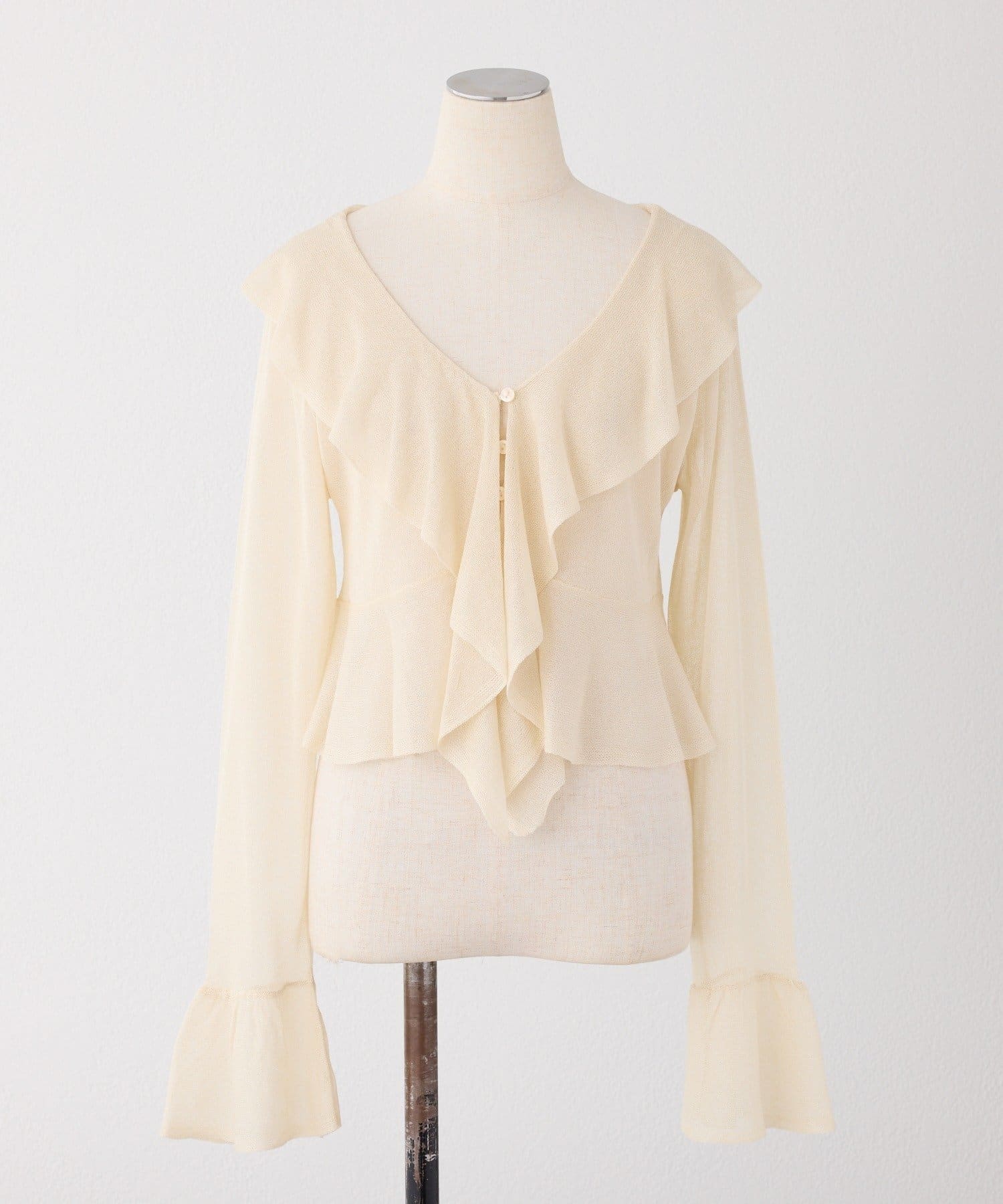 ショート丈でこなれ感があり、フリルが華やかさをプラスしてくれるボレロカーディガン