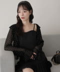 トップスとして着るときは、中にキャミソールを合わせるのがオススメ。