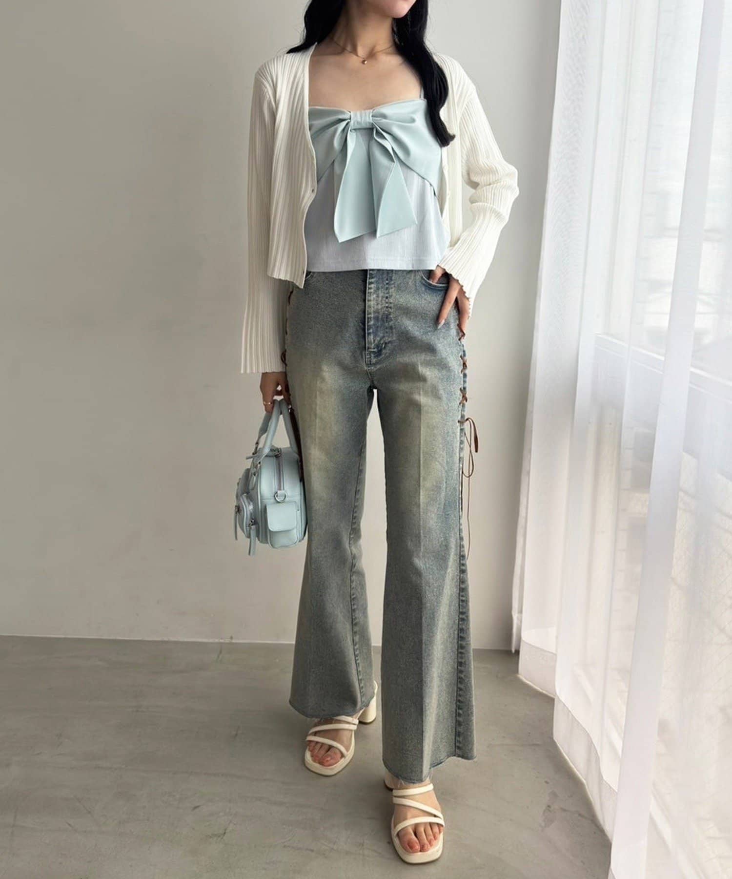 ブラウスやマーメードスカートと合わせればフェミニンなスタイリングが完成します。
