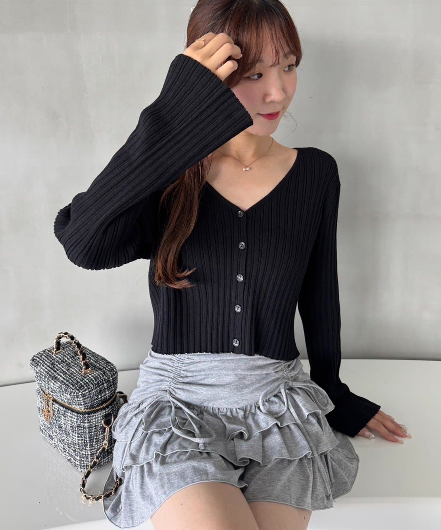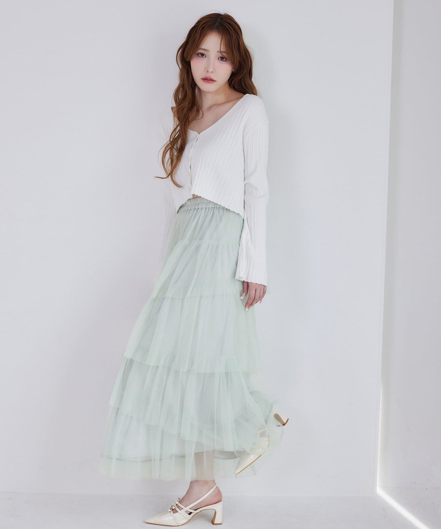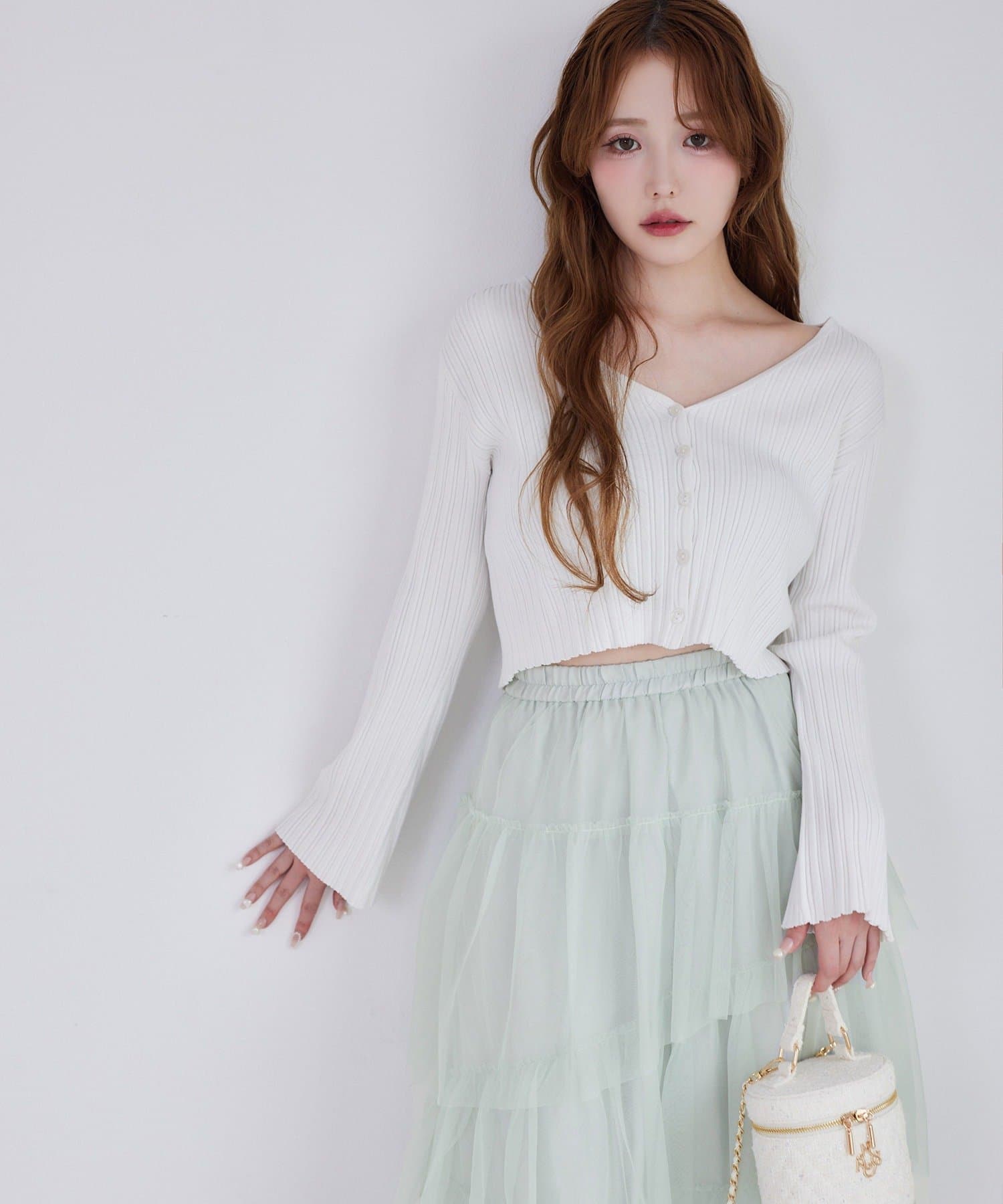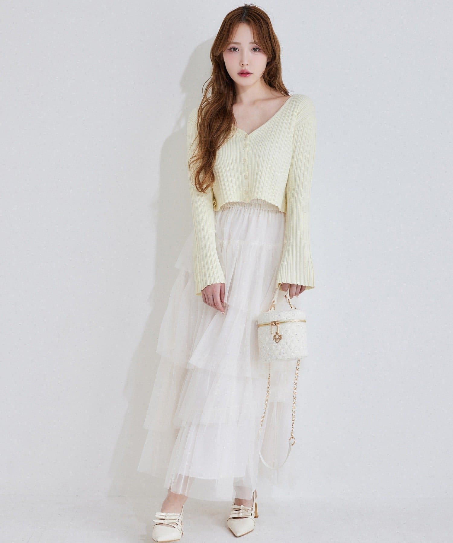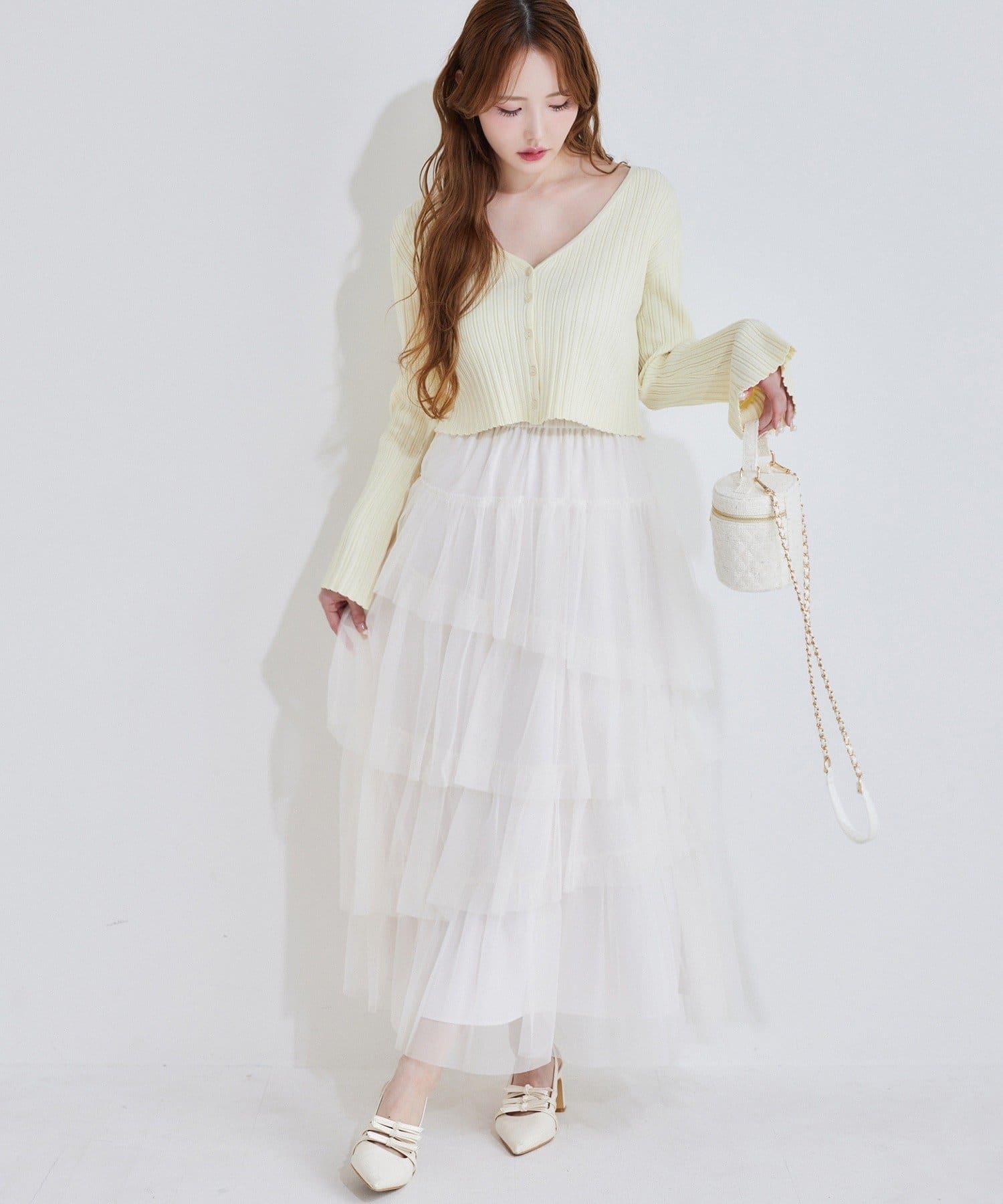 クロップド丈なので、ミニボトムはもちろん、ロングボトムとも相性抜群。