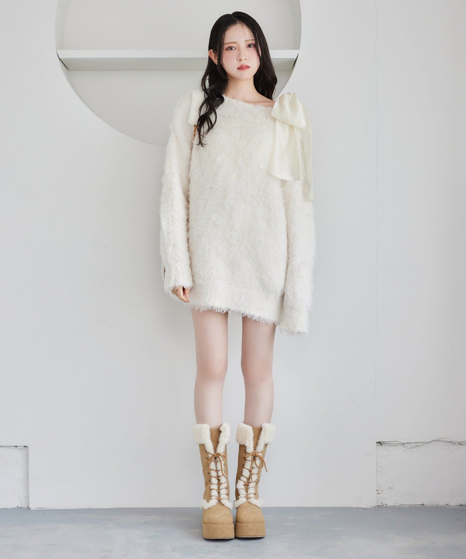 トレンドのウェーブファー素材が目を引く、愛されチュニックニットが登場!