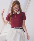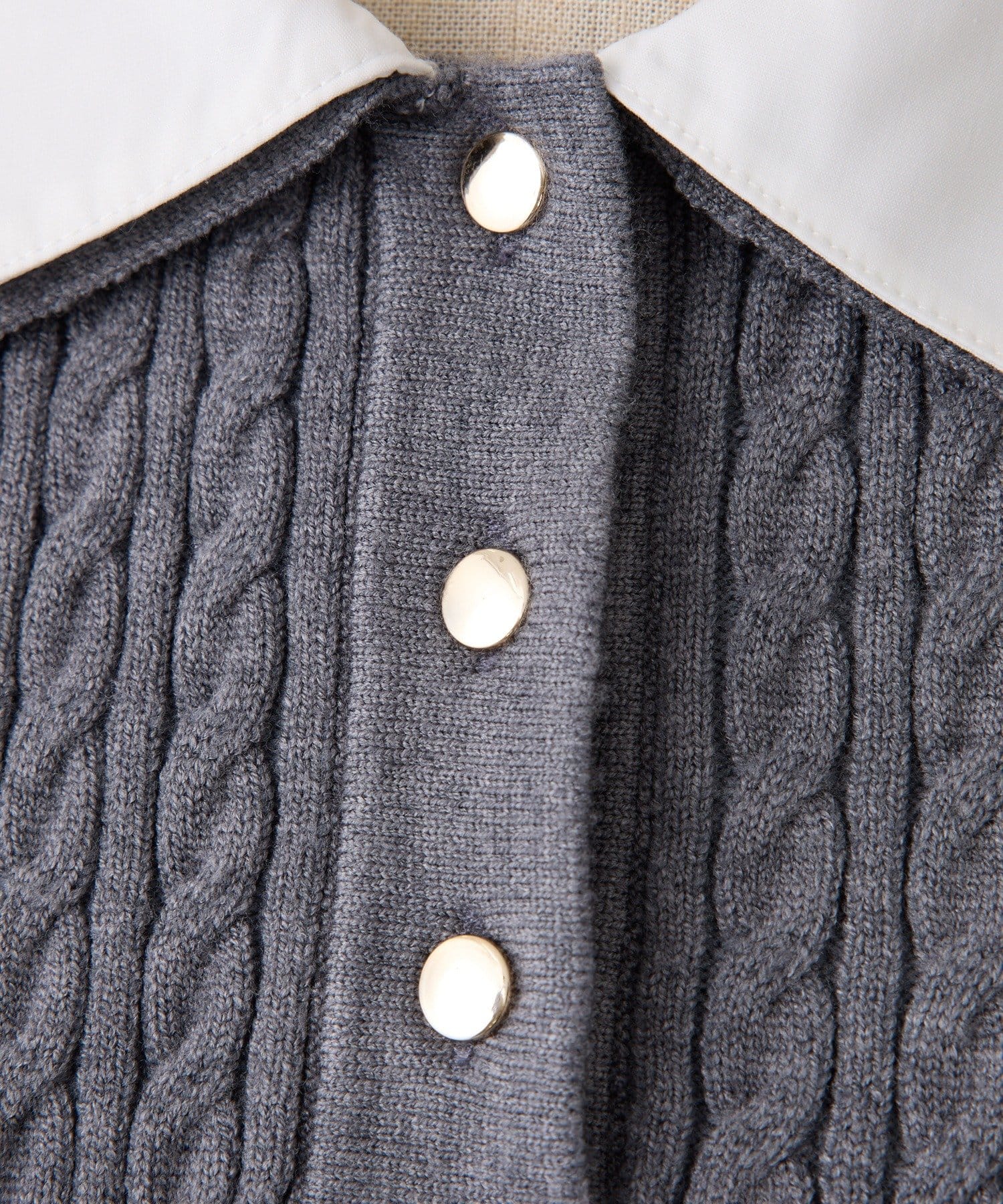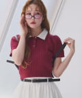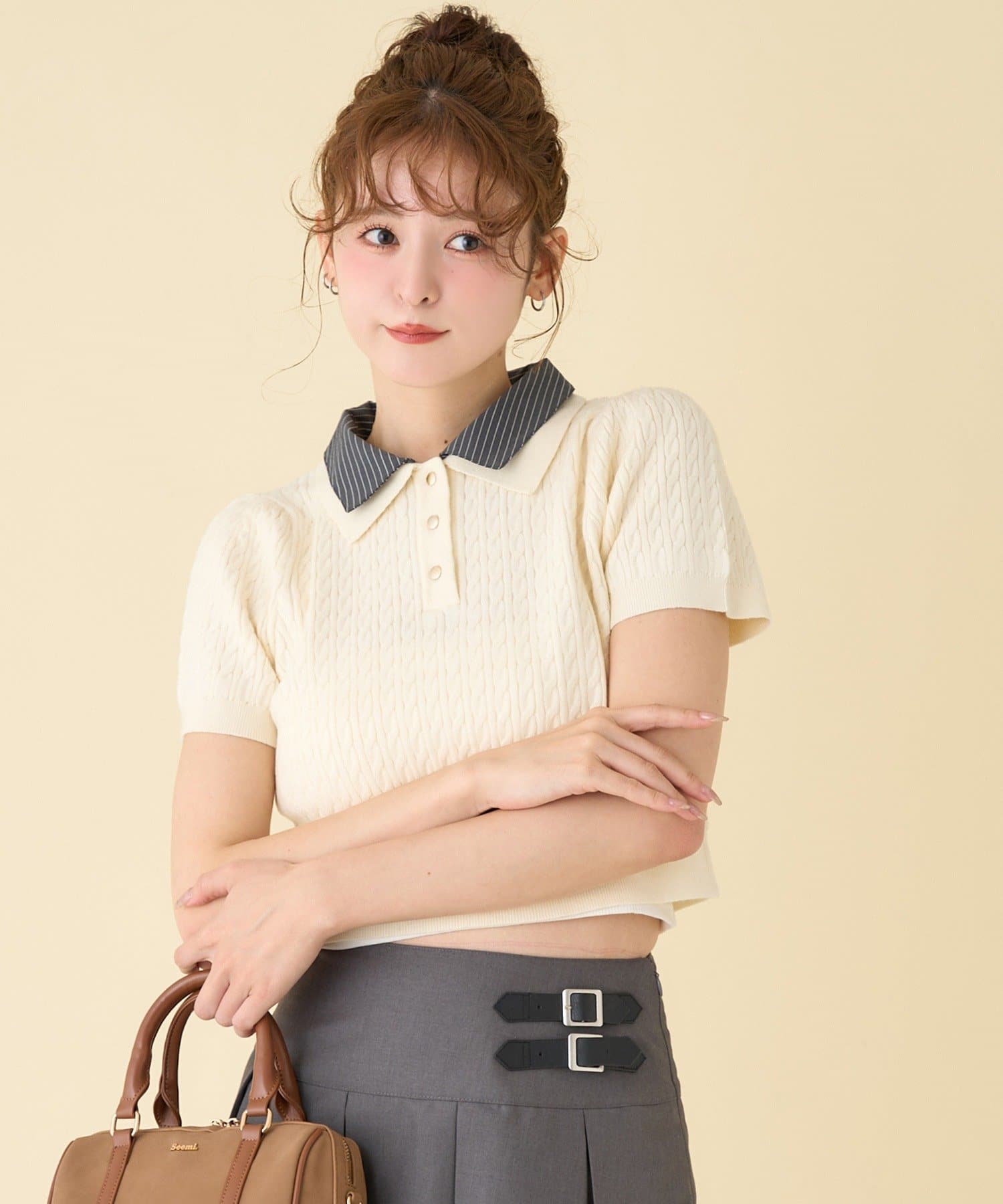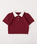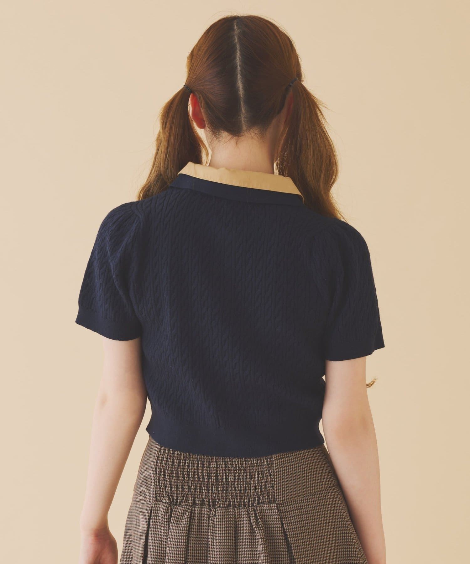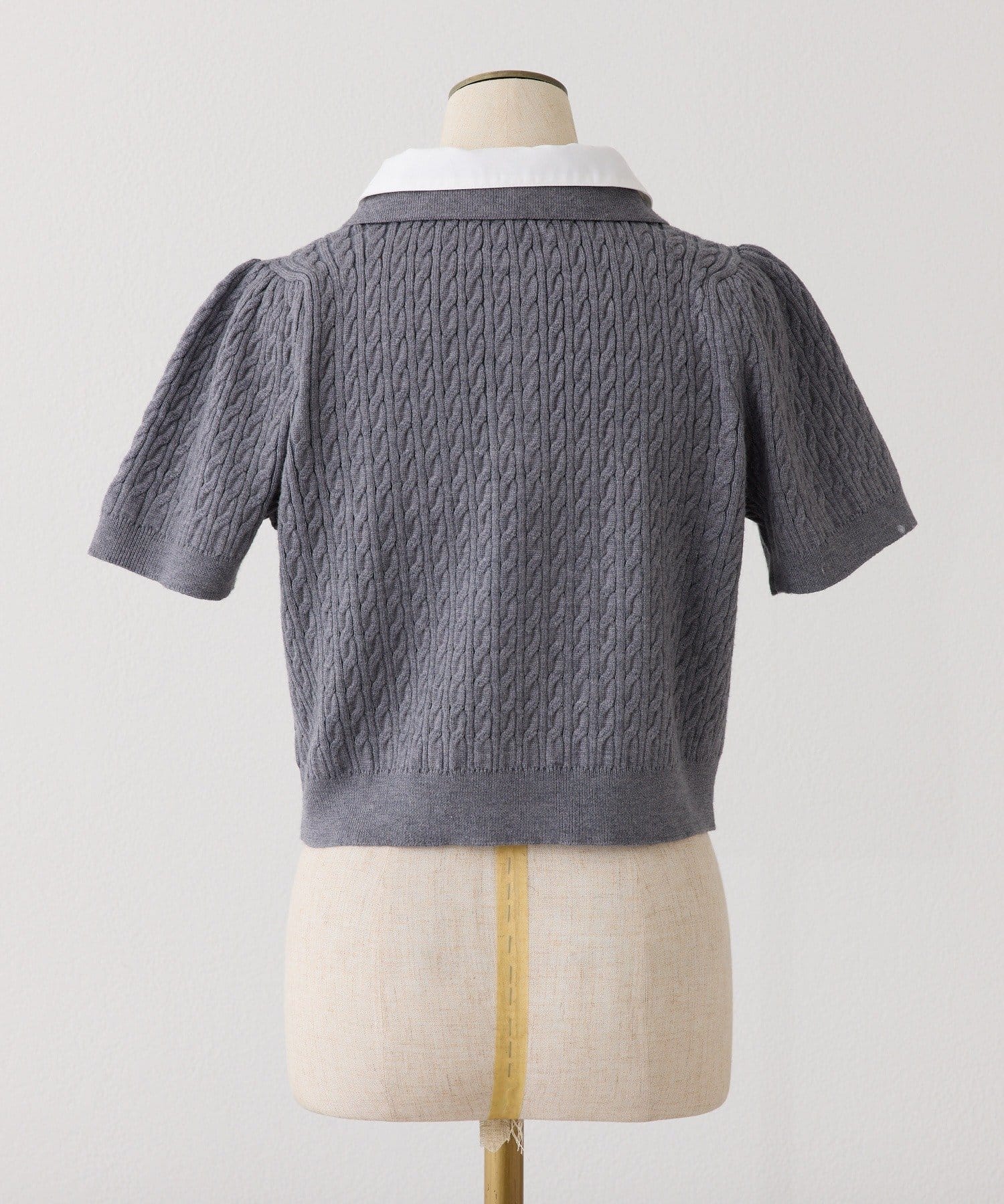 2枚衿ケーブル半袖ニット