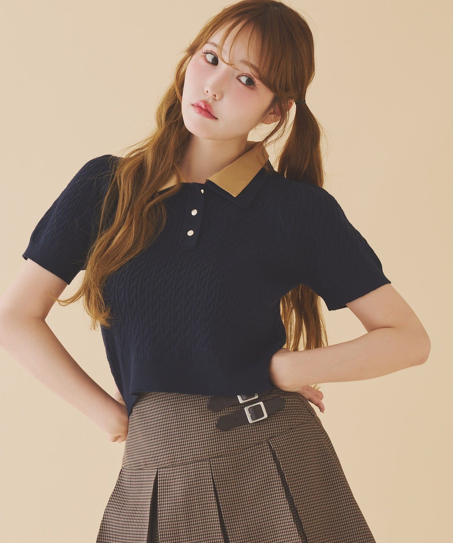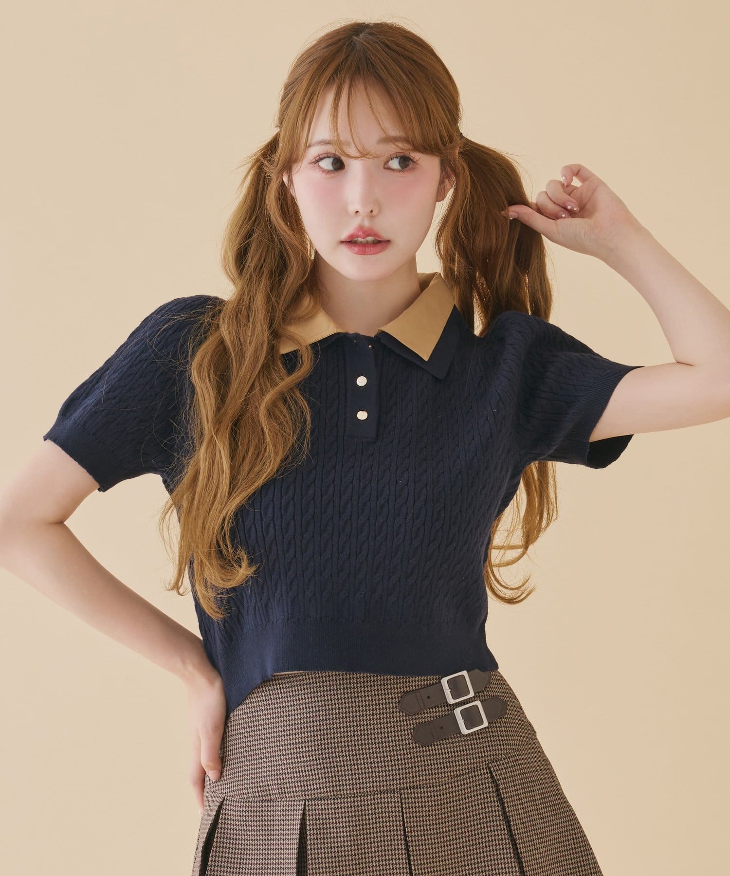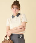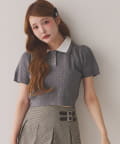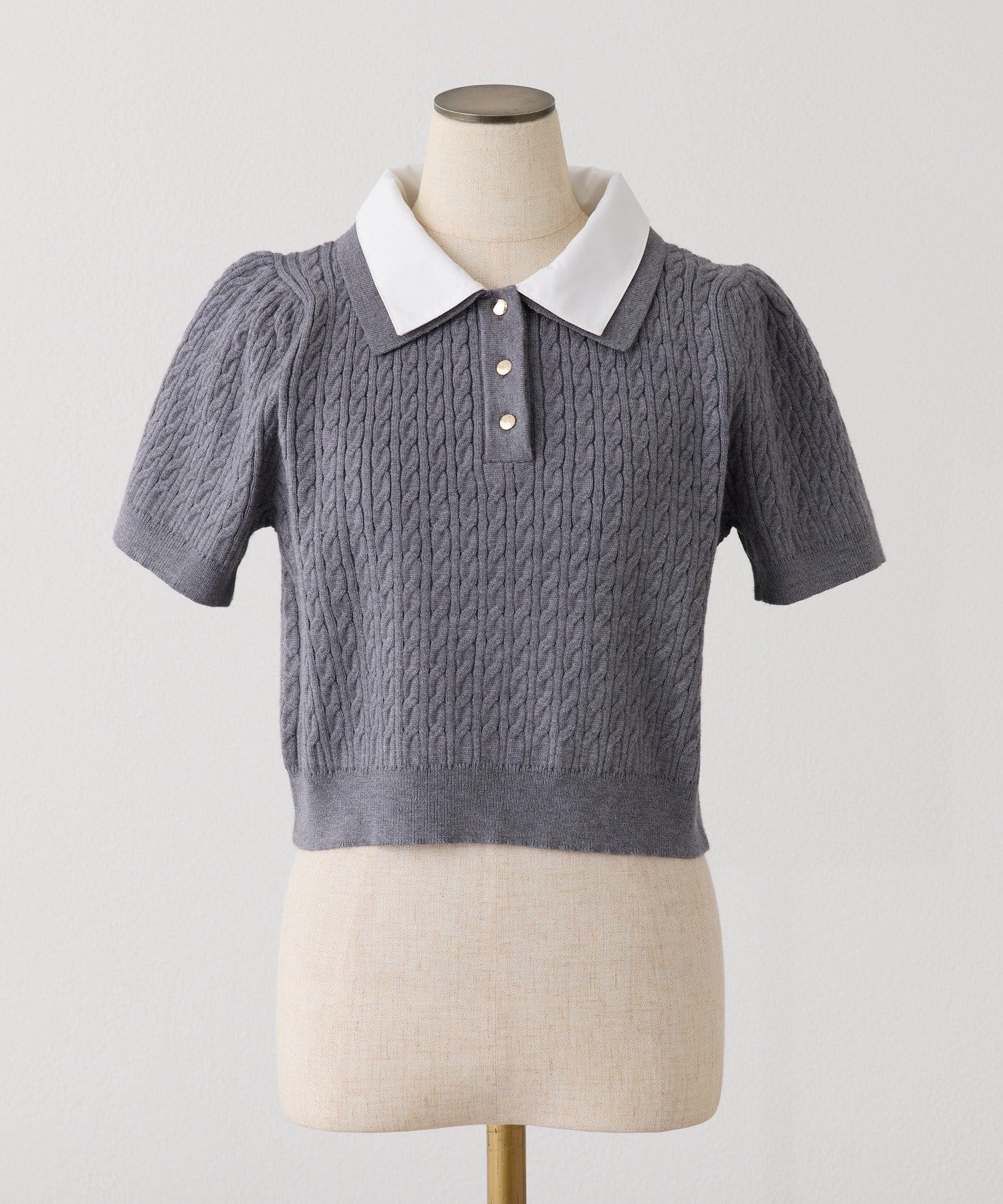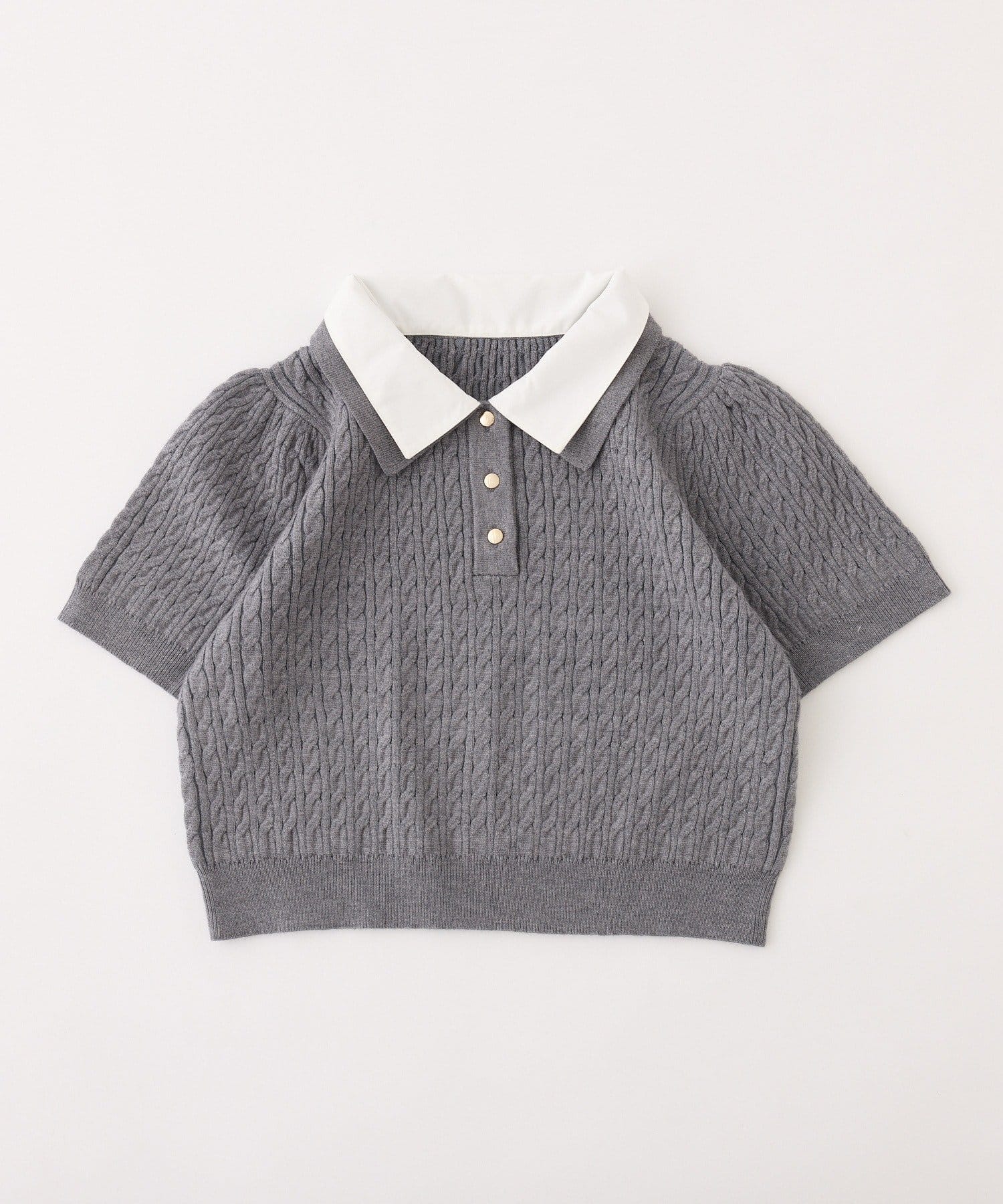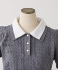 2枚衿ケーブル半袖ニット