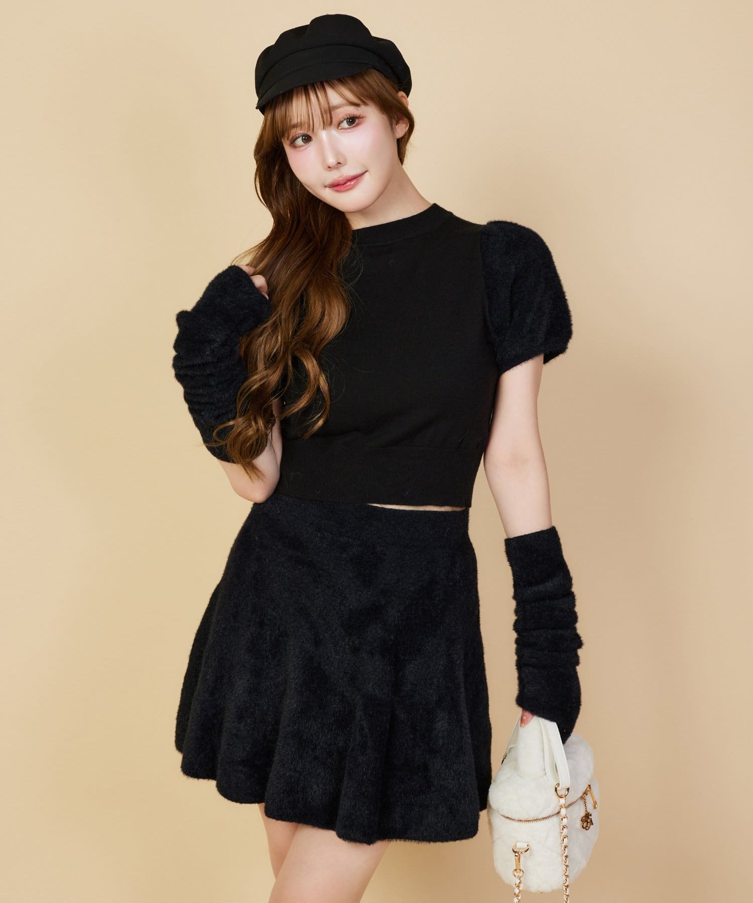 袖もパフスリーブデザインで、フェミニンな印象に。