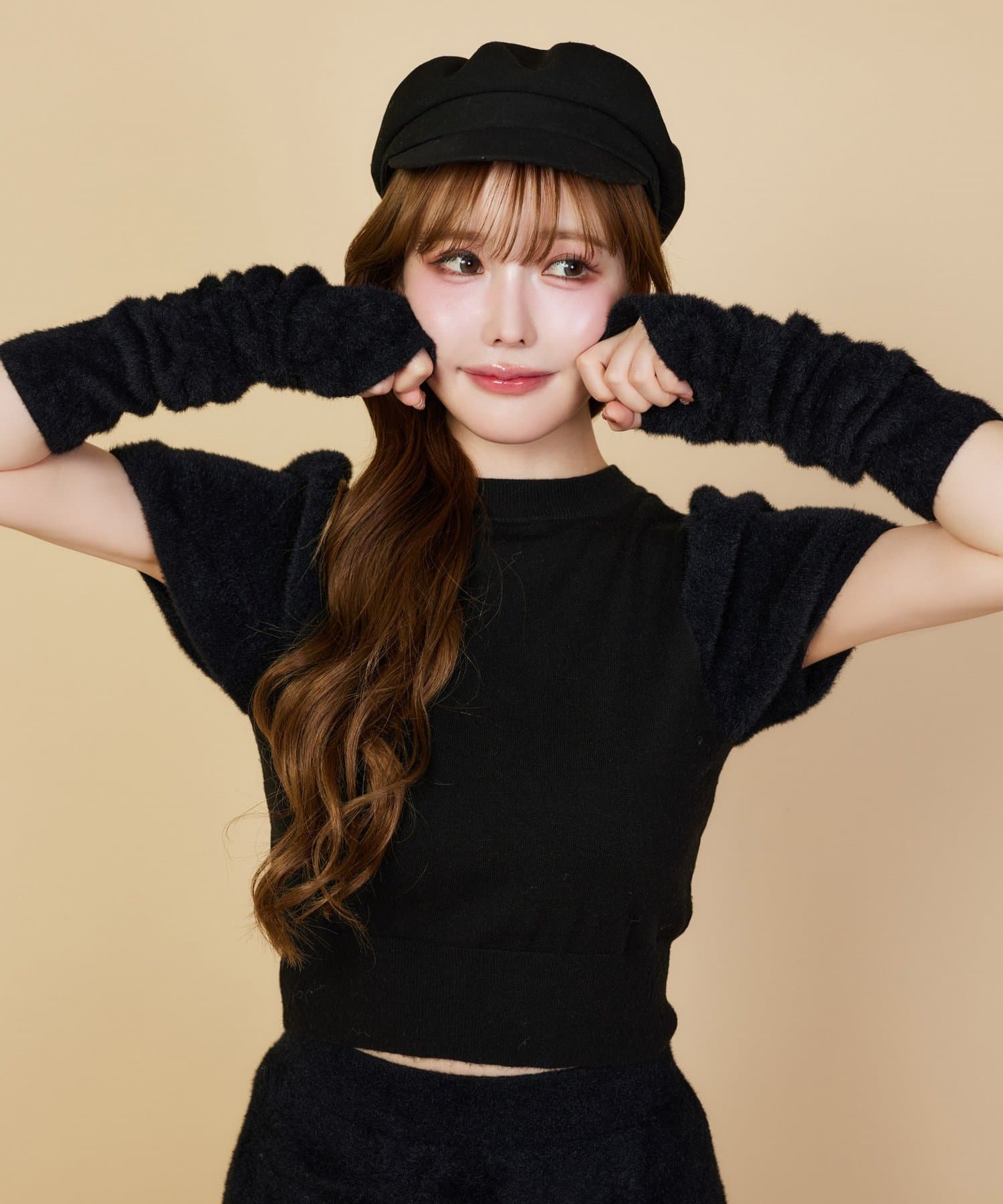 トレンドのアームウォーマーとニットトップスのセットアイテム