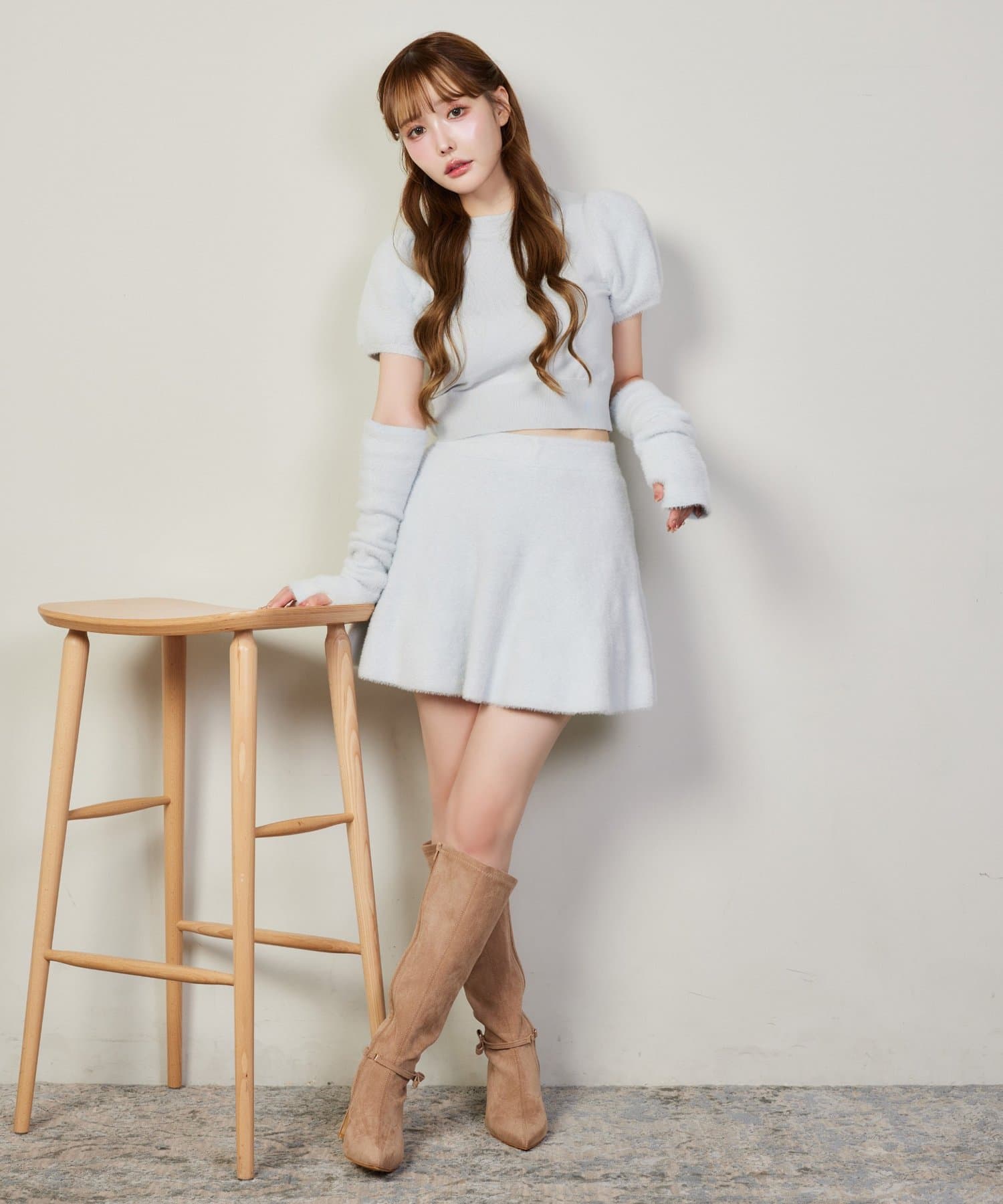 もちろんミニスカートにブーツ合わせもトレンドな着こなしでオススメ。