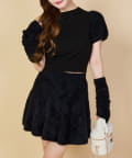 袖もパフスリーブデザインで、フェミニンな印象に。