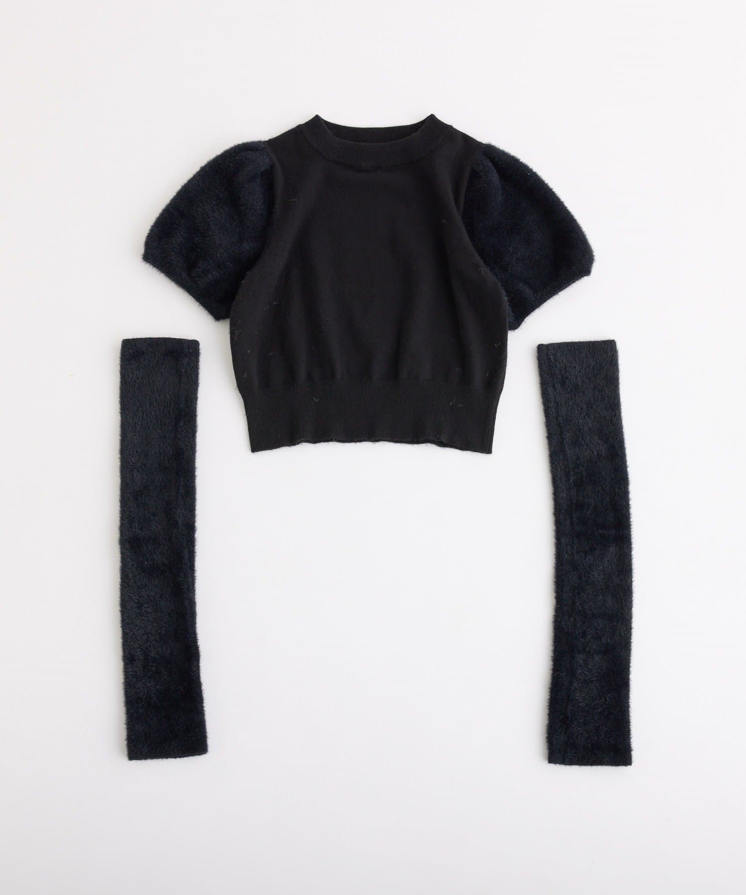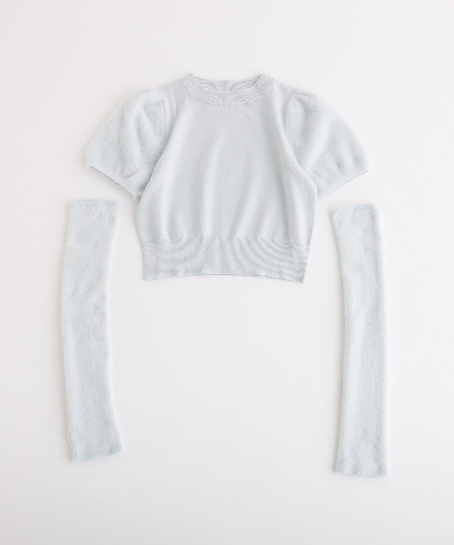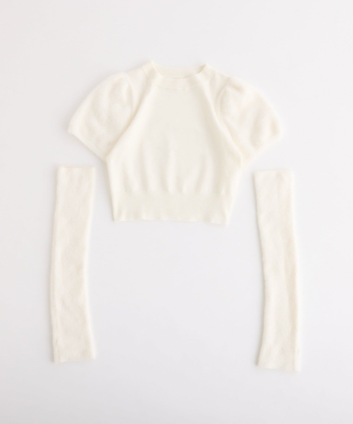トレンドのアームウォーマーとニットトップスのセットアイテム