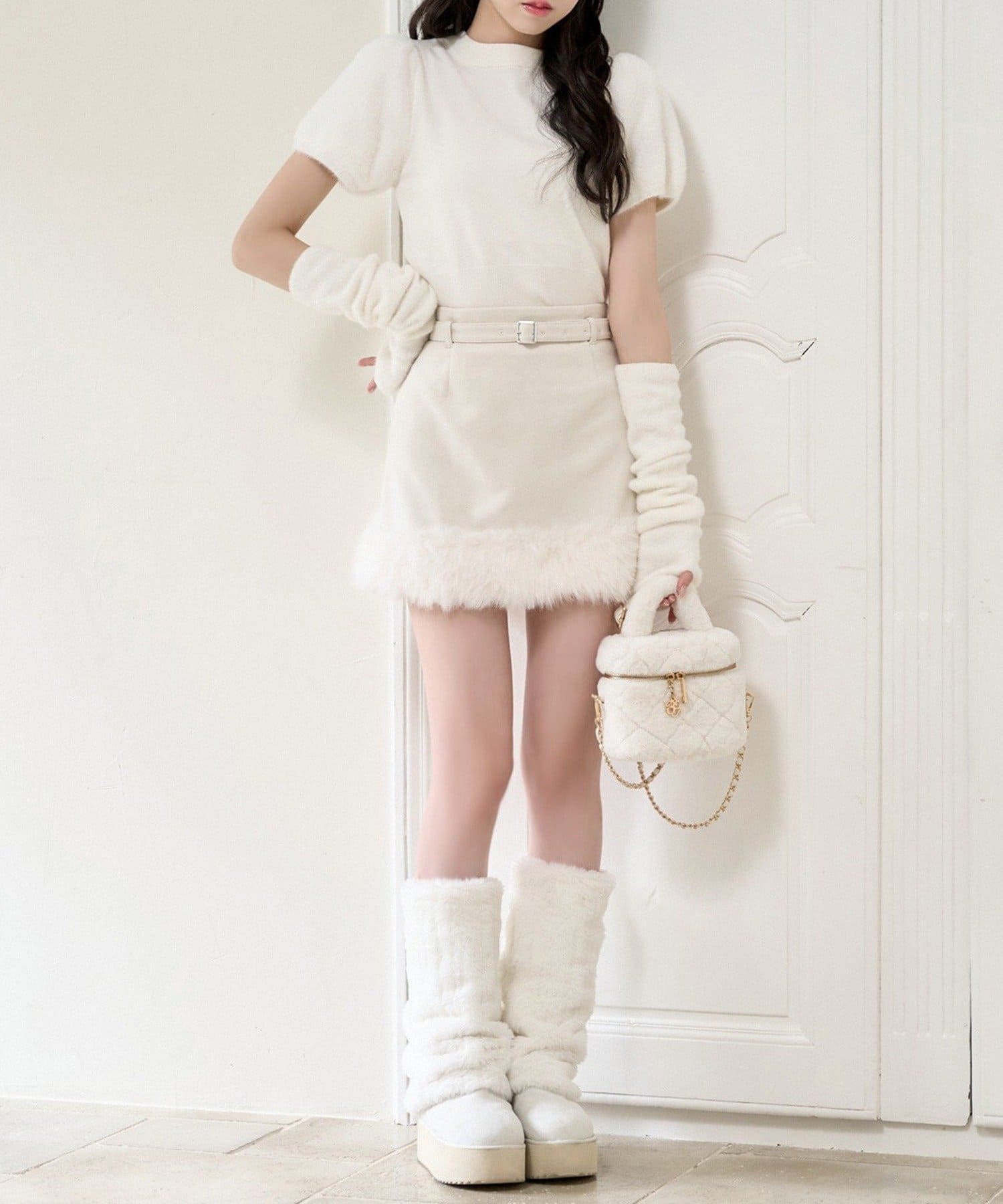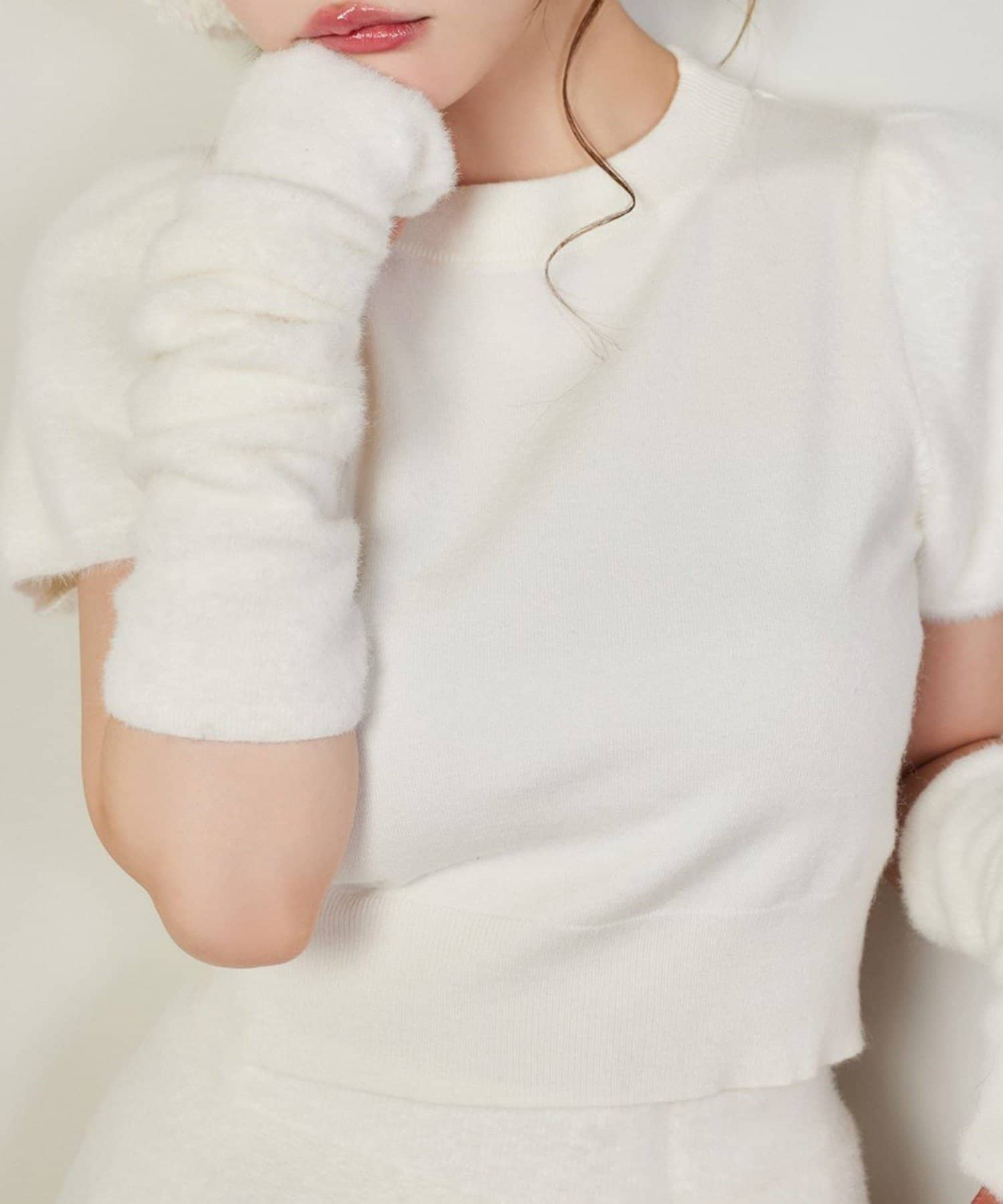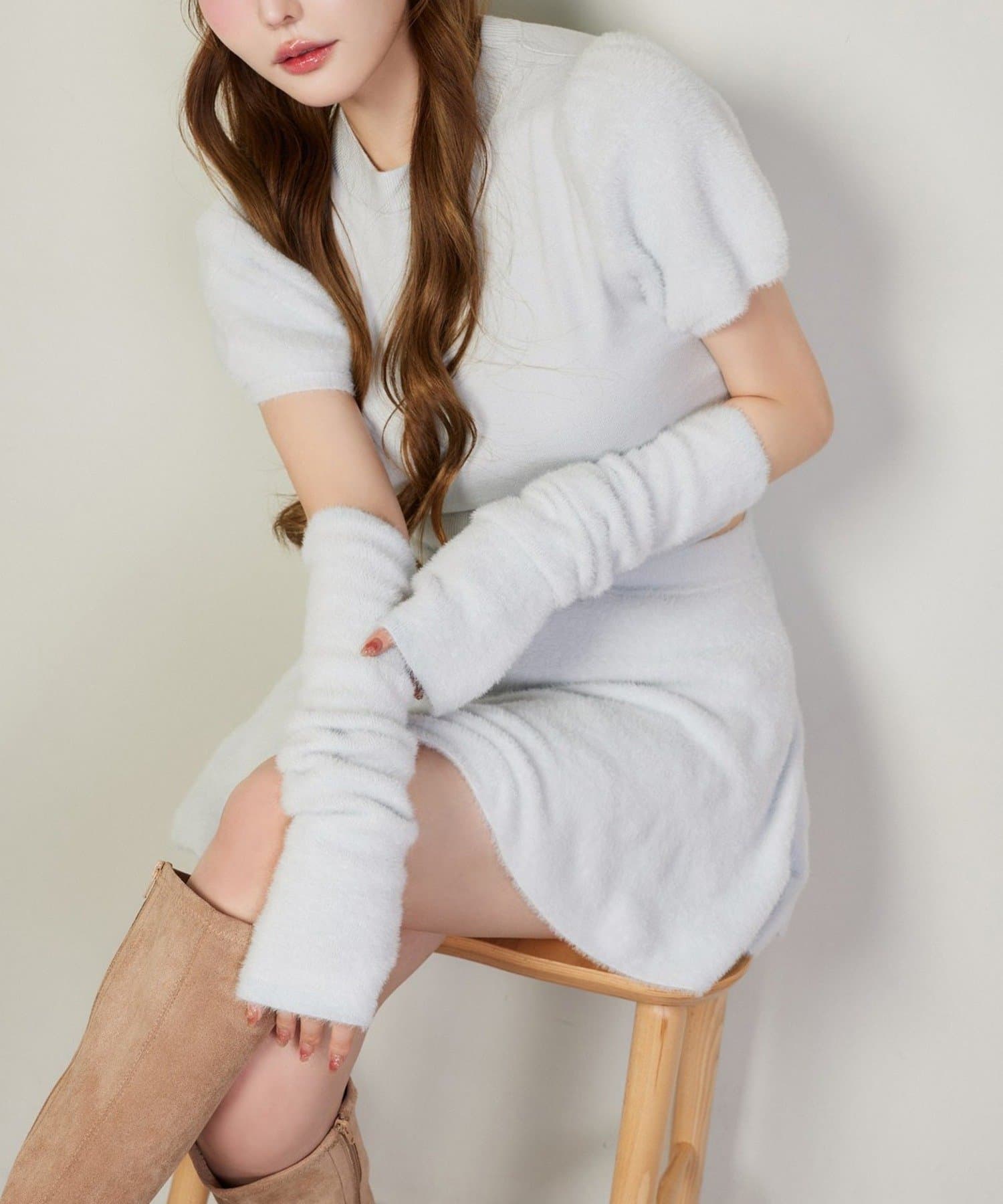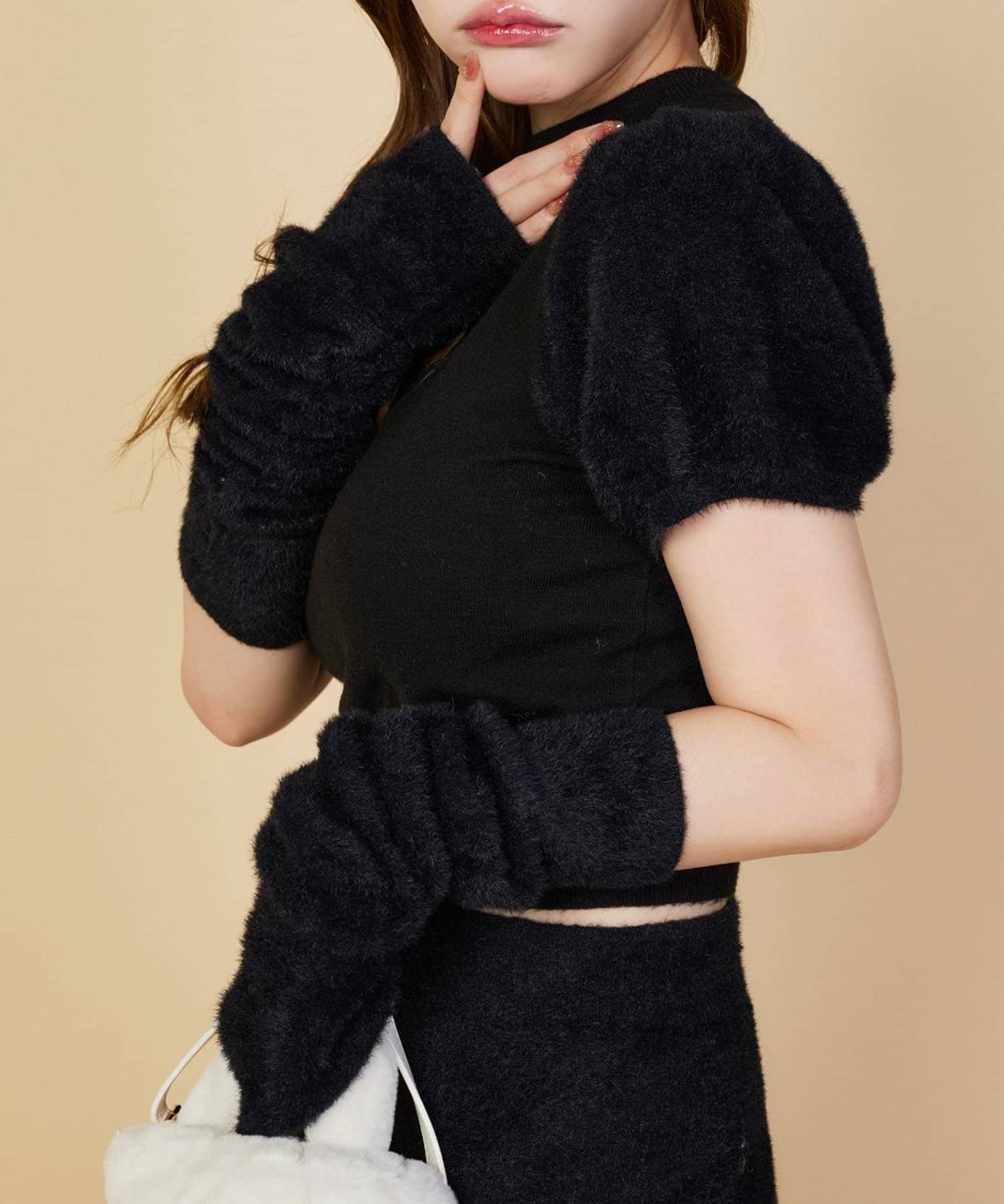 トレンドのアームウォーマーとニットトップスのセットアイテム