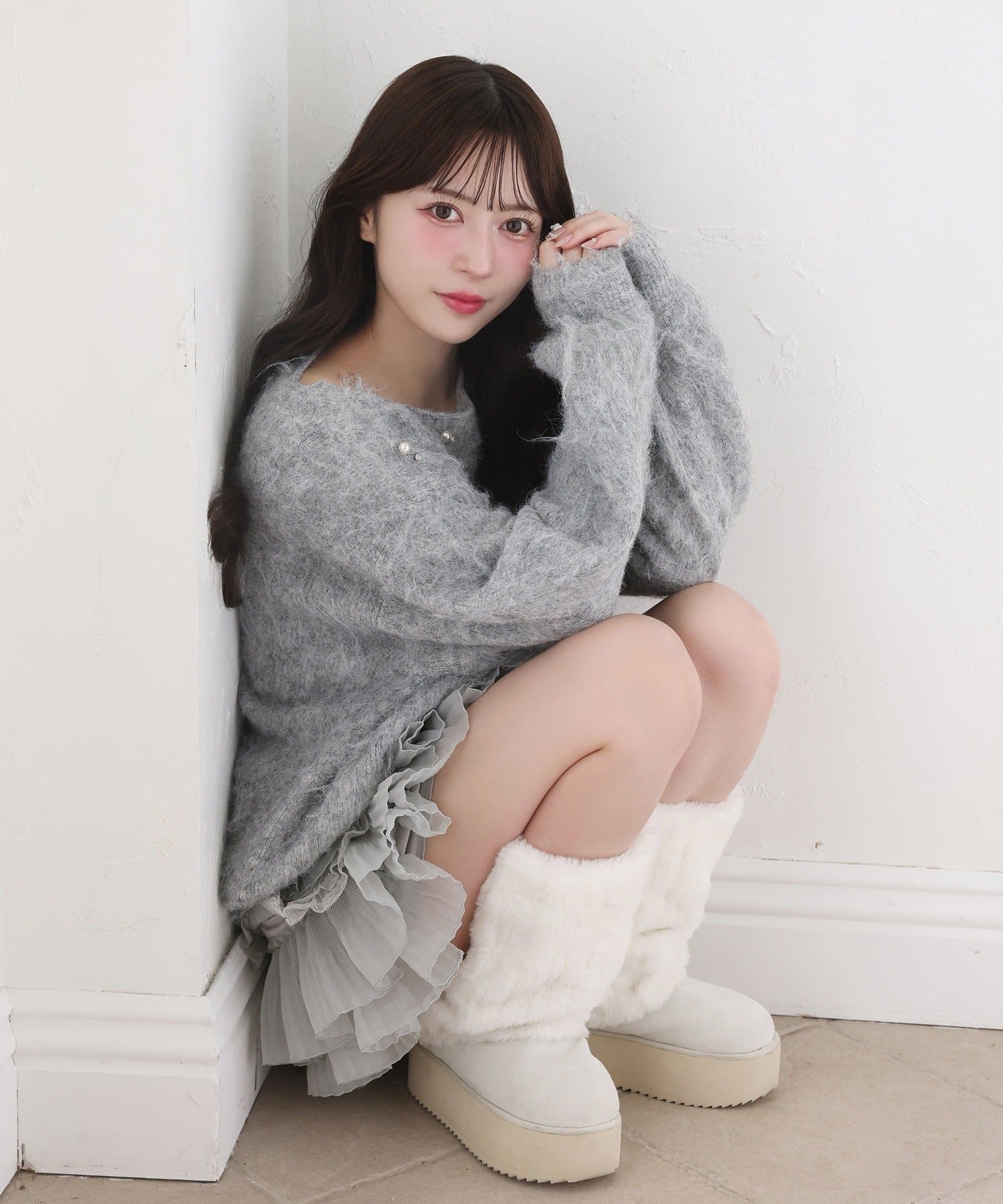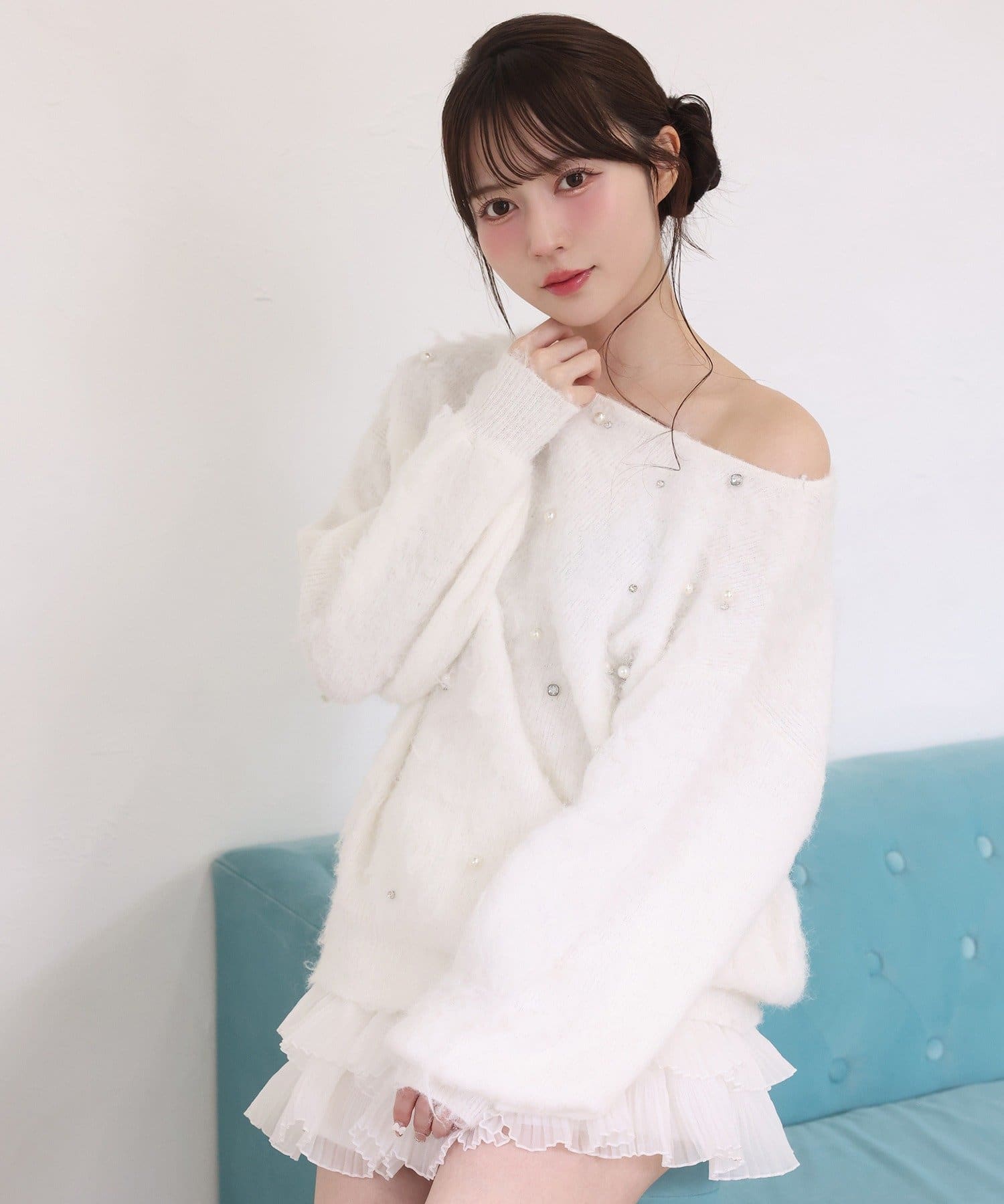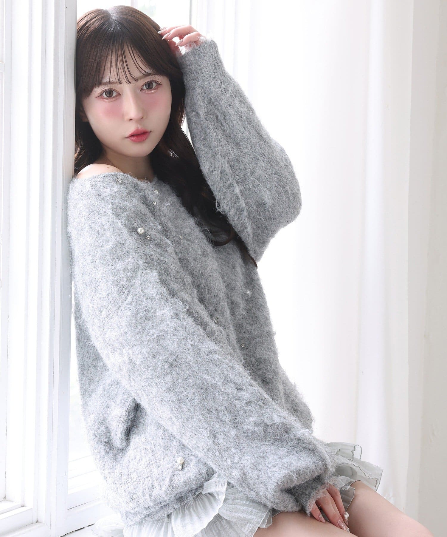 シンプルなニットデザインにアクセントをプラスして、1枚で映えるアイテムです。