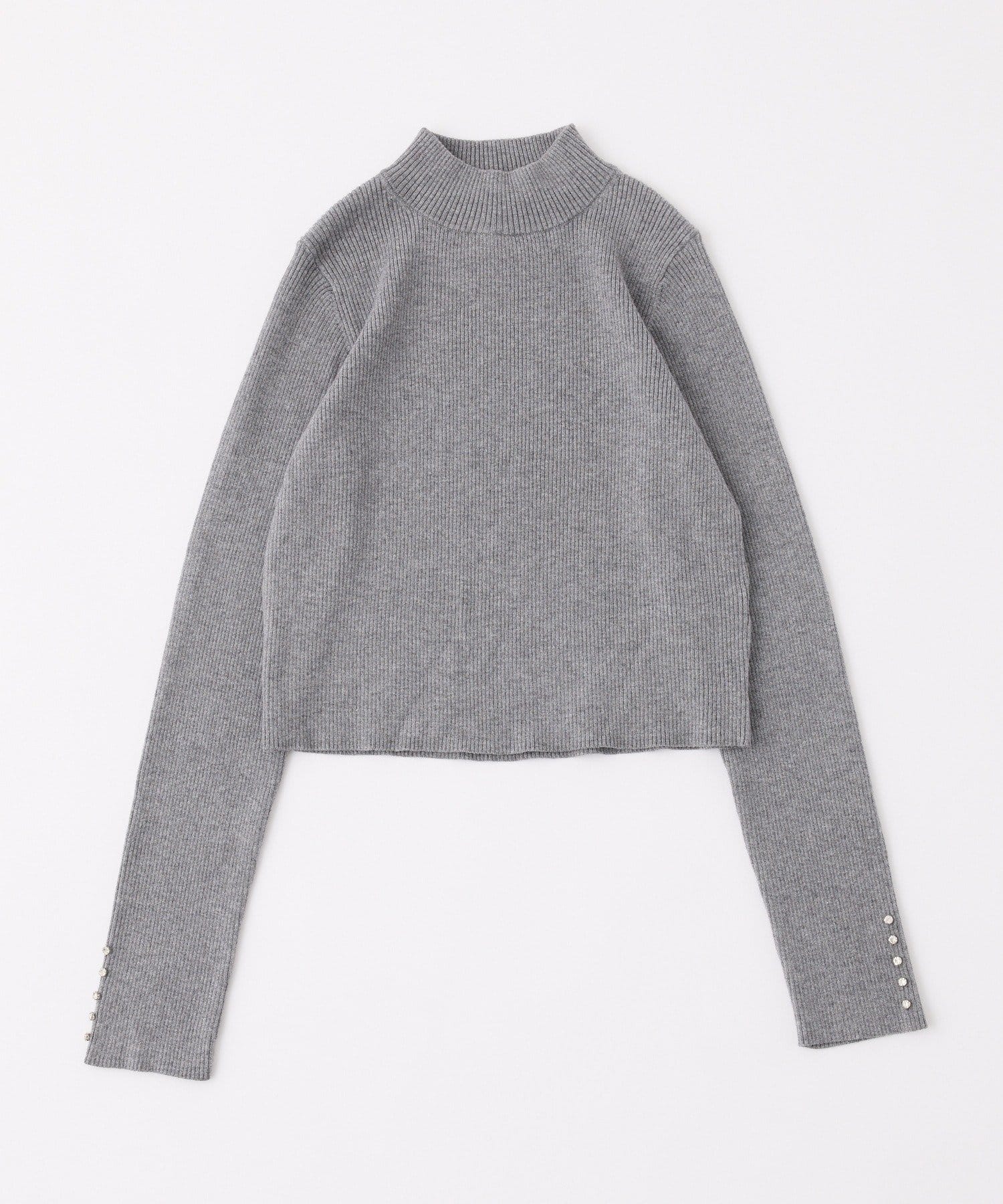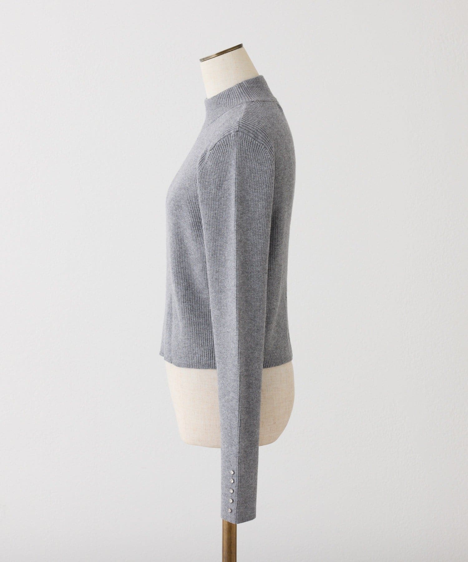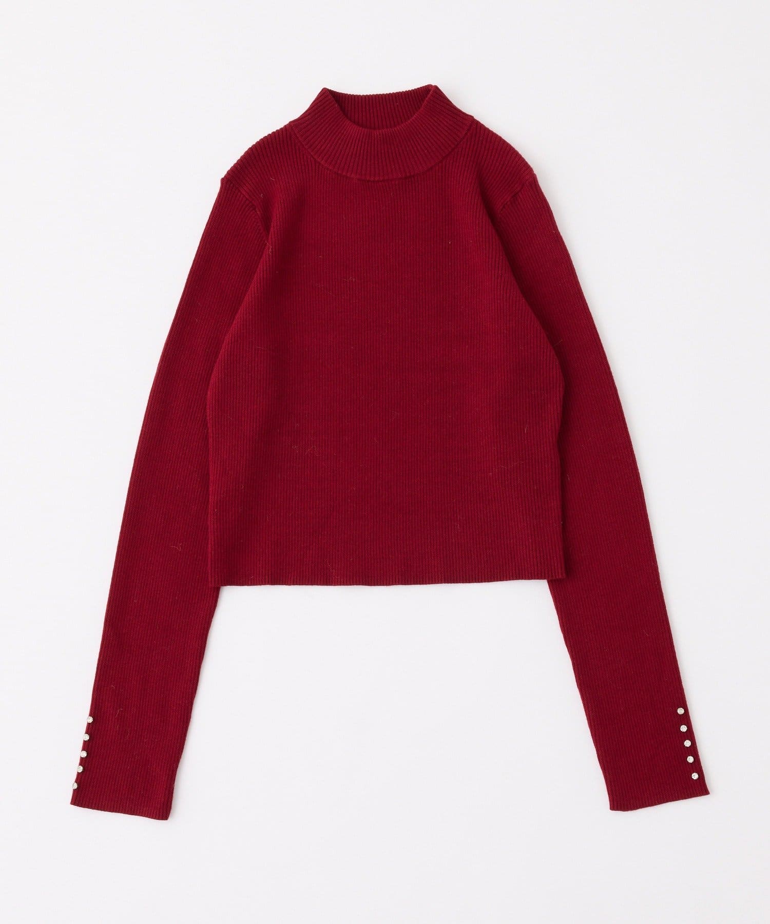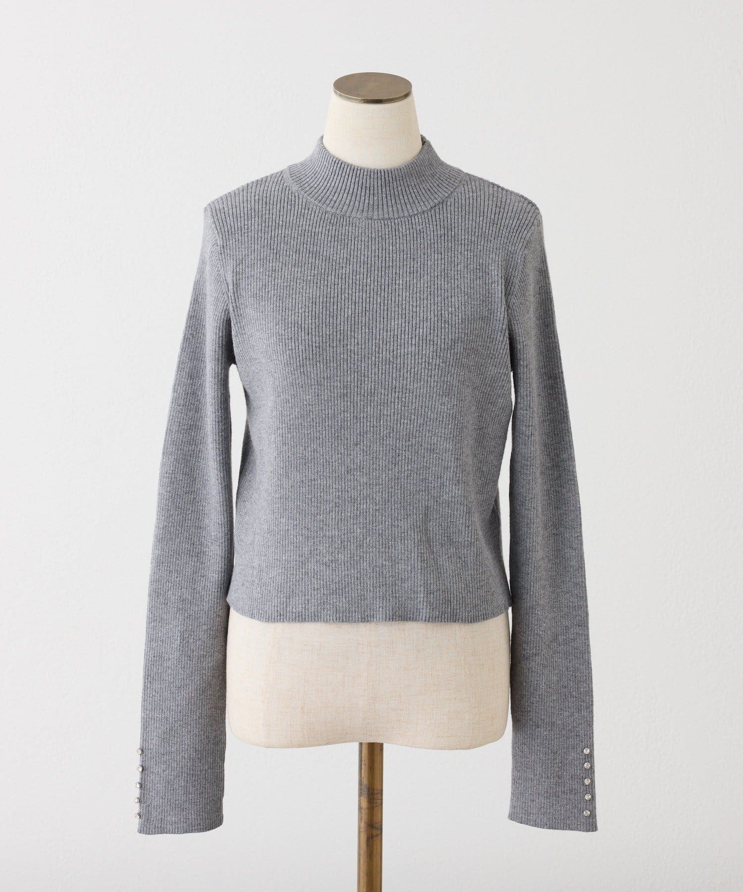 袖口のキラキラボタンがポイントになったハイネックニット。