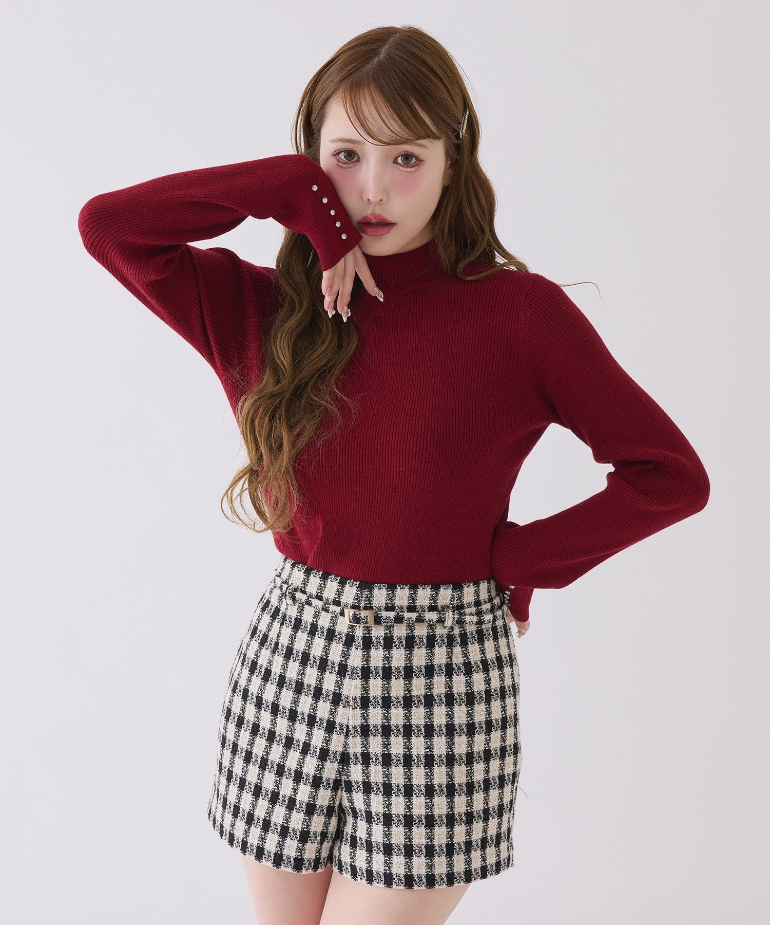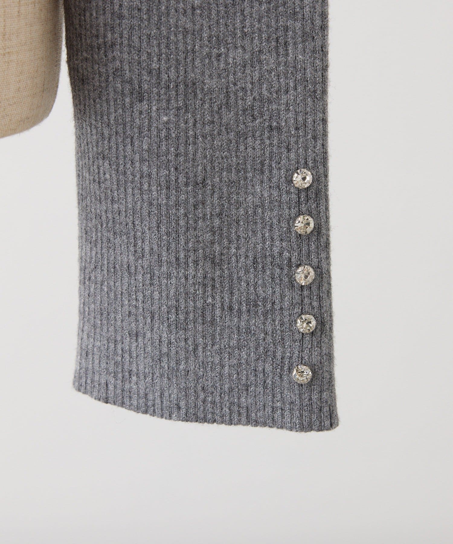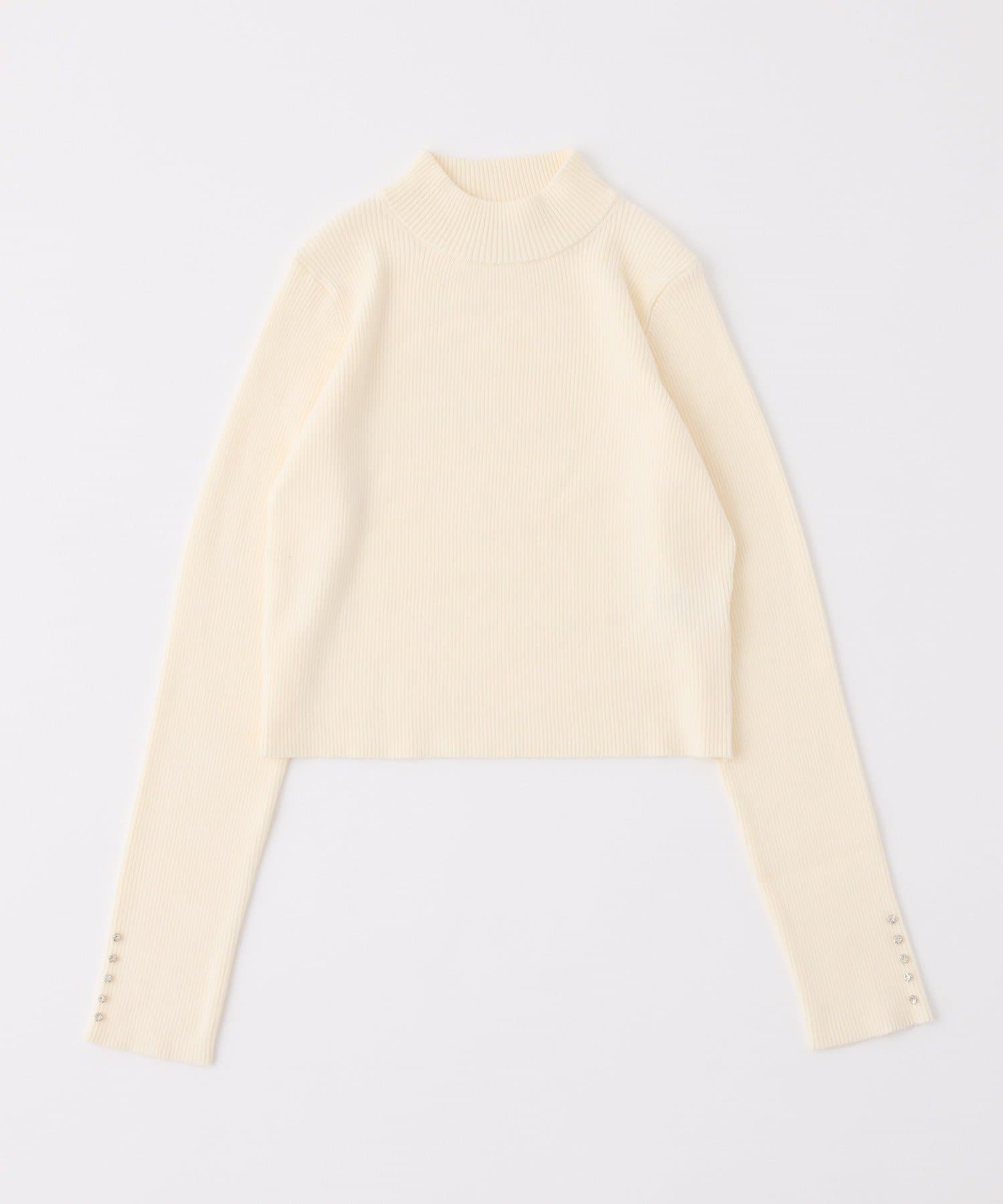 袖口のキラキラボタンがポイントになったハイネックニット。