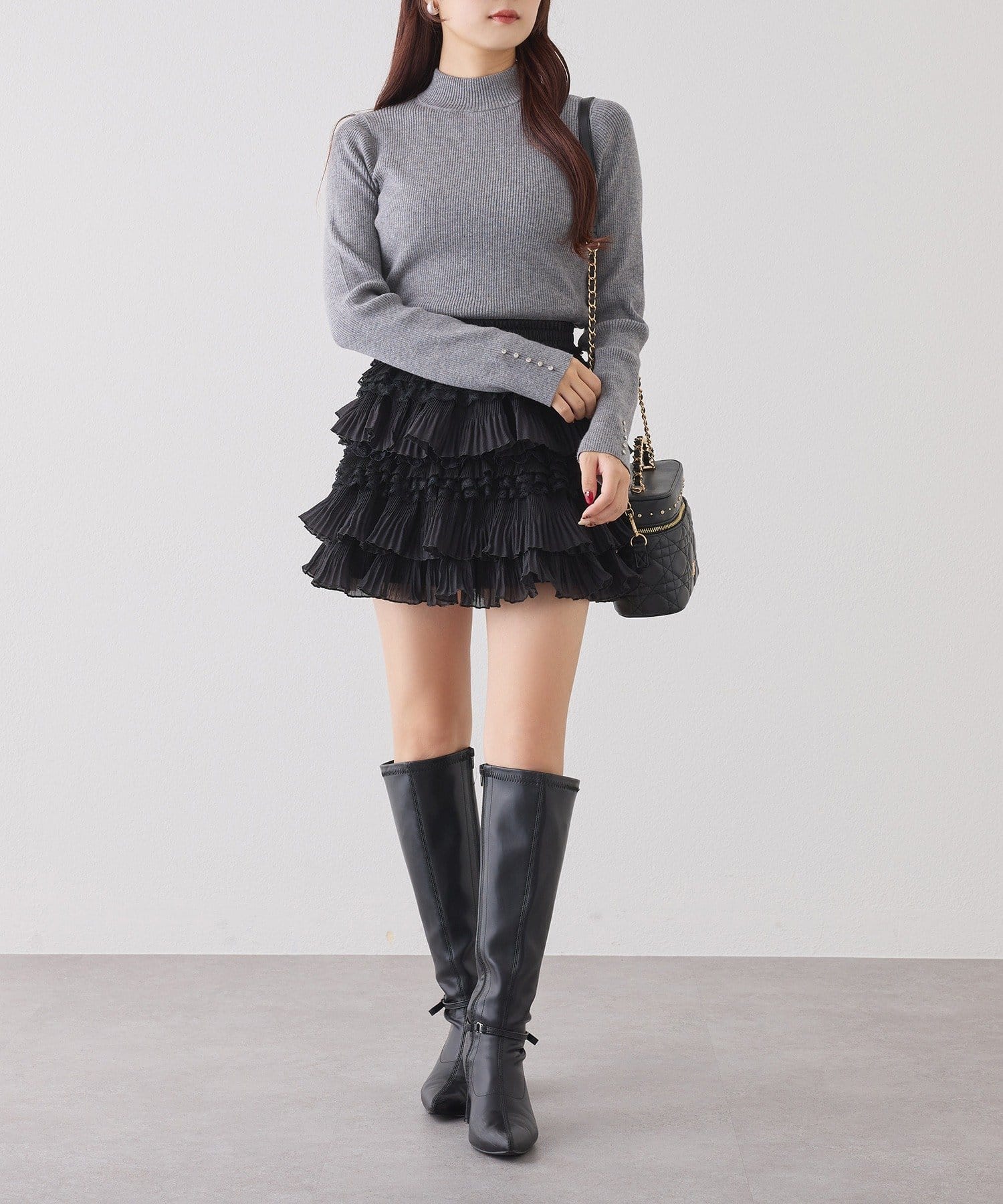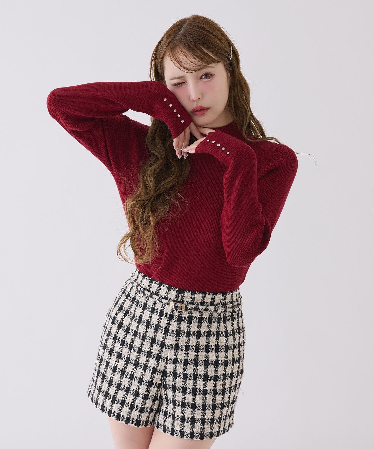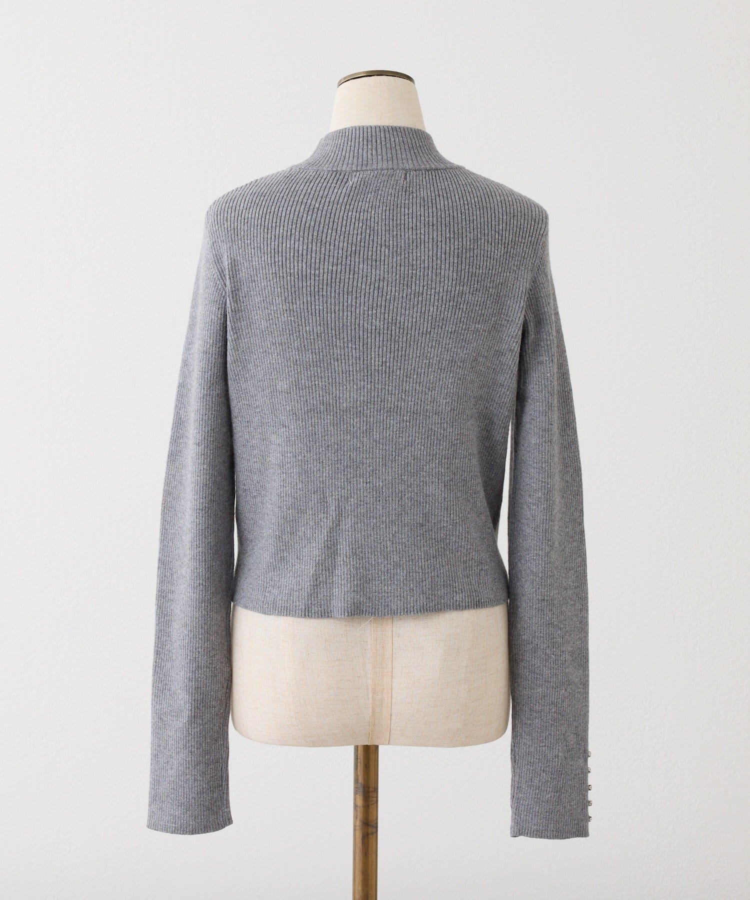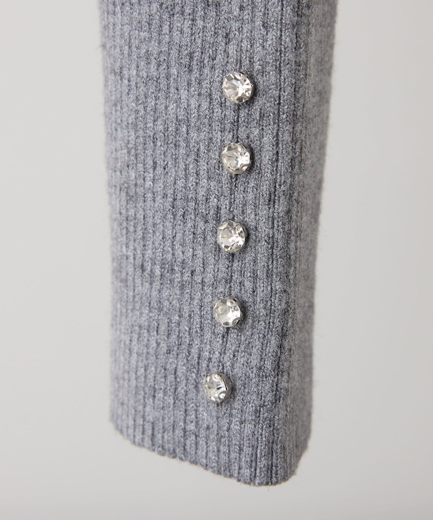 袖口のキラキラボタンがポイントになったハイネックニット。