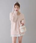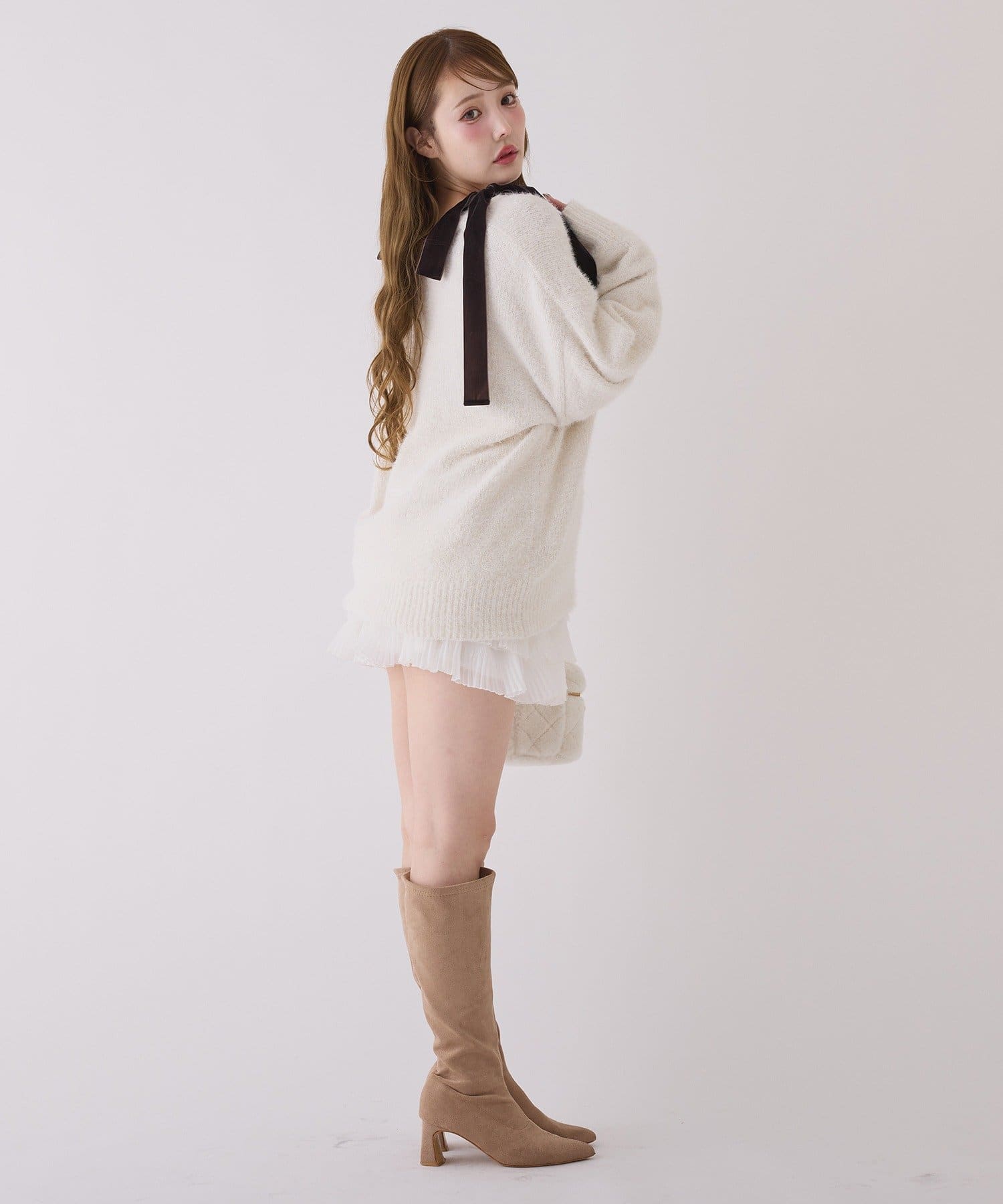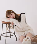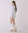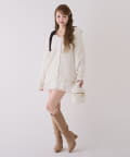 そのまま1枚でミニワンピース風に着こなしてブーツ合わせの大人ガーリーコーデに