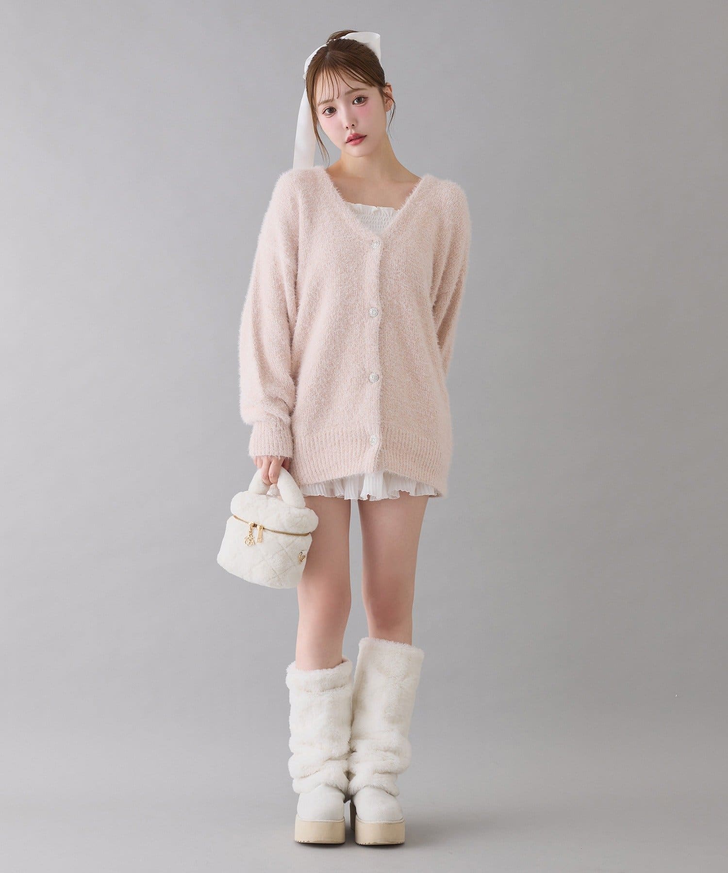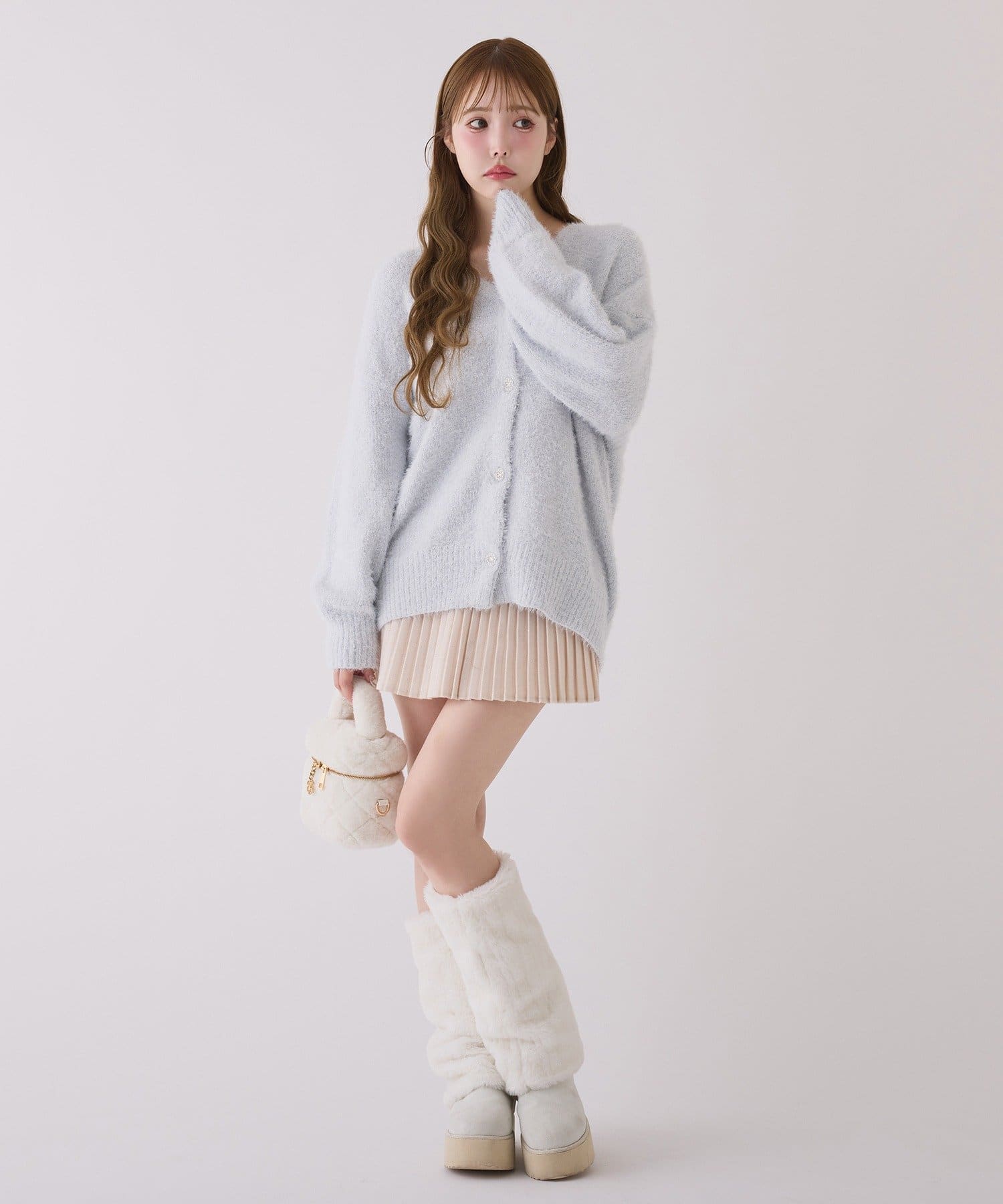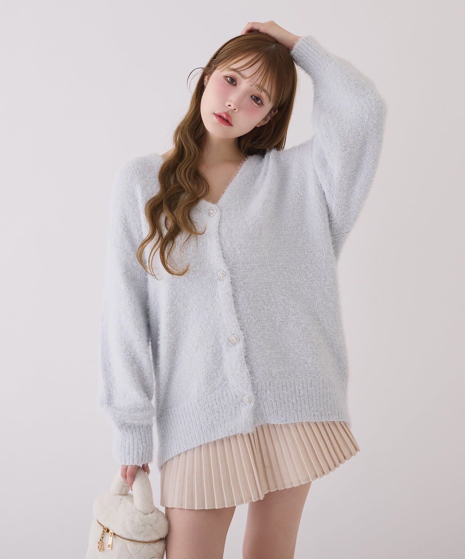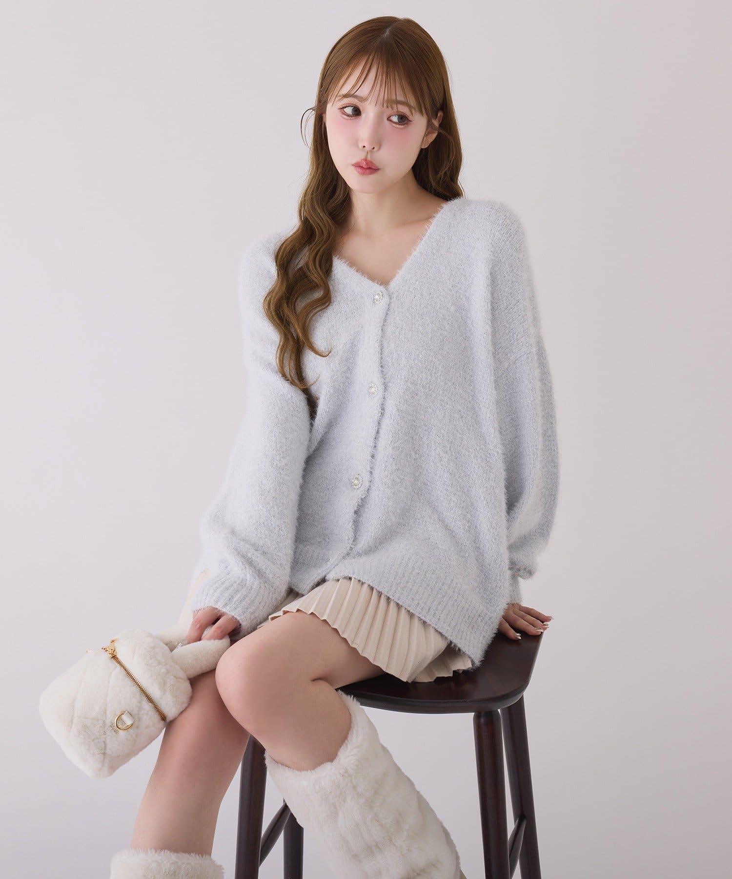 お尻が隠れる丈感で、カーディガンとしてはもちろん、すっぽりミニワンピースとしても着られる万能アイテム。