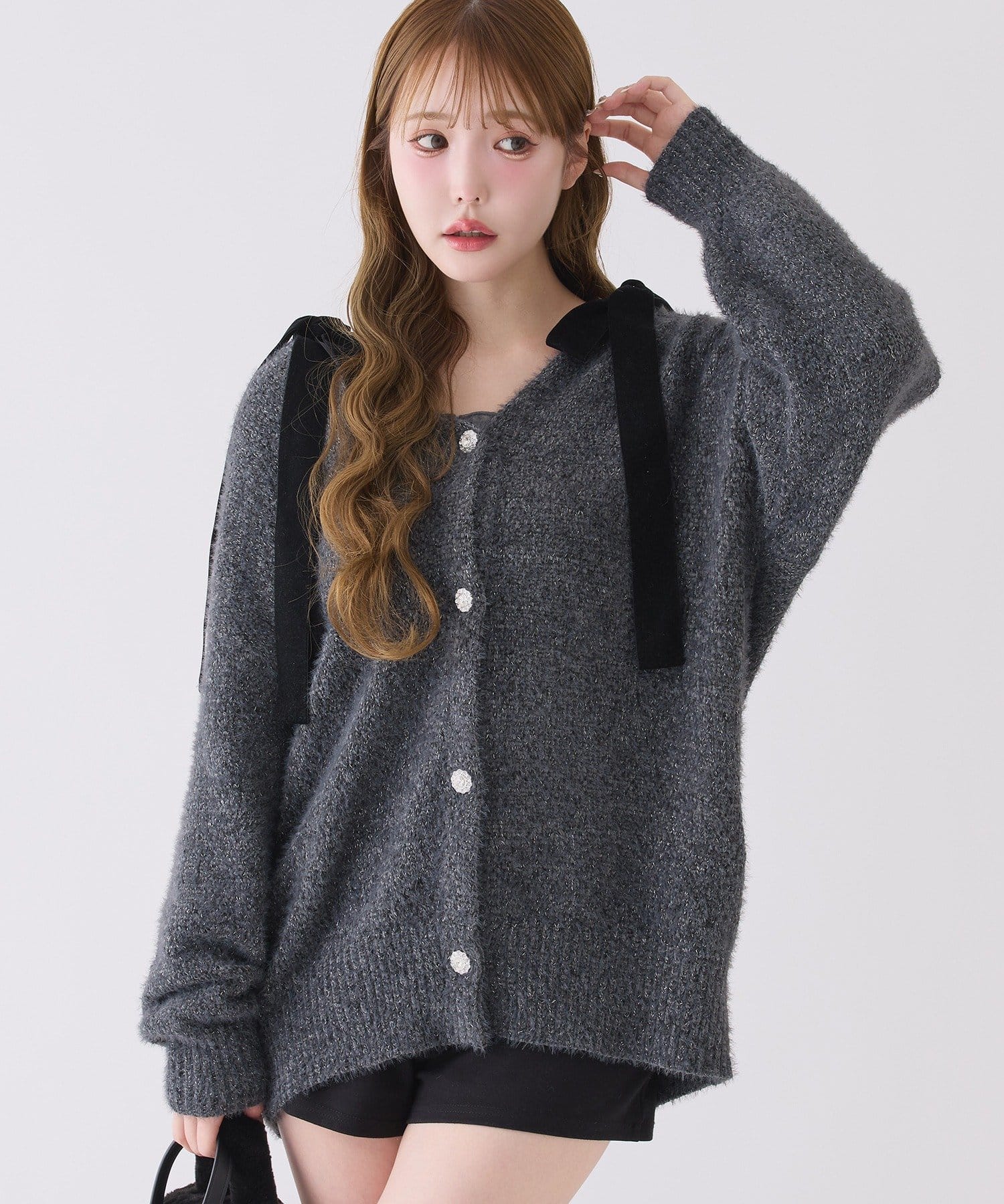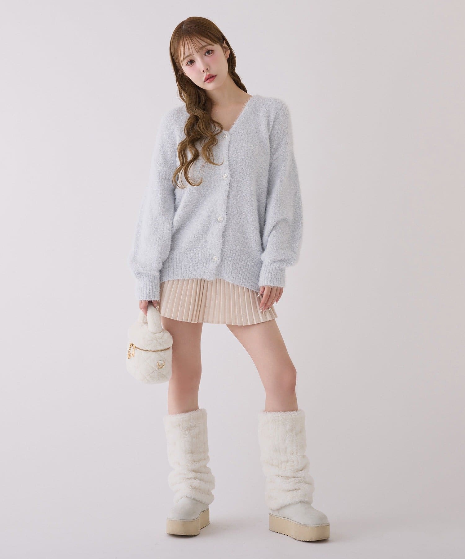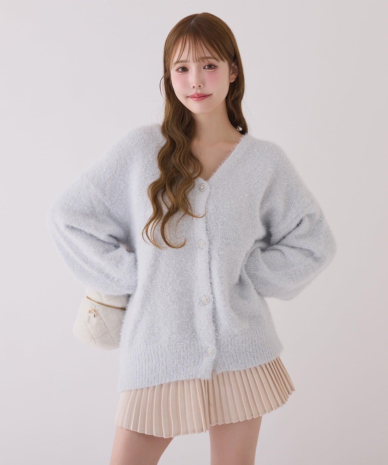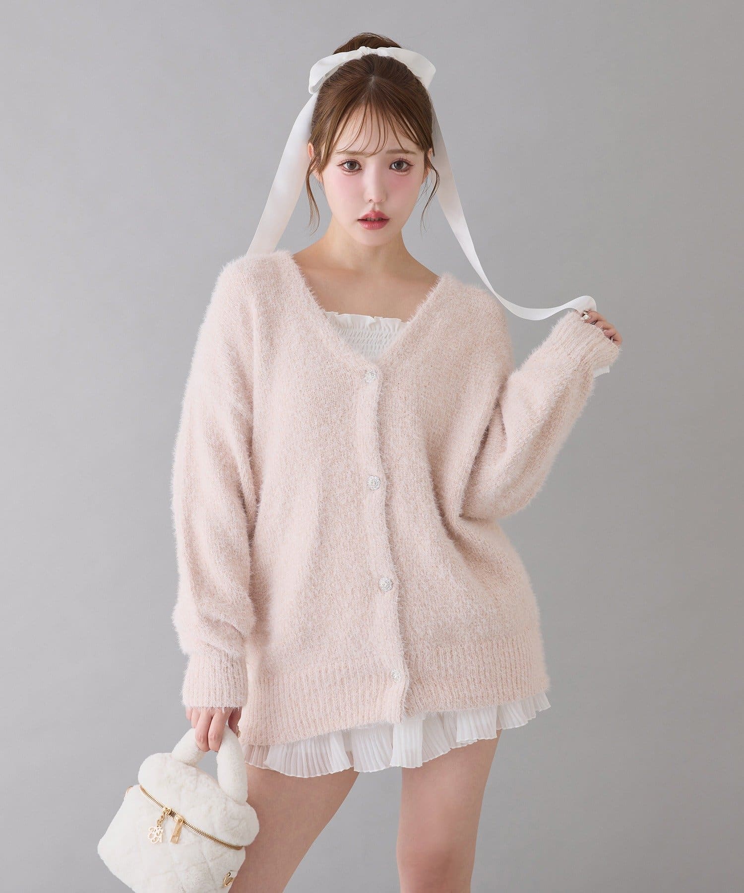 お尻が隠れる丈感で、カーディガンとしてはもちろん、すっぽりミニワンピースとしても着られる万能アイテム。