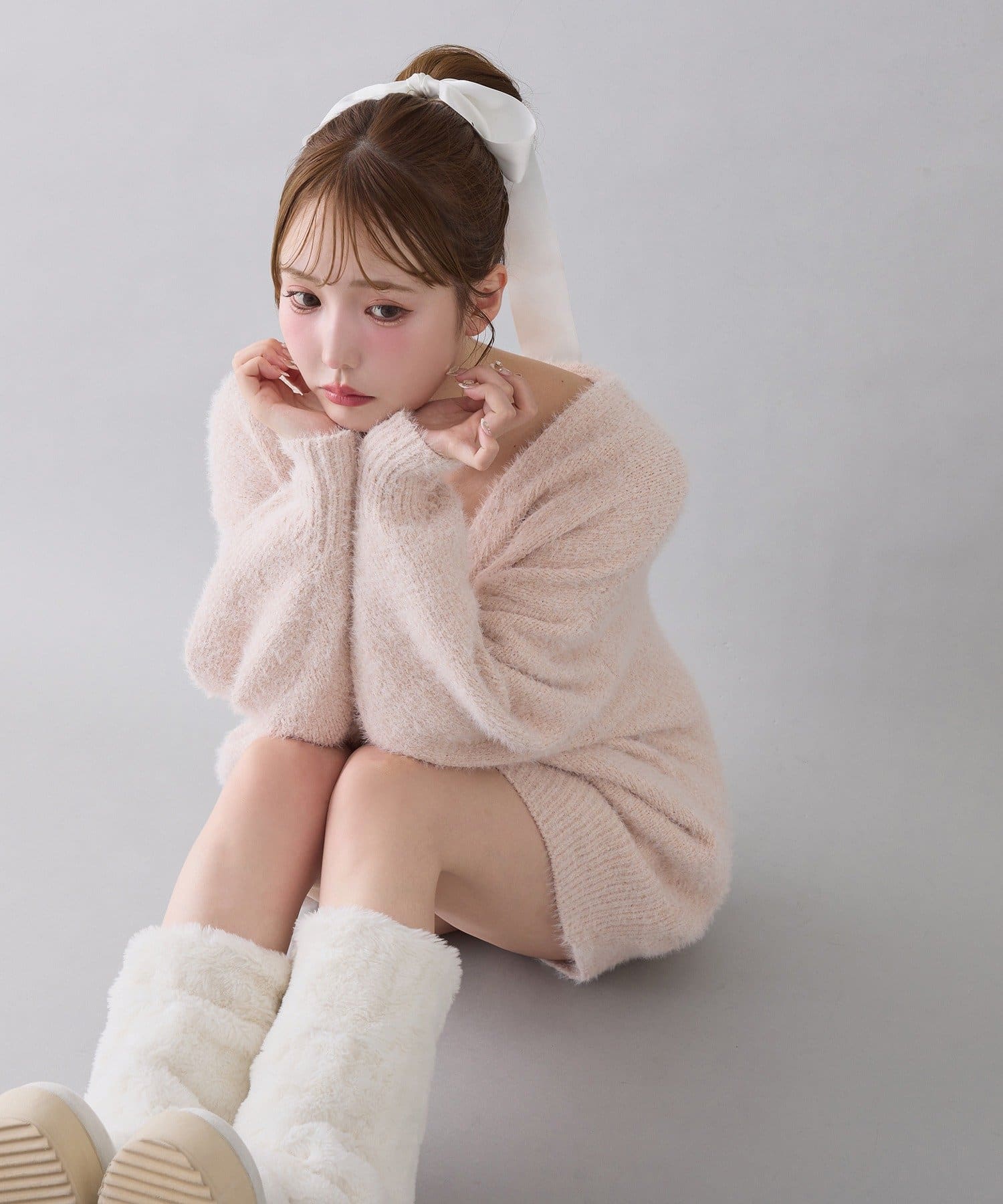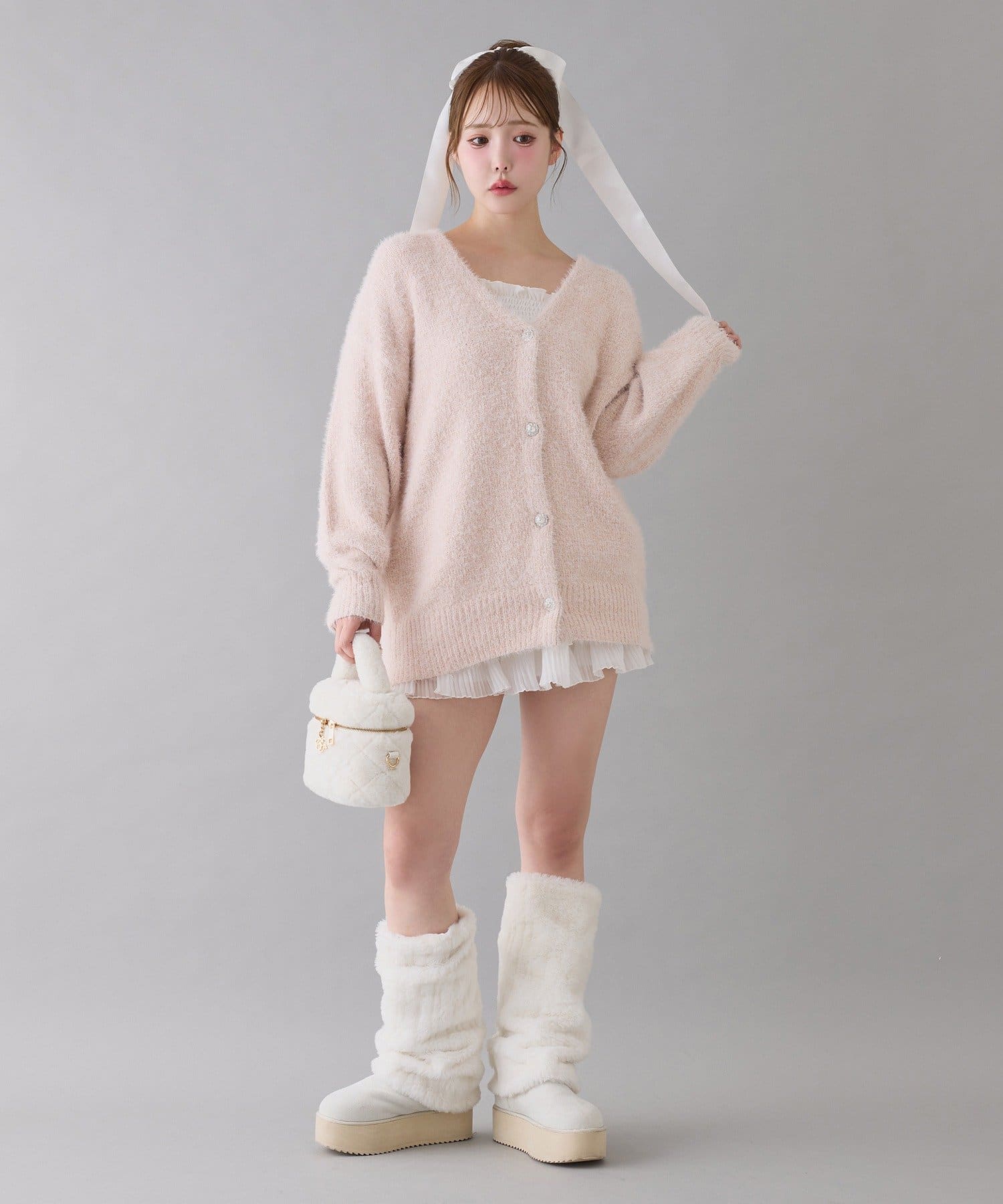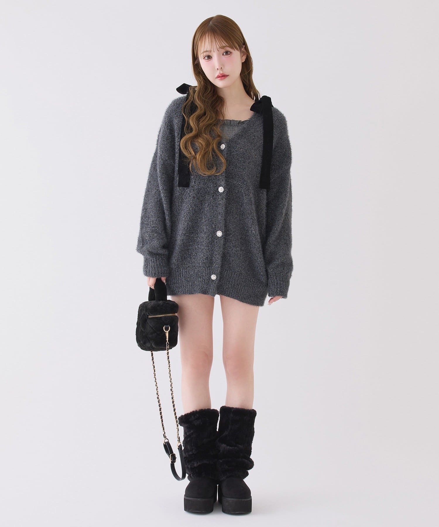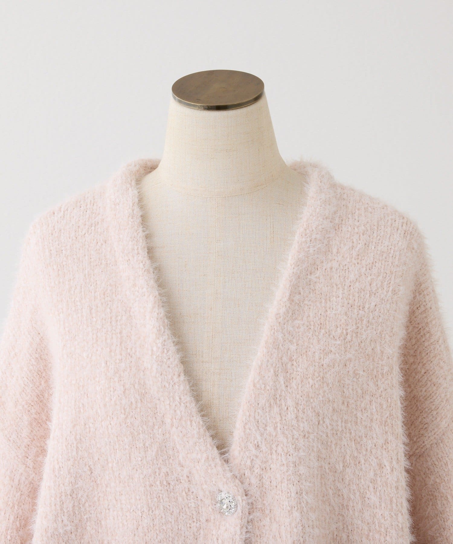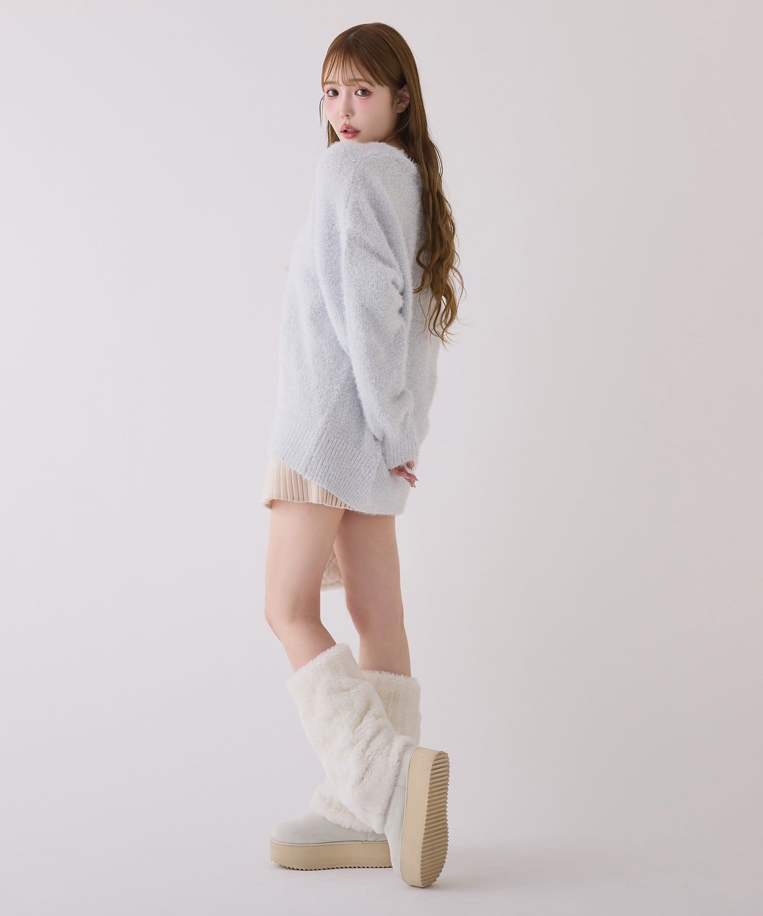 お尻が隠れる丈感で、カーディガンとしてはもちろん、すっぽりミニワンピースとしても着られる万能アイテム。