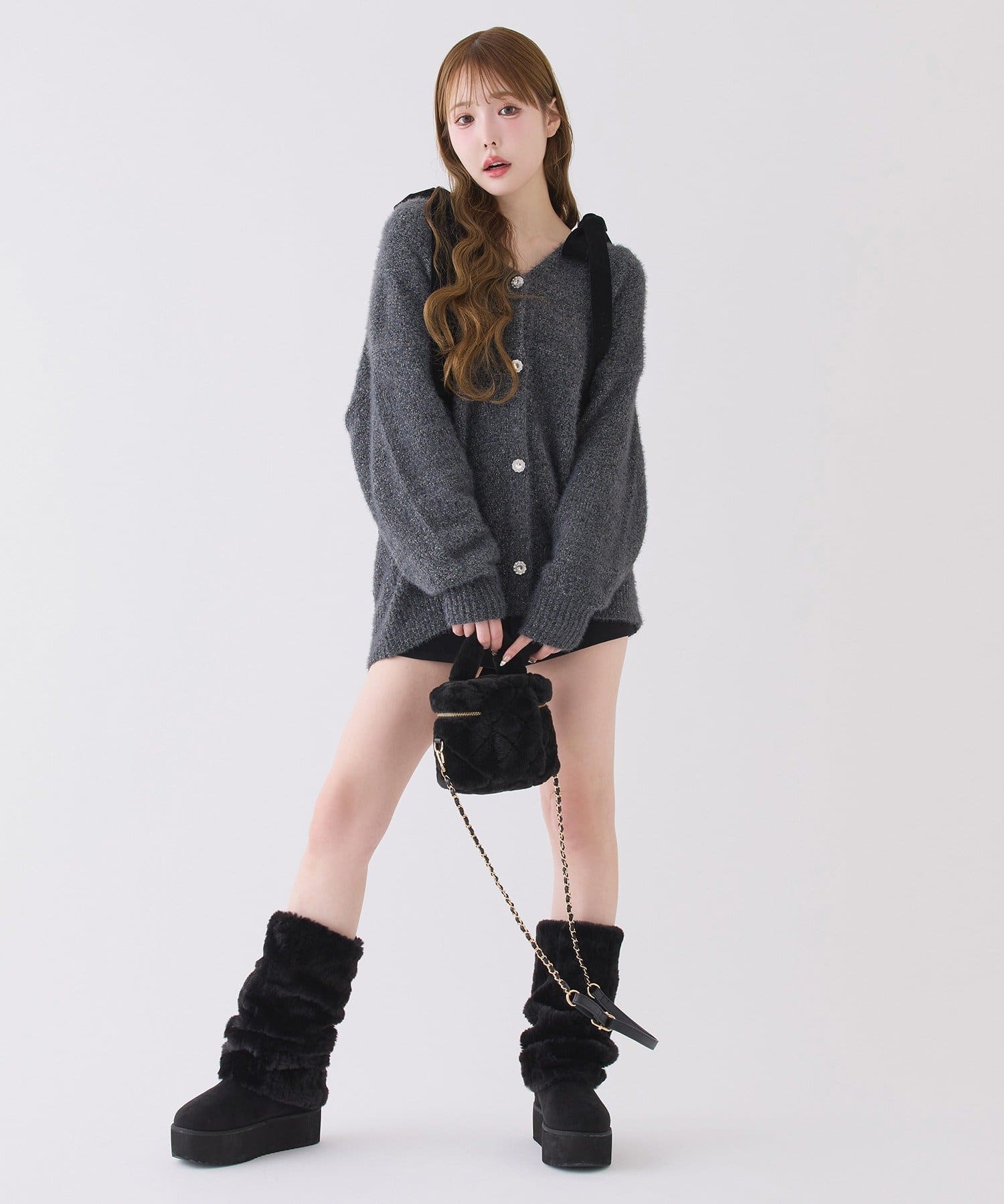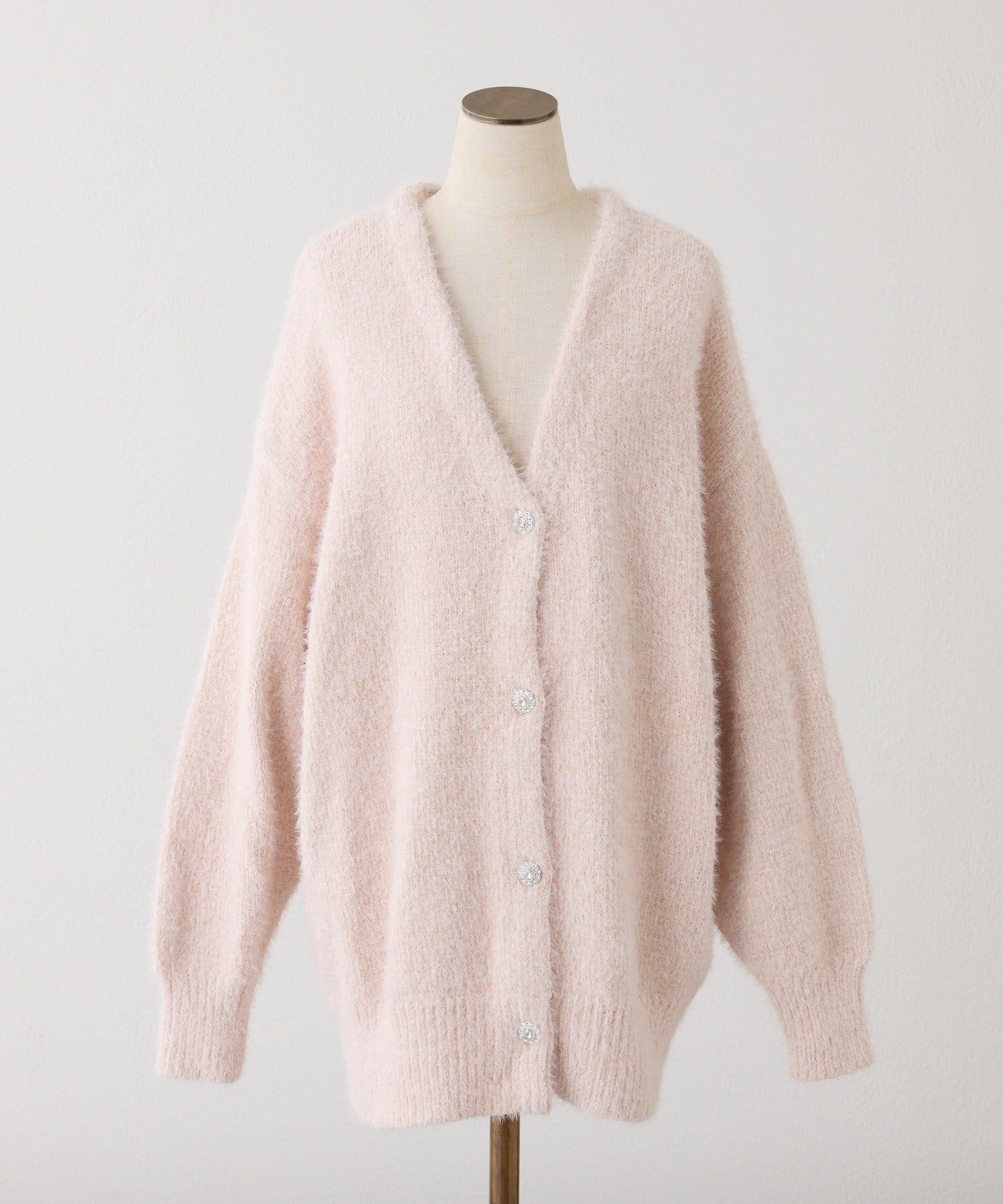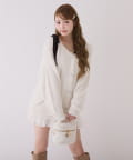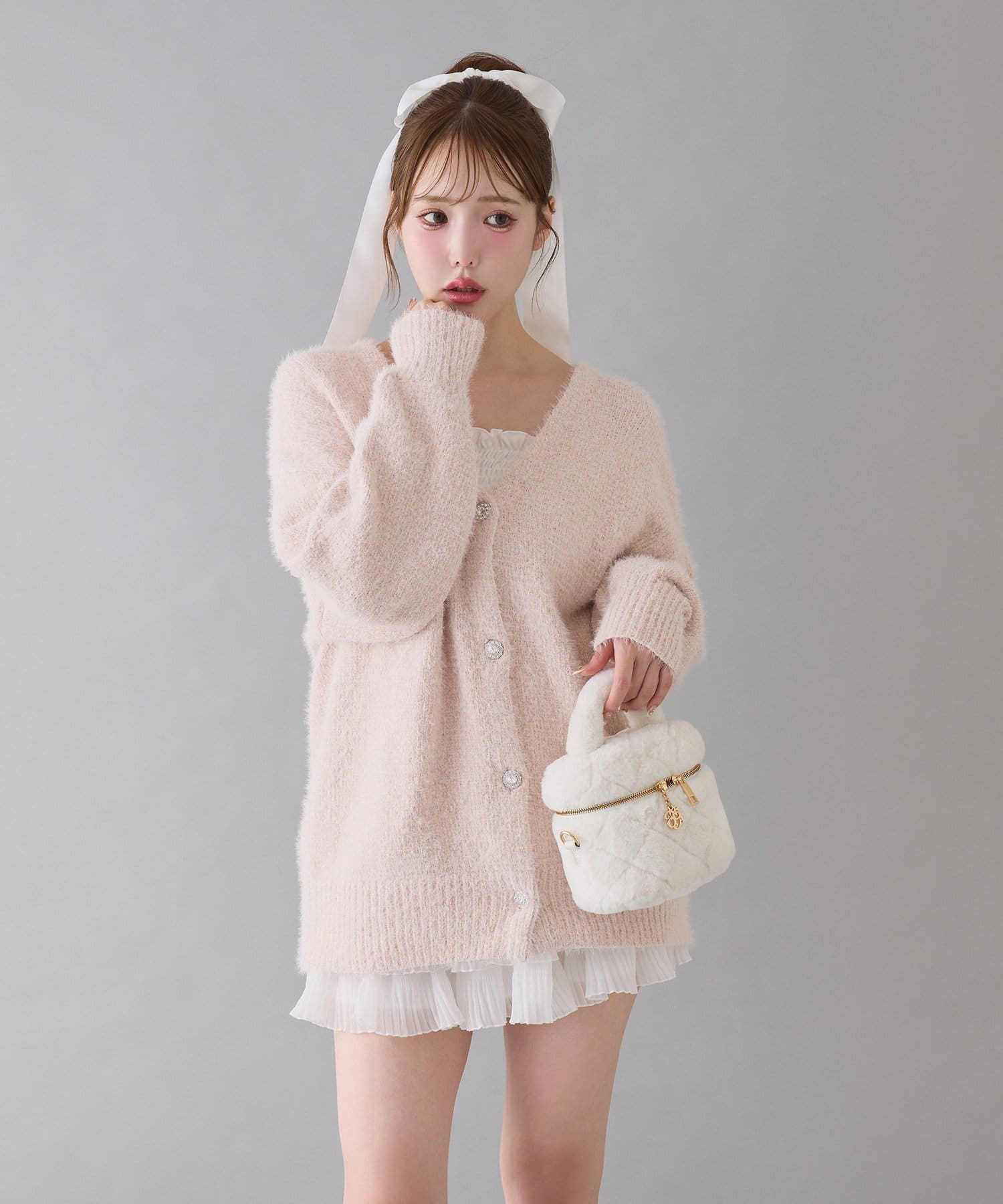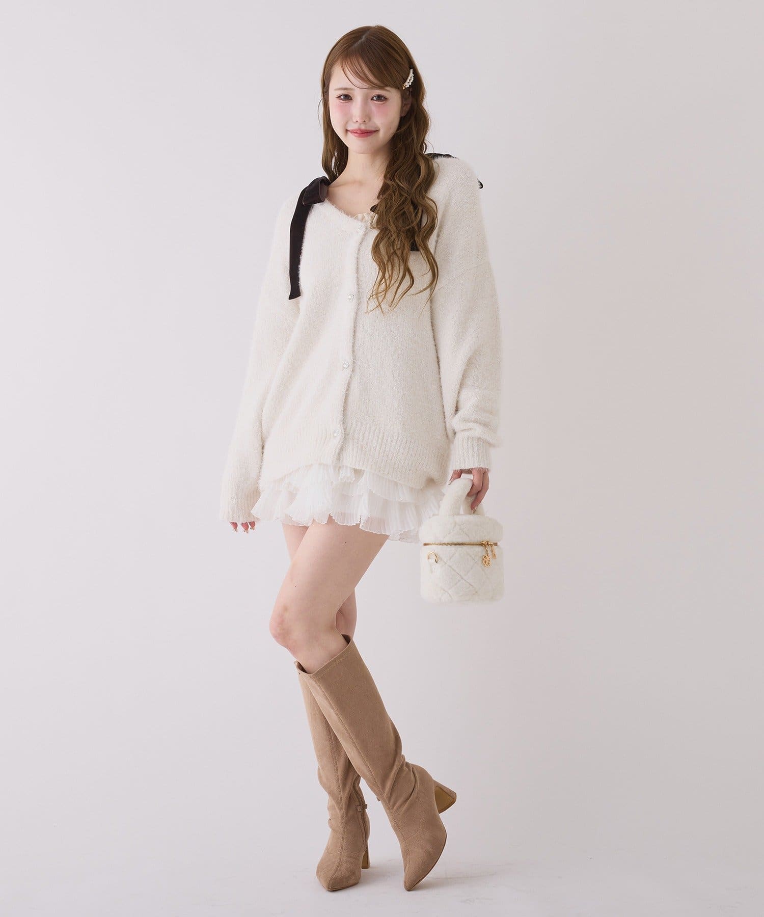 お尻が隠れる丈感で、カーディガンとしてはもちろん、すっぽりミニワンピースとしても着られる万能アイテム。