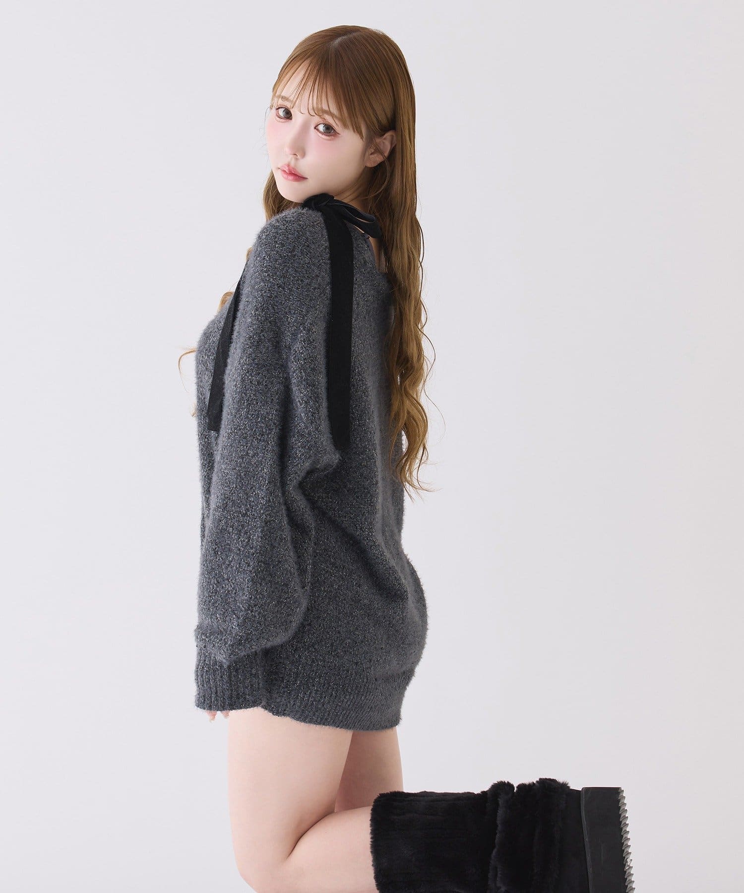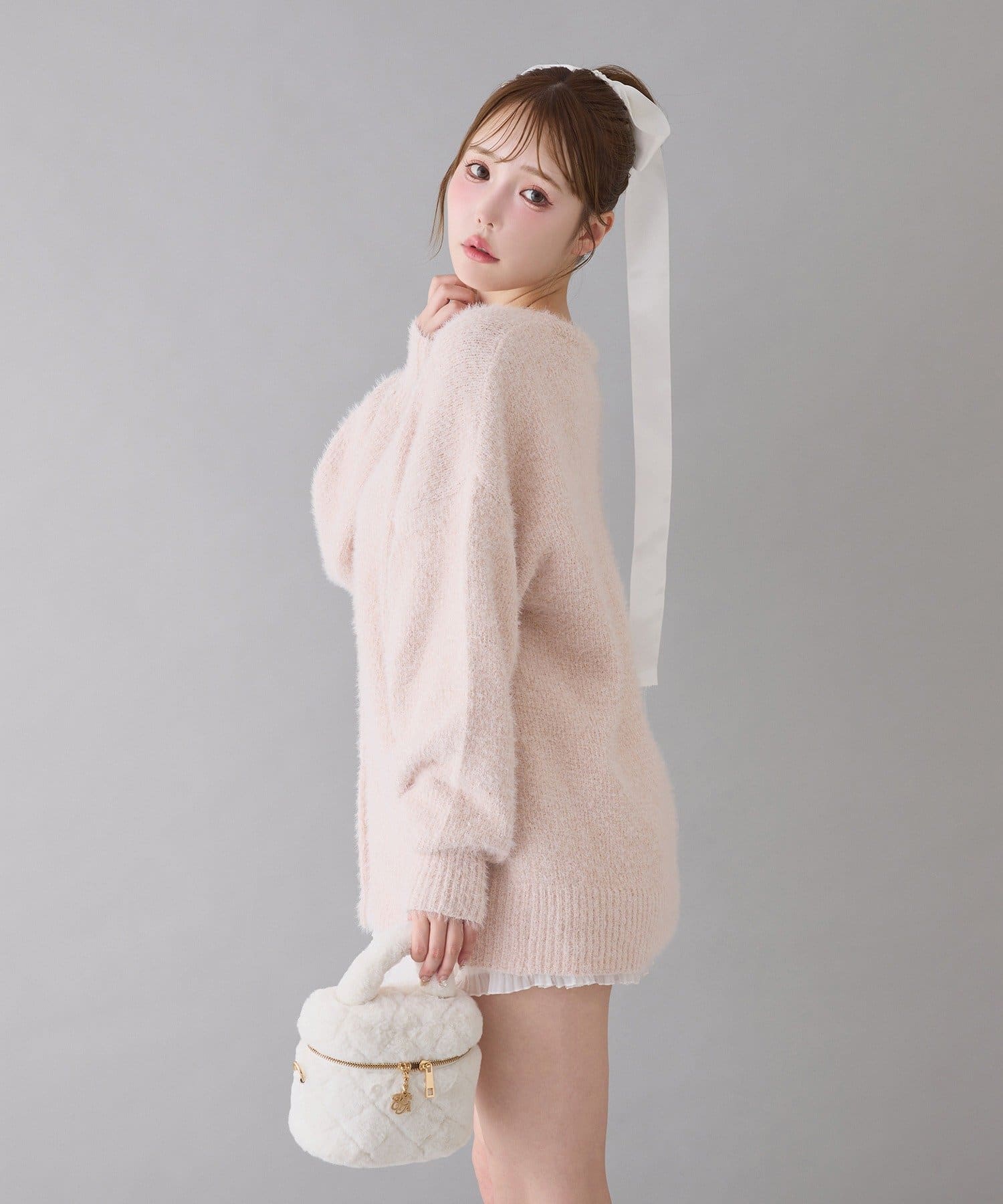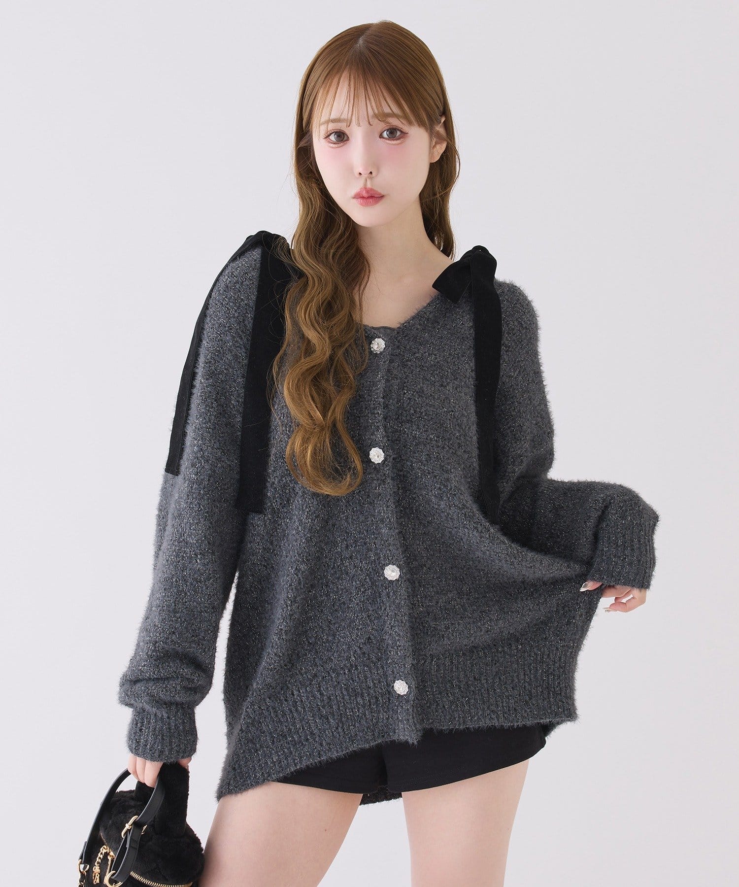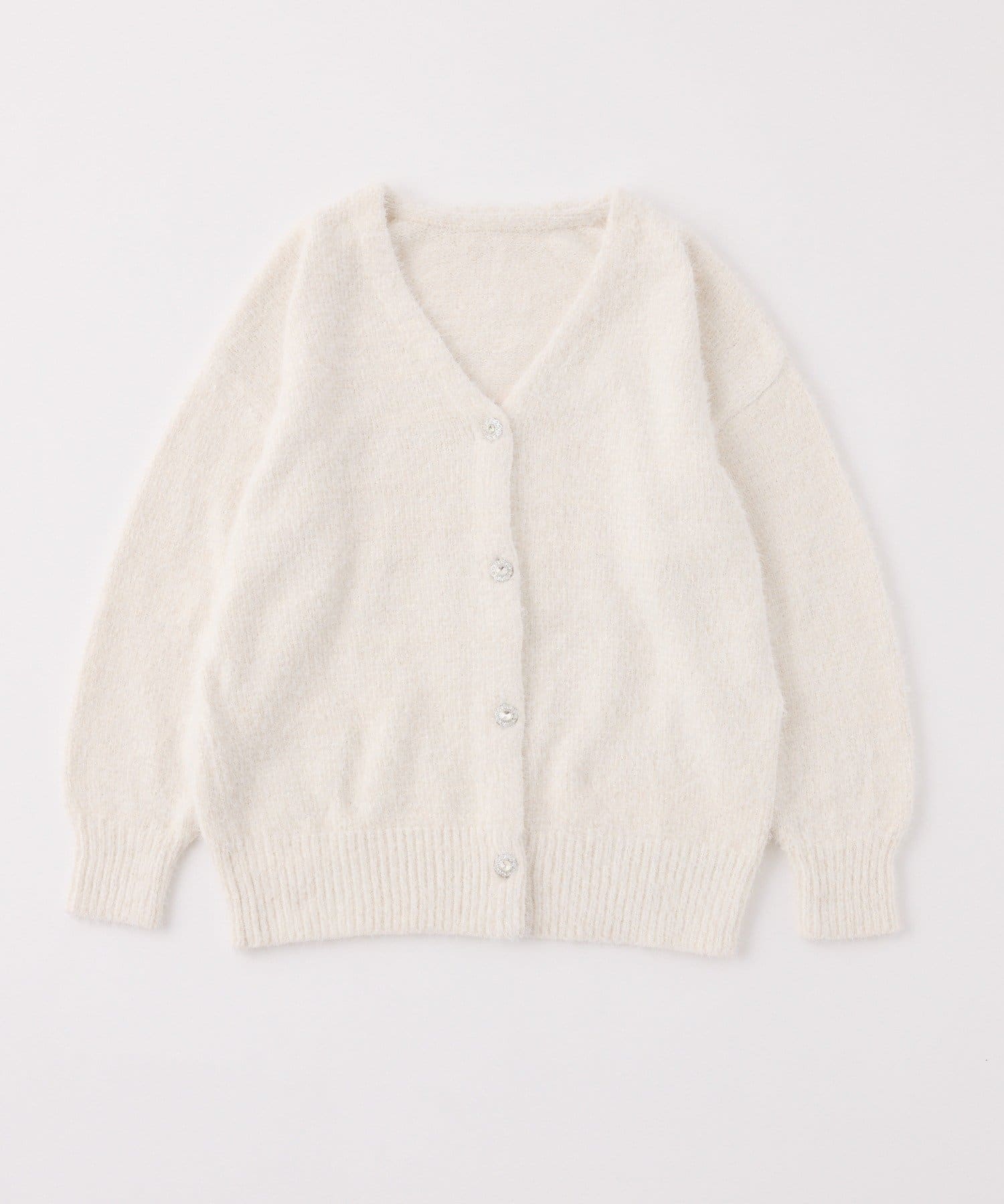 お尻が隠れる丈感で、カーディガンとしてはもちろん、すっぽりミニワンピースとしても着られる万能アイテム。