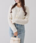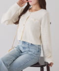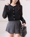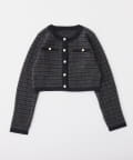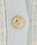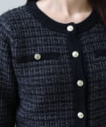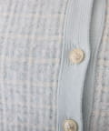 多色の糸を組み合わせて編むことで、立体感と奥行きを出したツイードニットカーディガン。
