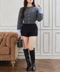 プリーツスカートと合わせてフェミニンにまとめるのもおすすめ