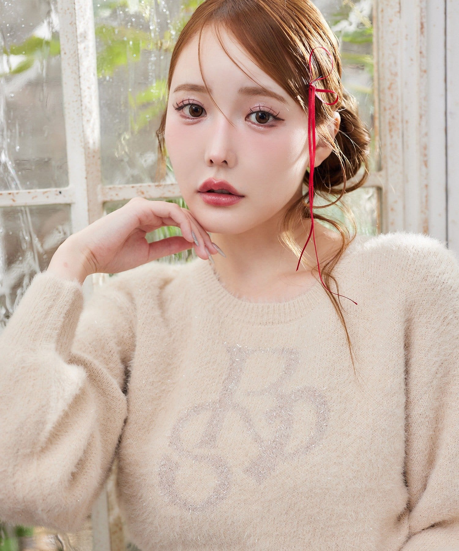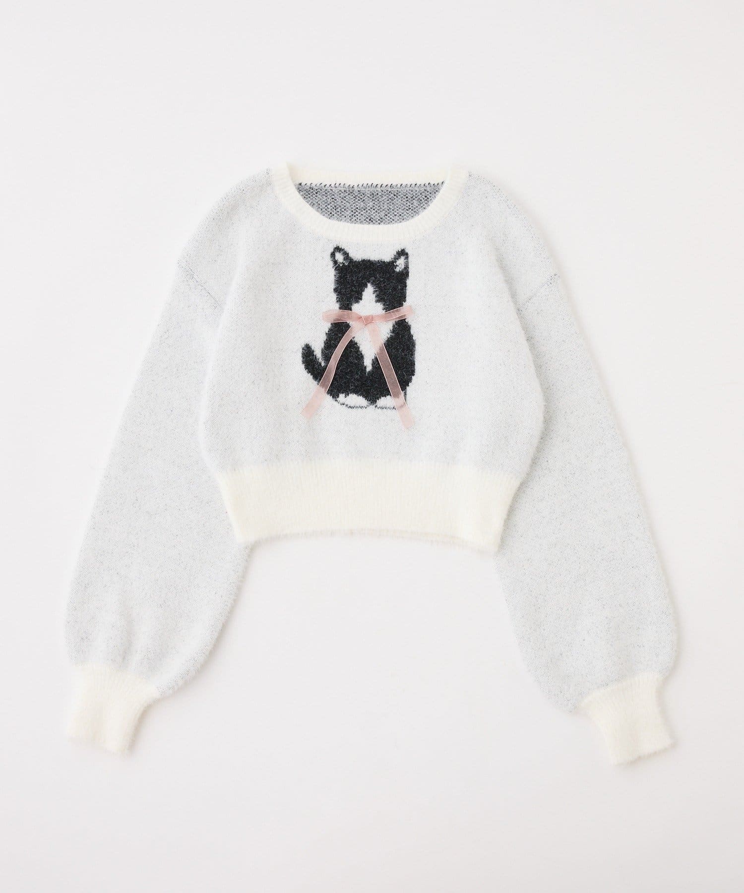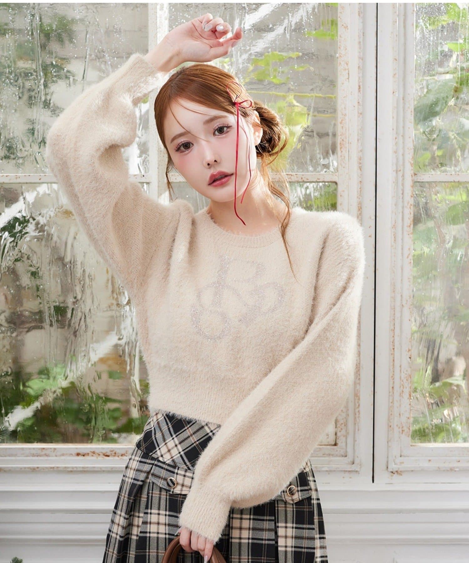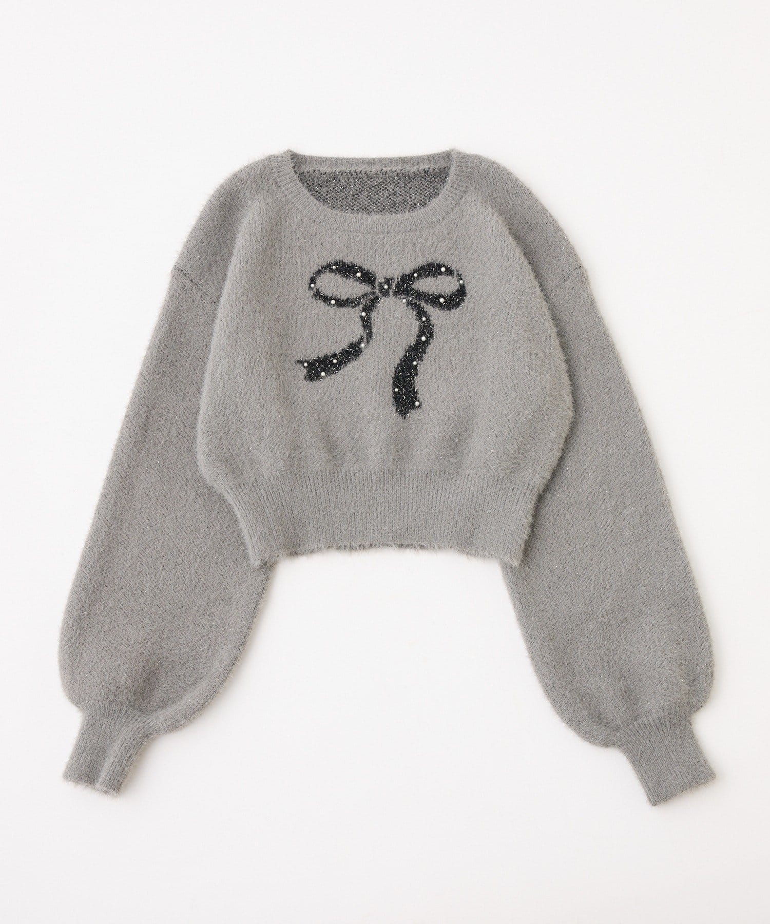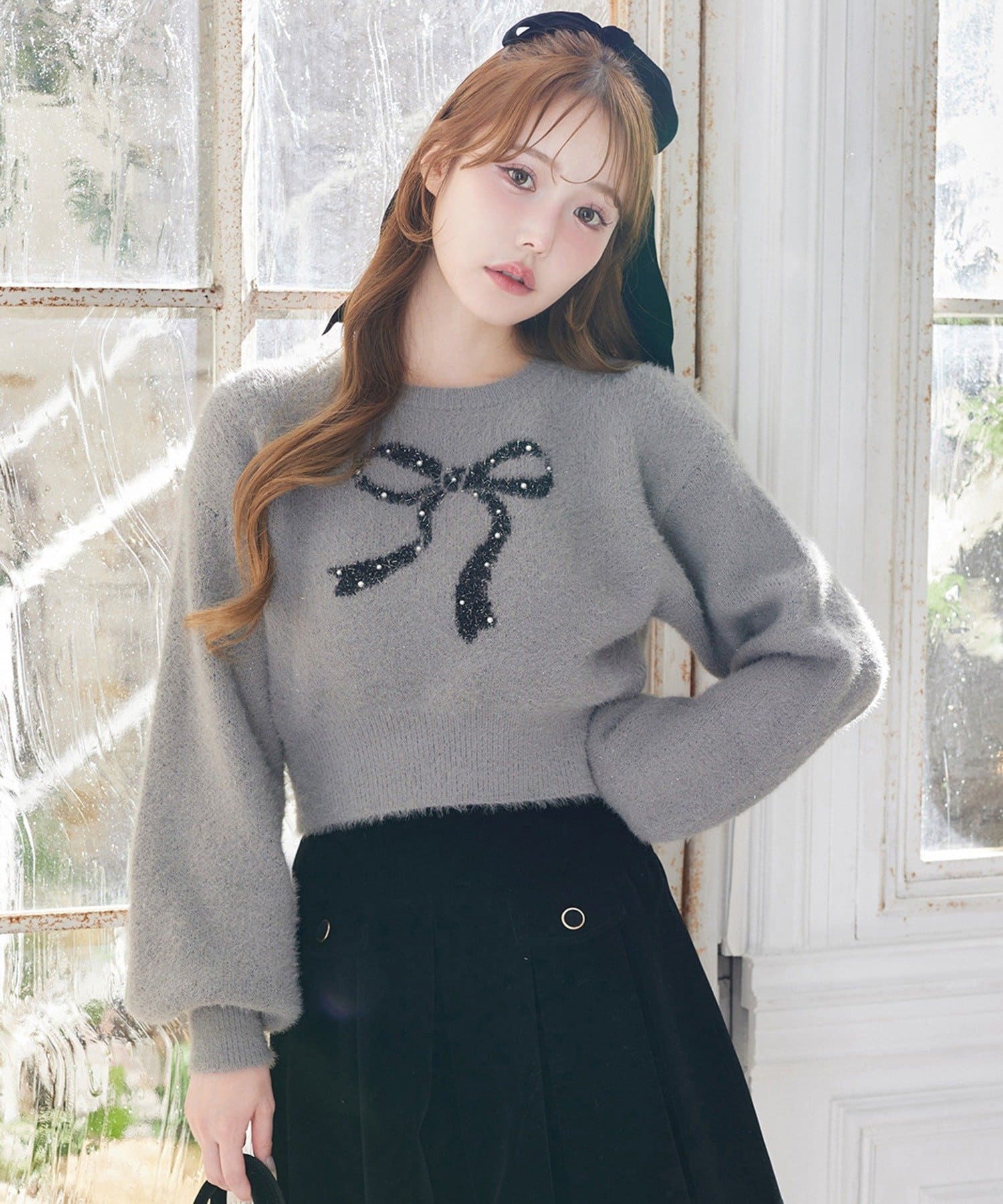 ゆったりした身幅に、たっぷりのボリュームスリーブがポイントのニット。