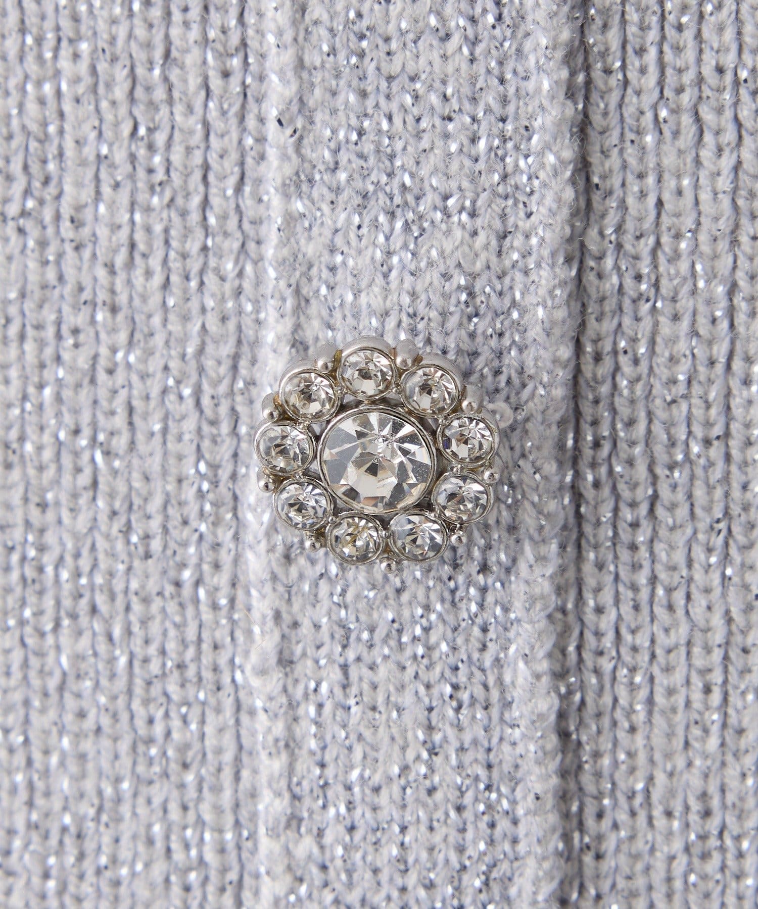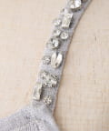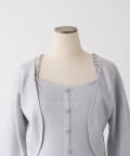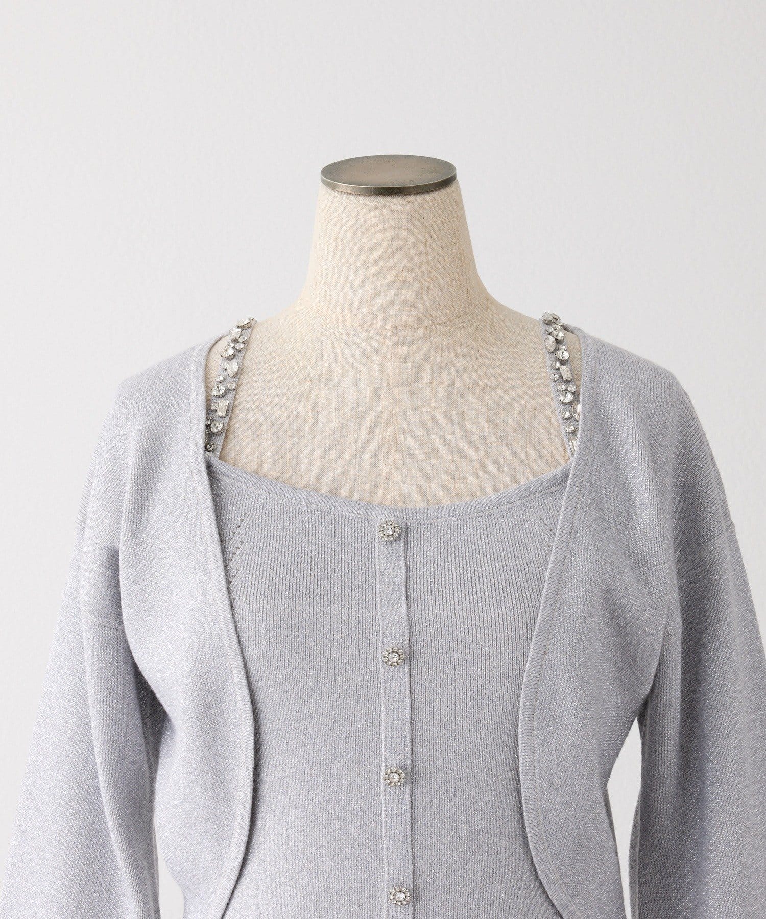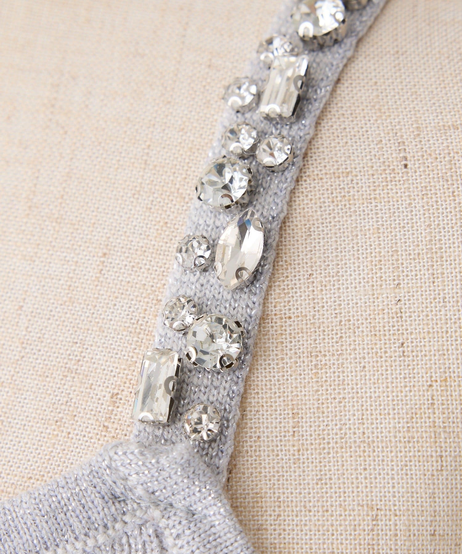 キラキラのビジューをあしらった肩デザインがポイントのニットキャミと、
