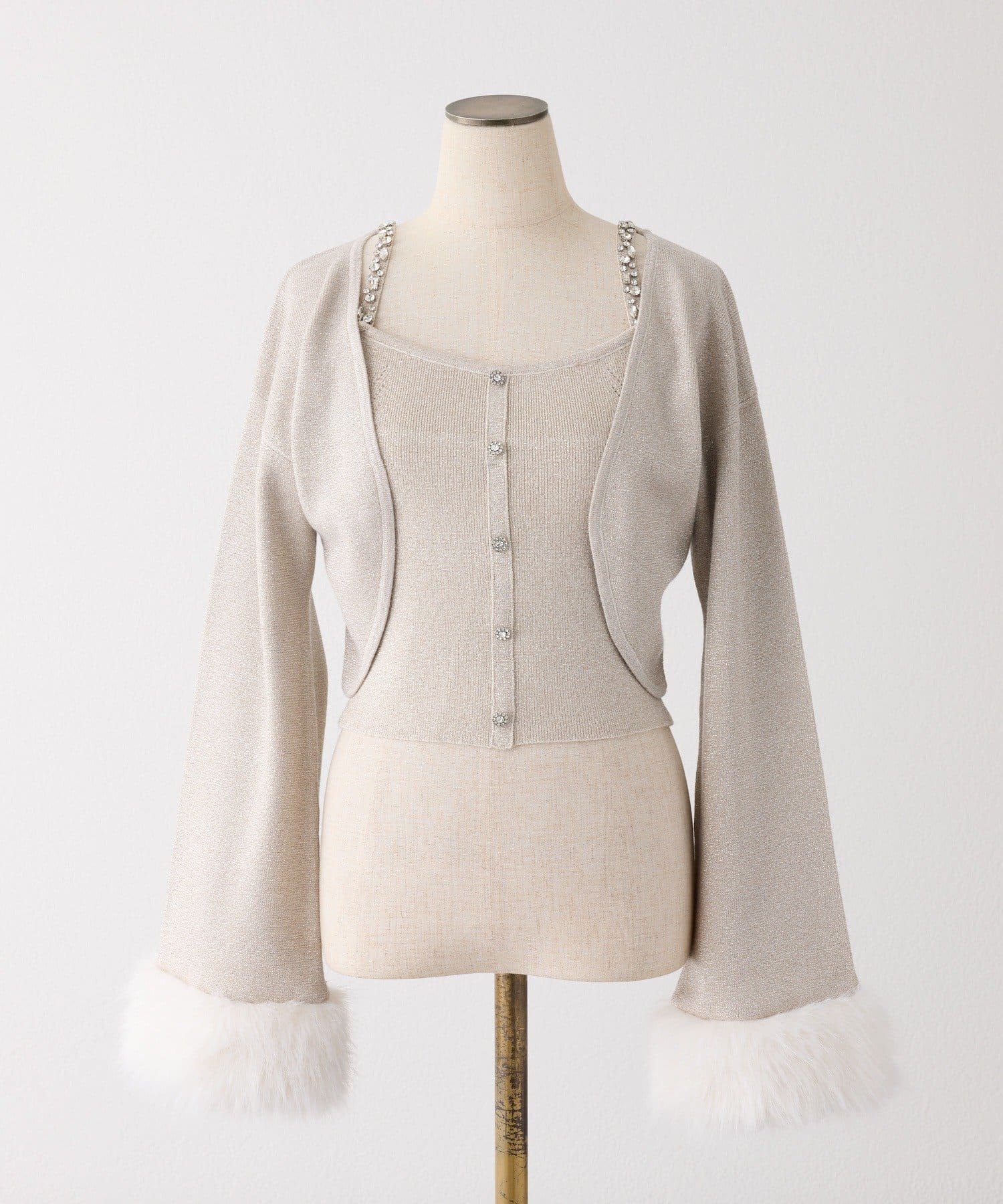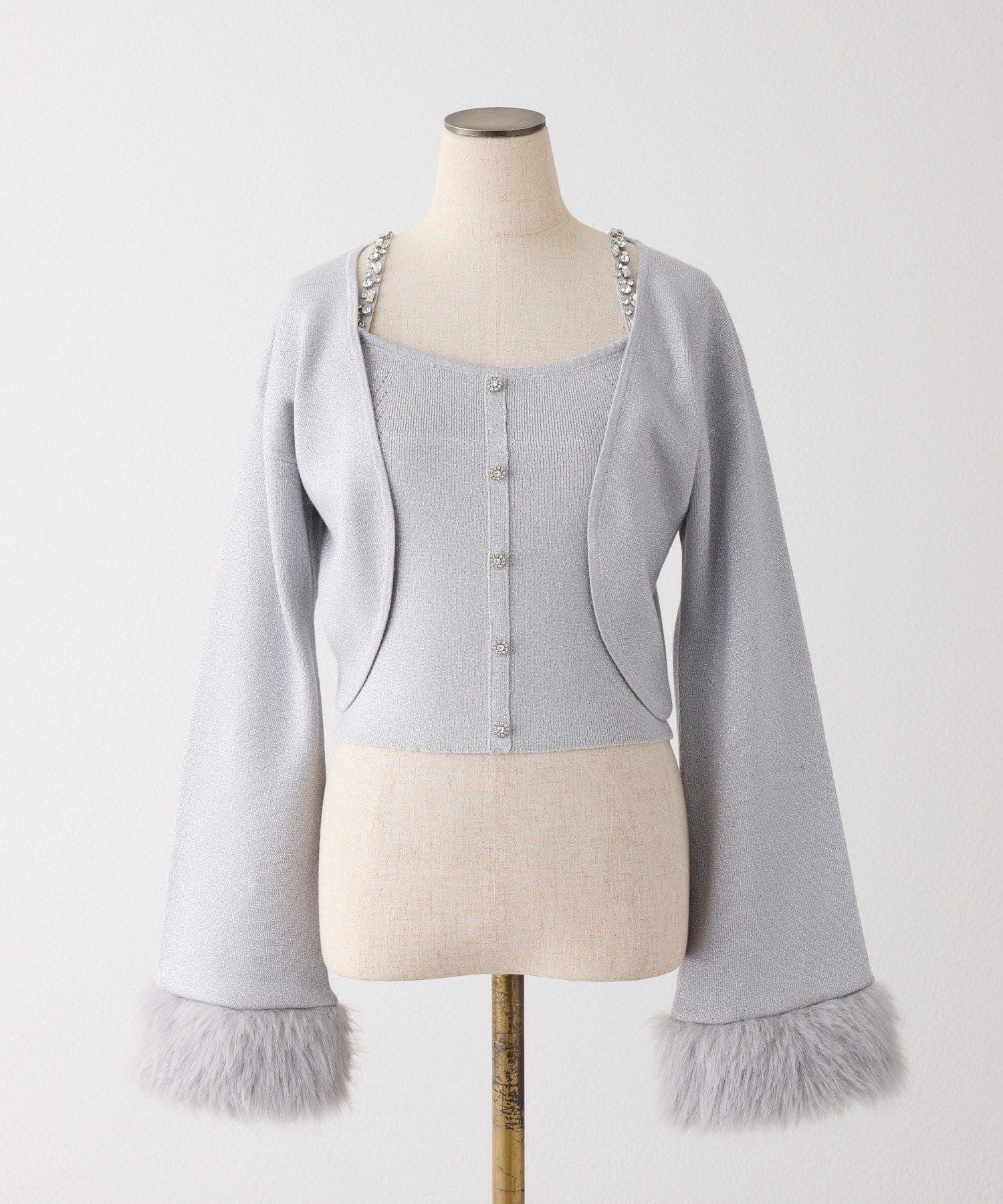 TOP > one after another NICE CLAUP > レディース > トップス > ニット/セーター > 【Twinkle Collection】袖ファーボレロ+キラキラビスチェSET