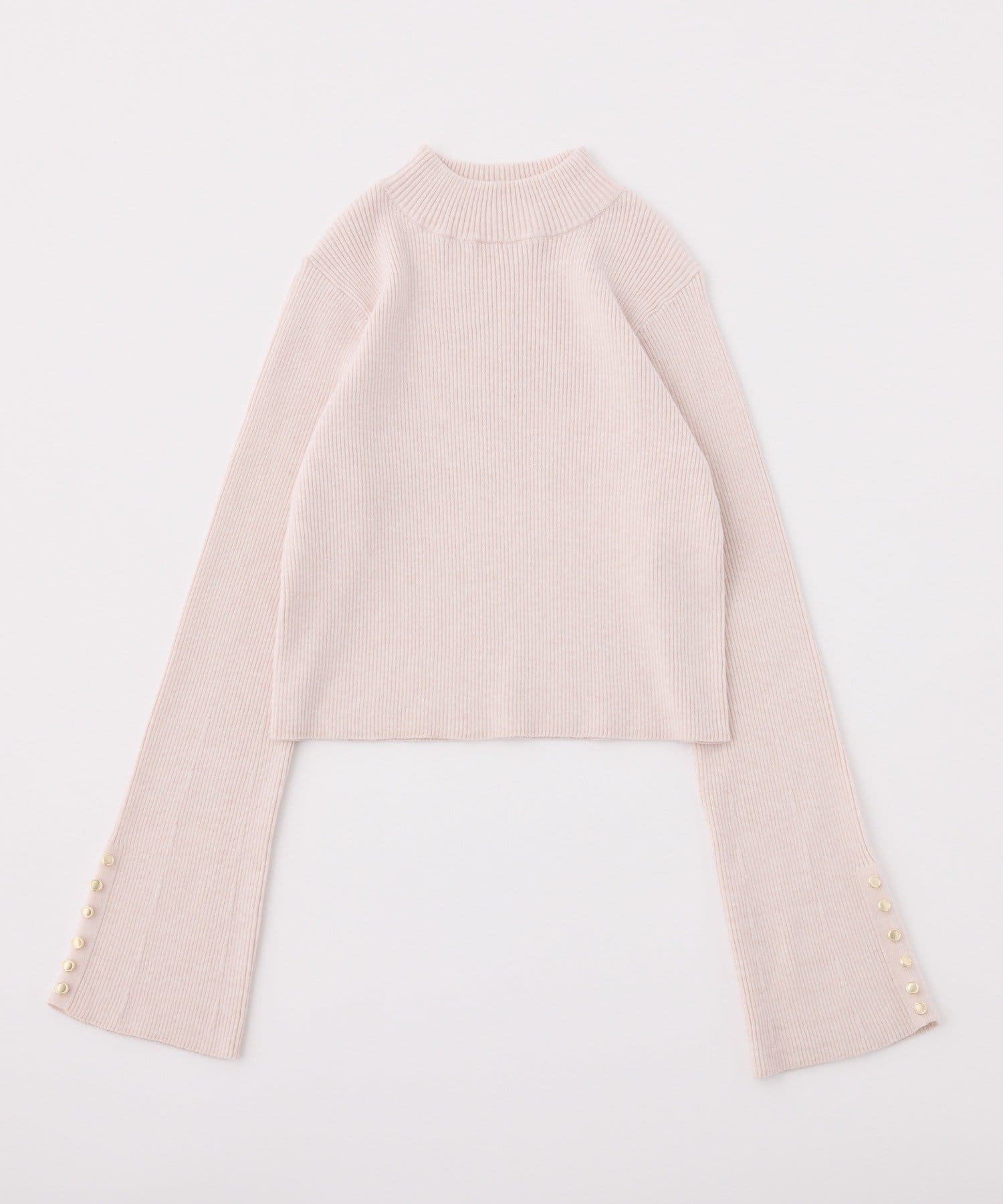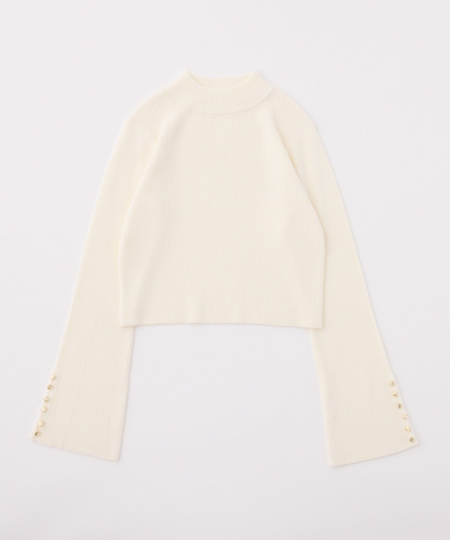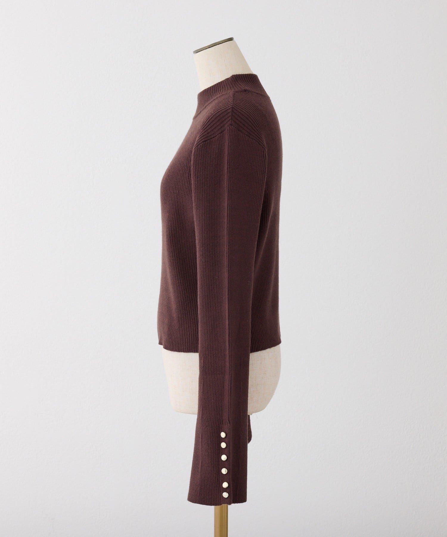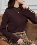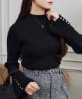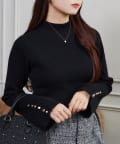 袖口のキラキラボタンがポイントになったハイネックニット。