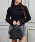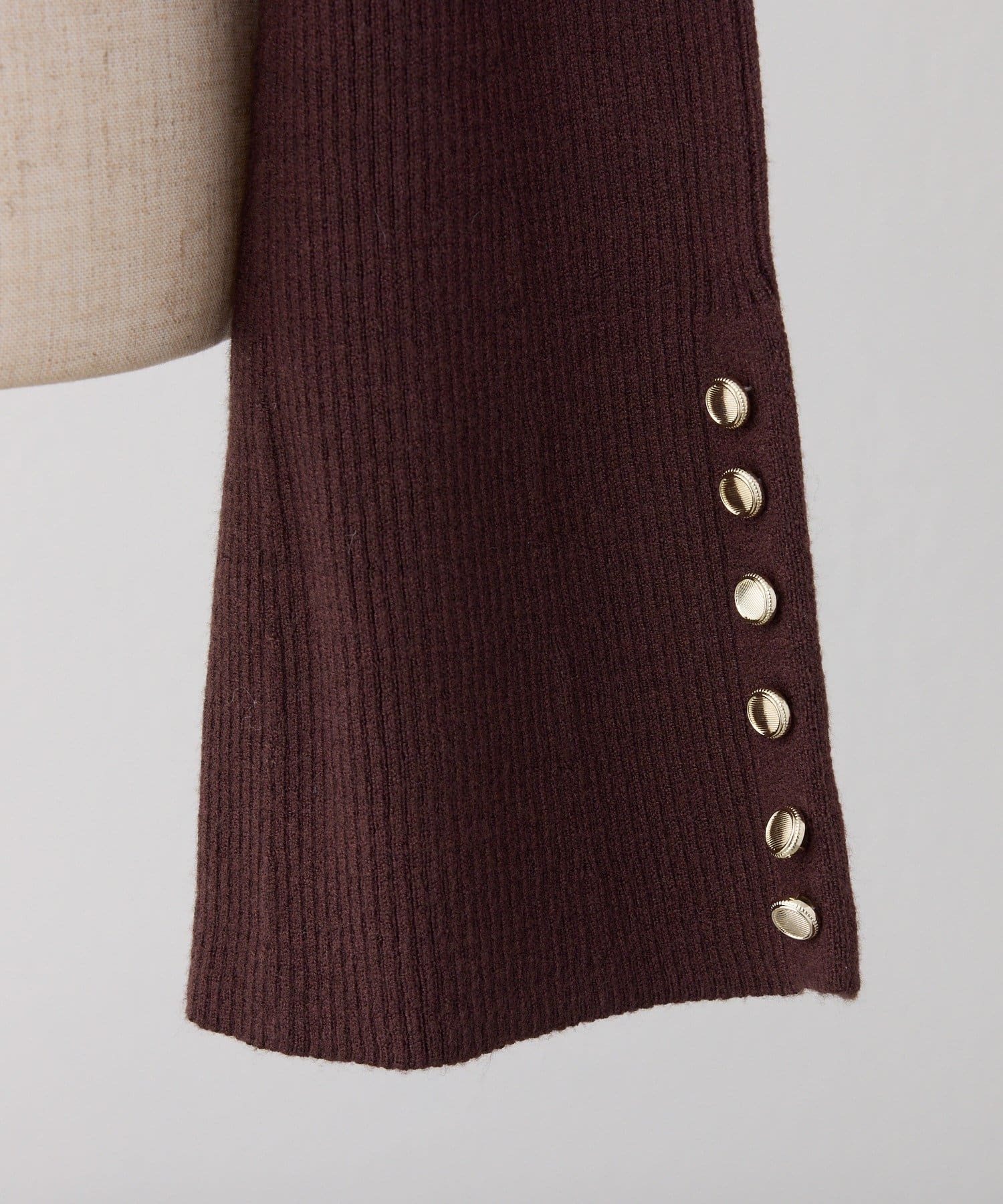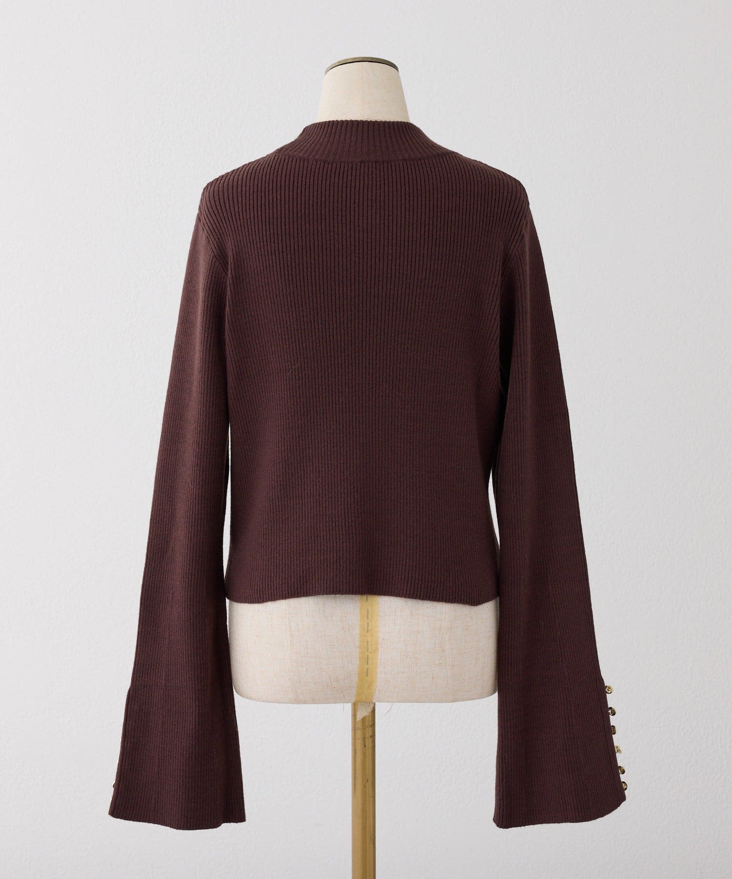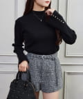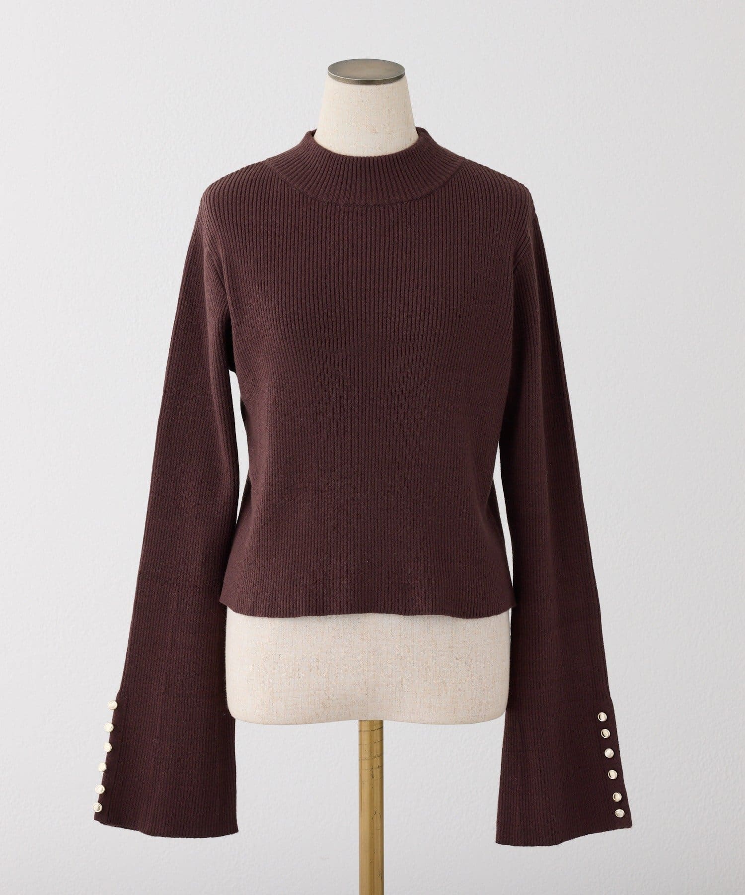袖口のキラキラボタンがポイントになったハイネックニット。