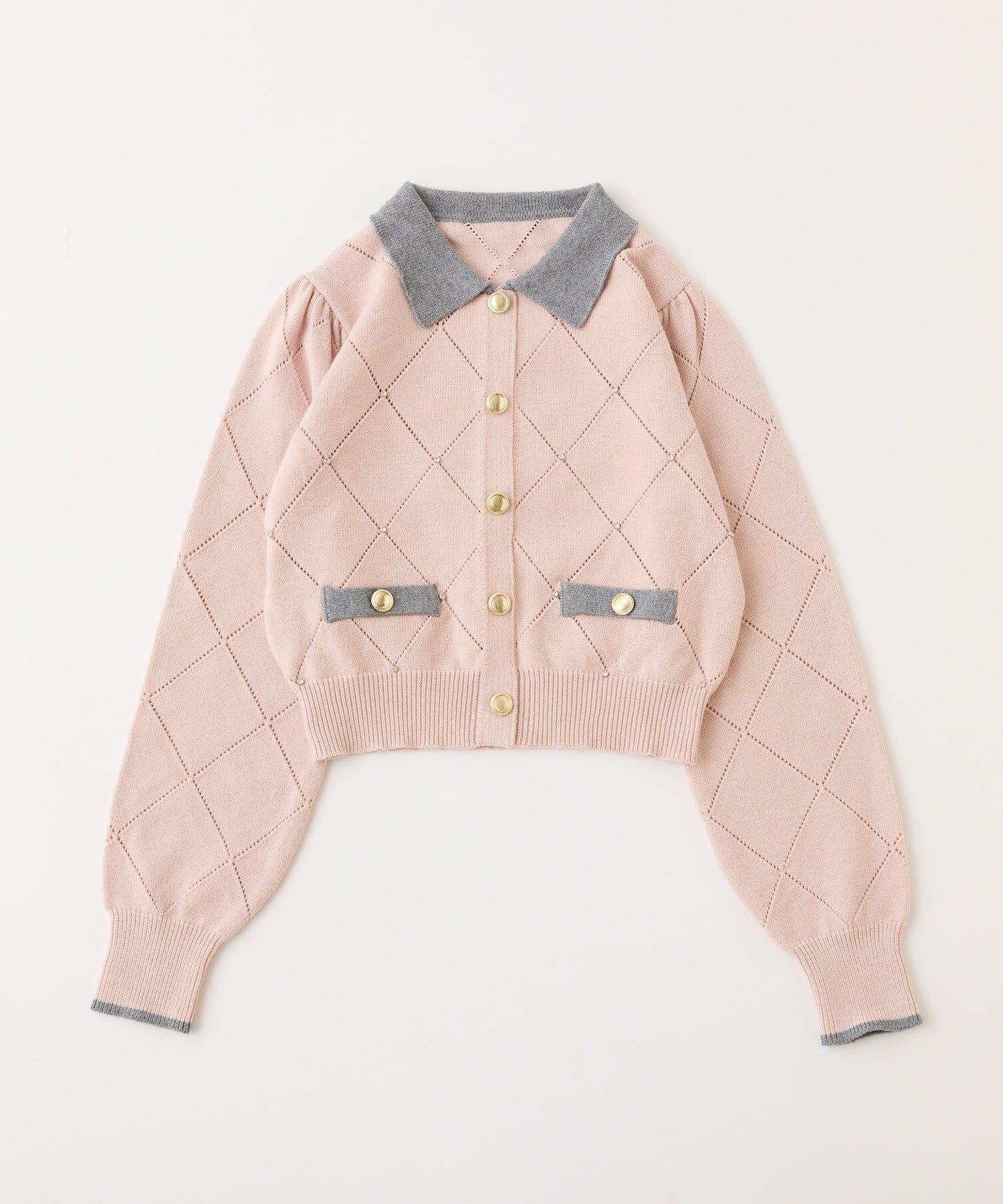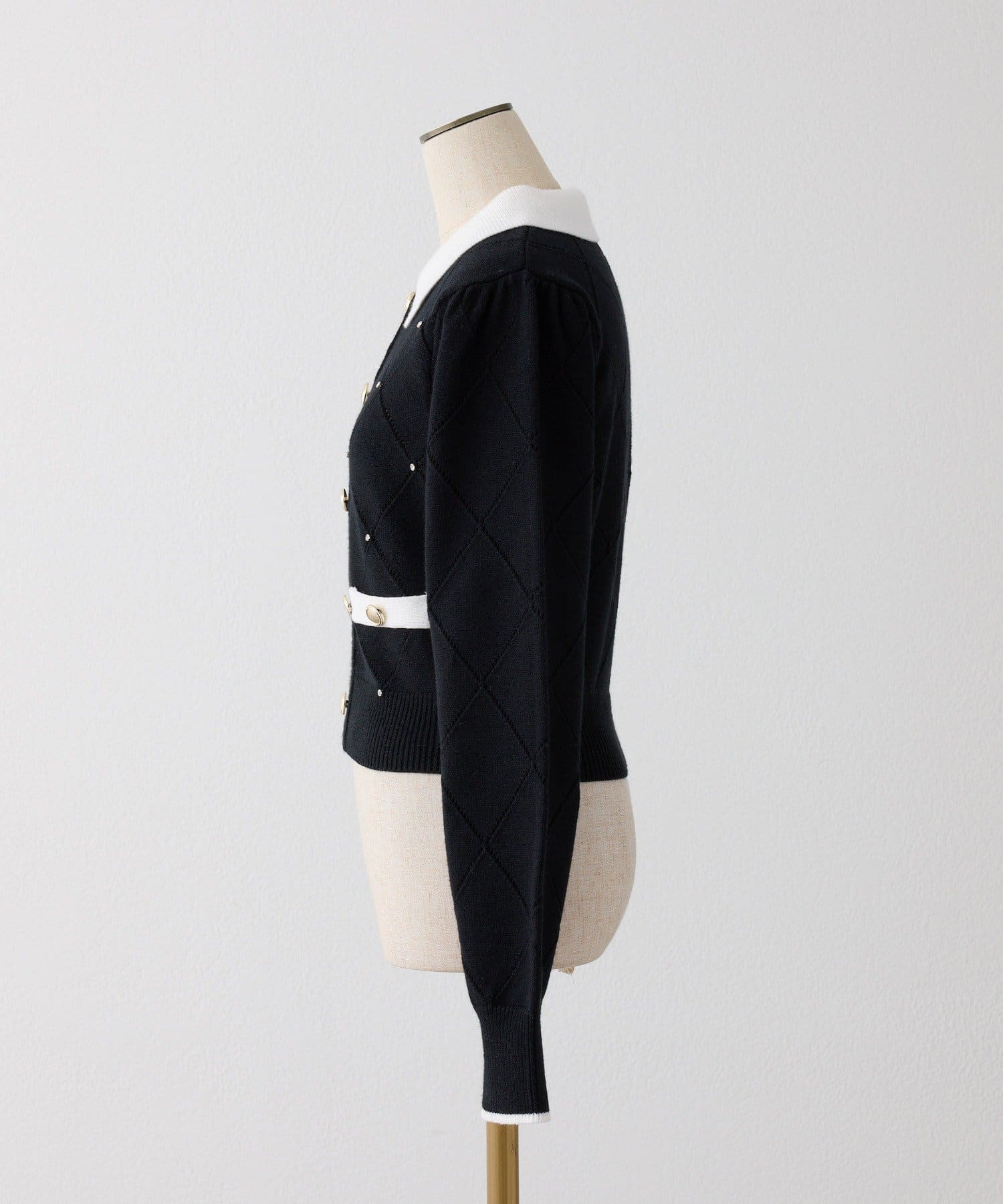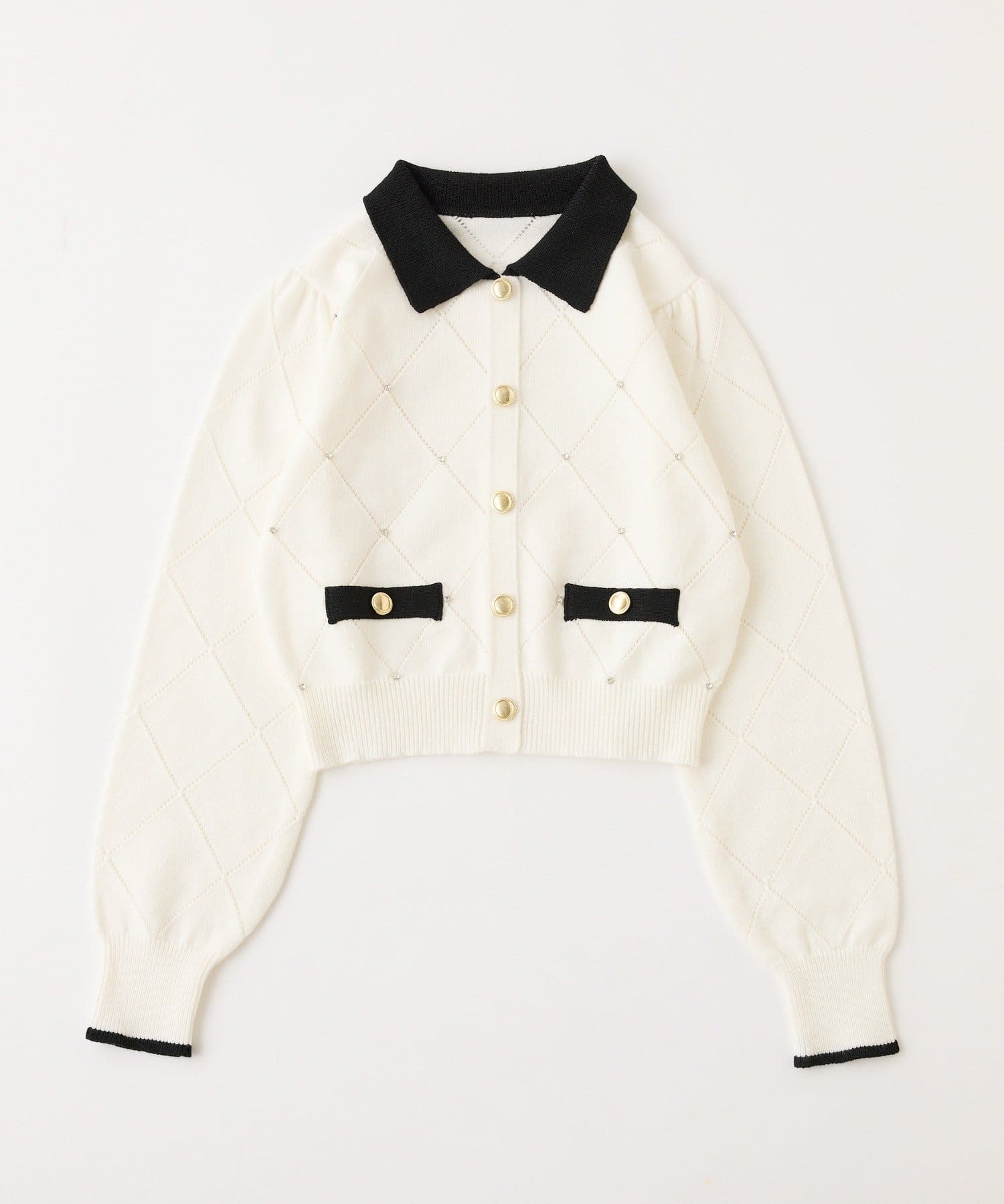 • one after another NICE CLAUP(ワンアフターアナザー ナイスクラップ) 配色ビジュー付ポロニット