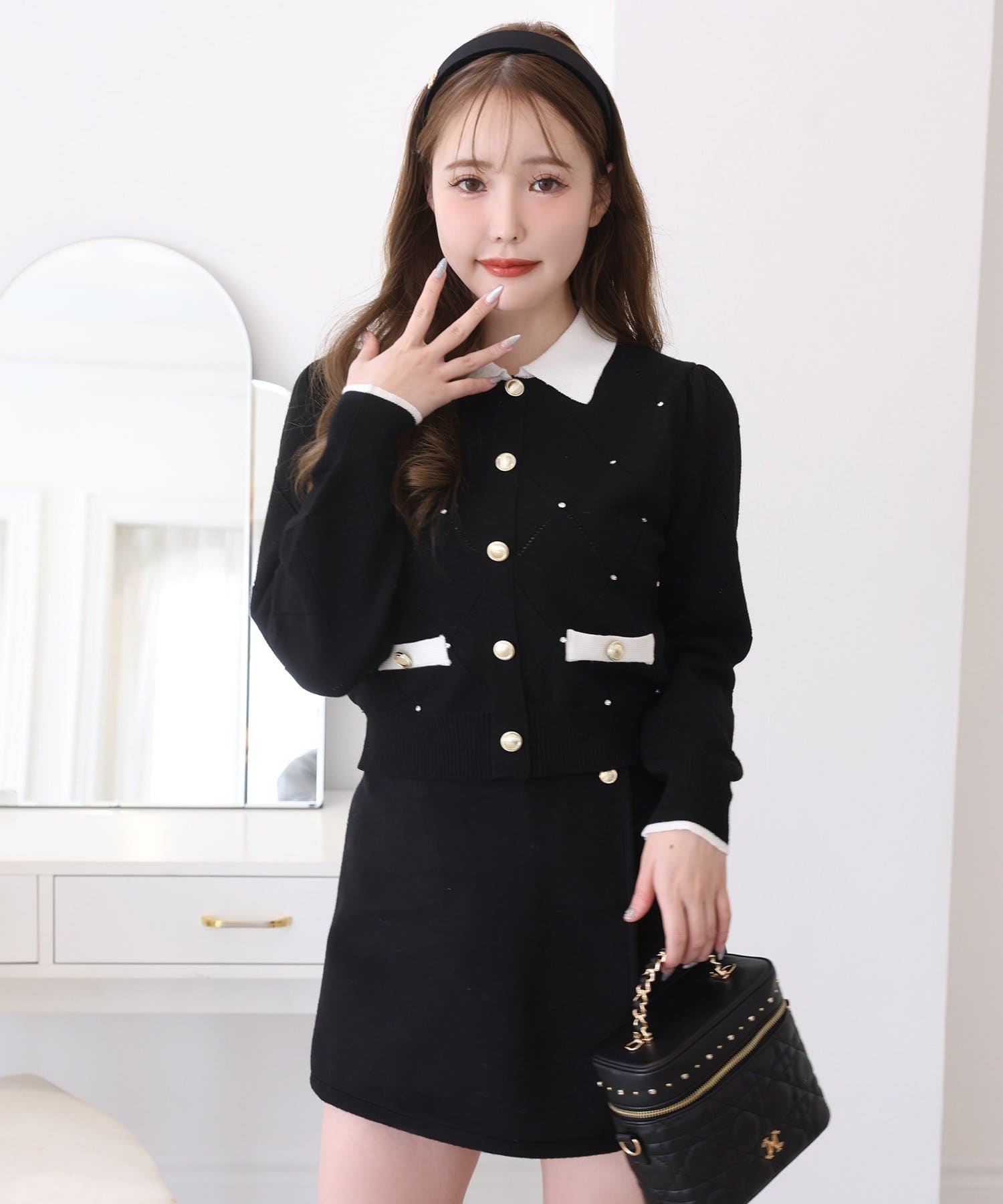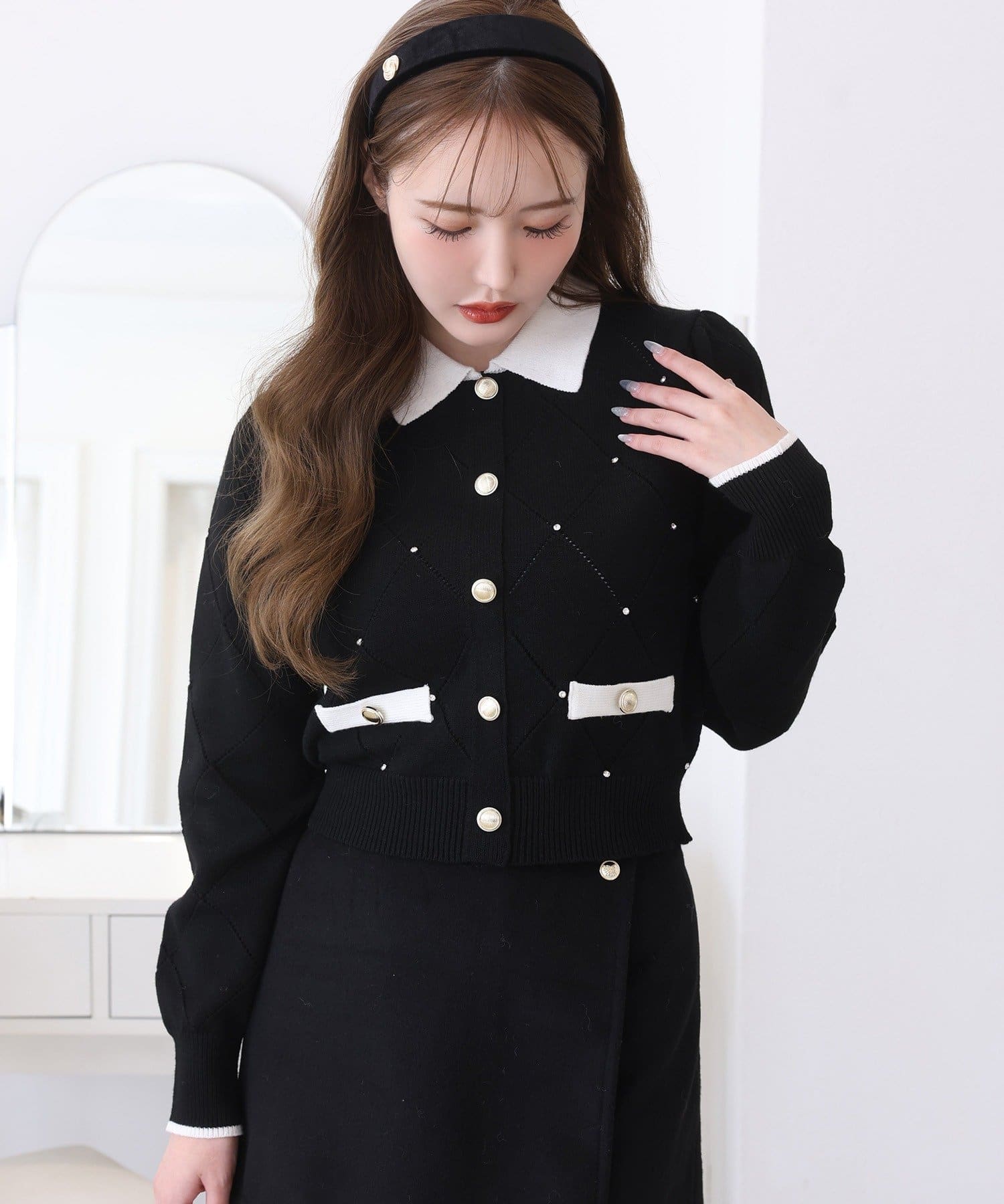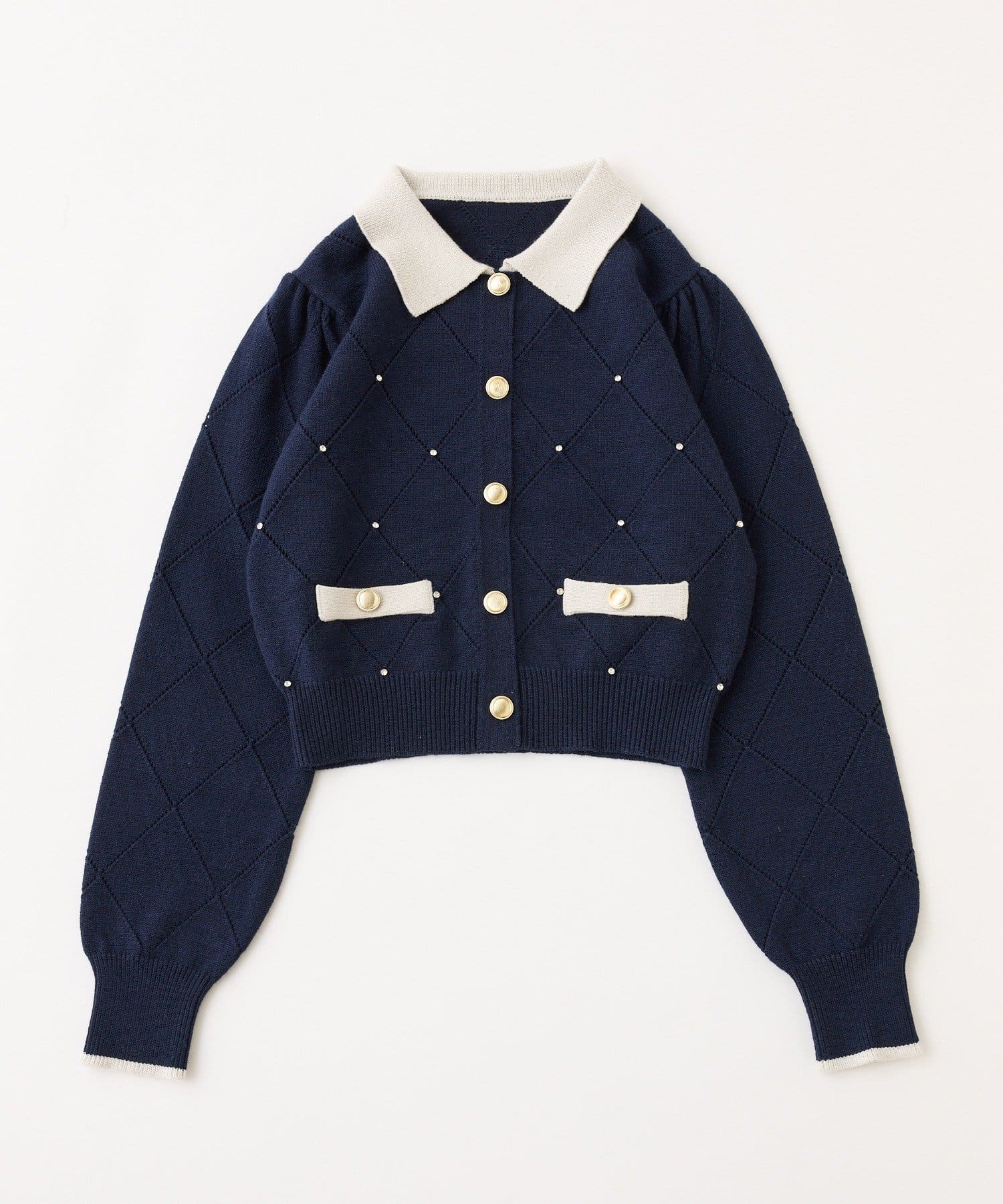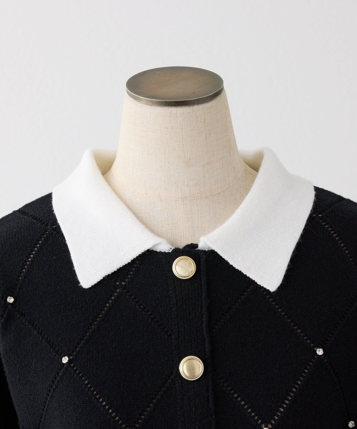 TOP > one after another NICE CLAUP > レディース > トップス > ニット/セーター > 配色ビジュー付ポロニット