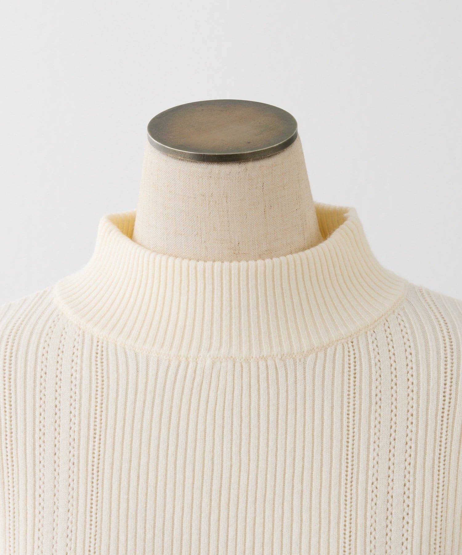 アイレット編みがほどよい抜け感を演出してくれるプチハイネックニット。