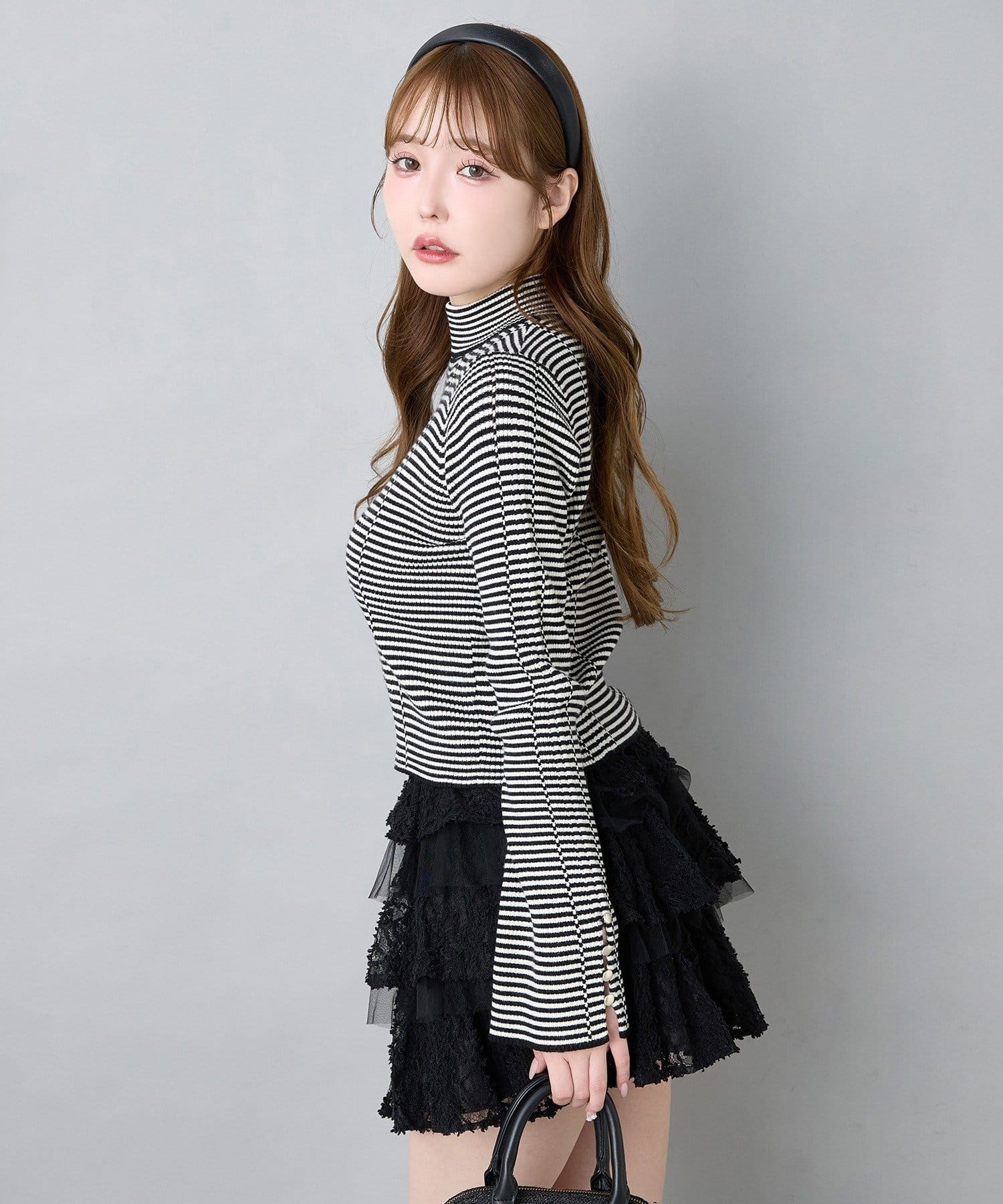 顔まわりをすっきり見せてくれるプチハイデザインで、大人っぽさと可愛さを両立。