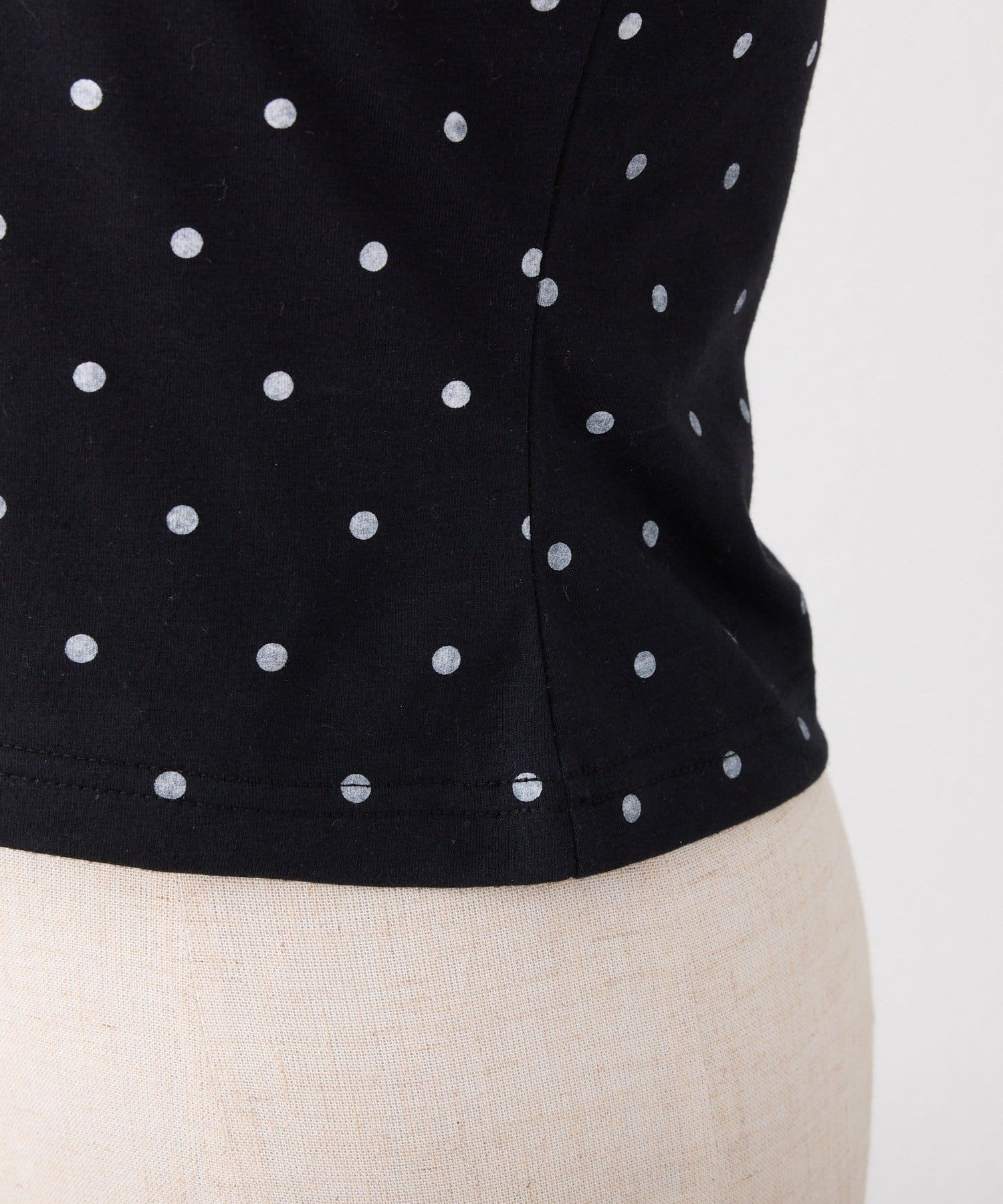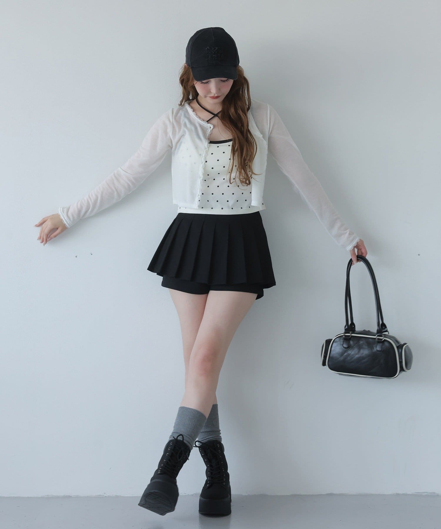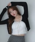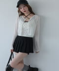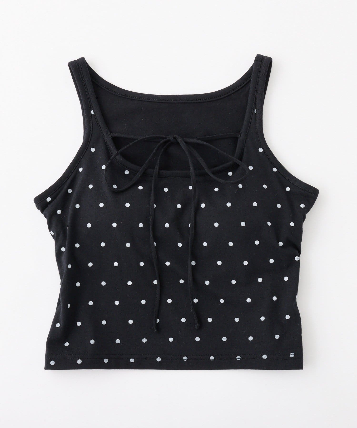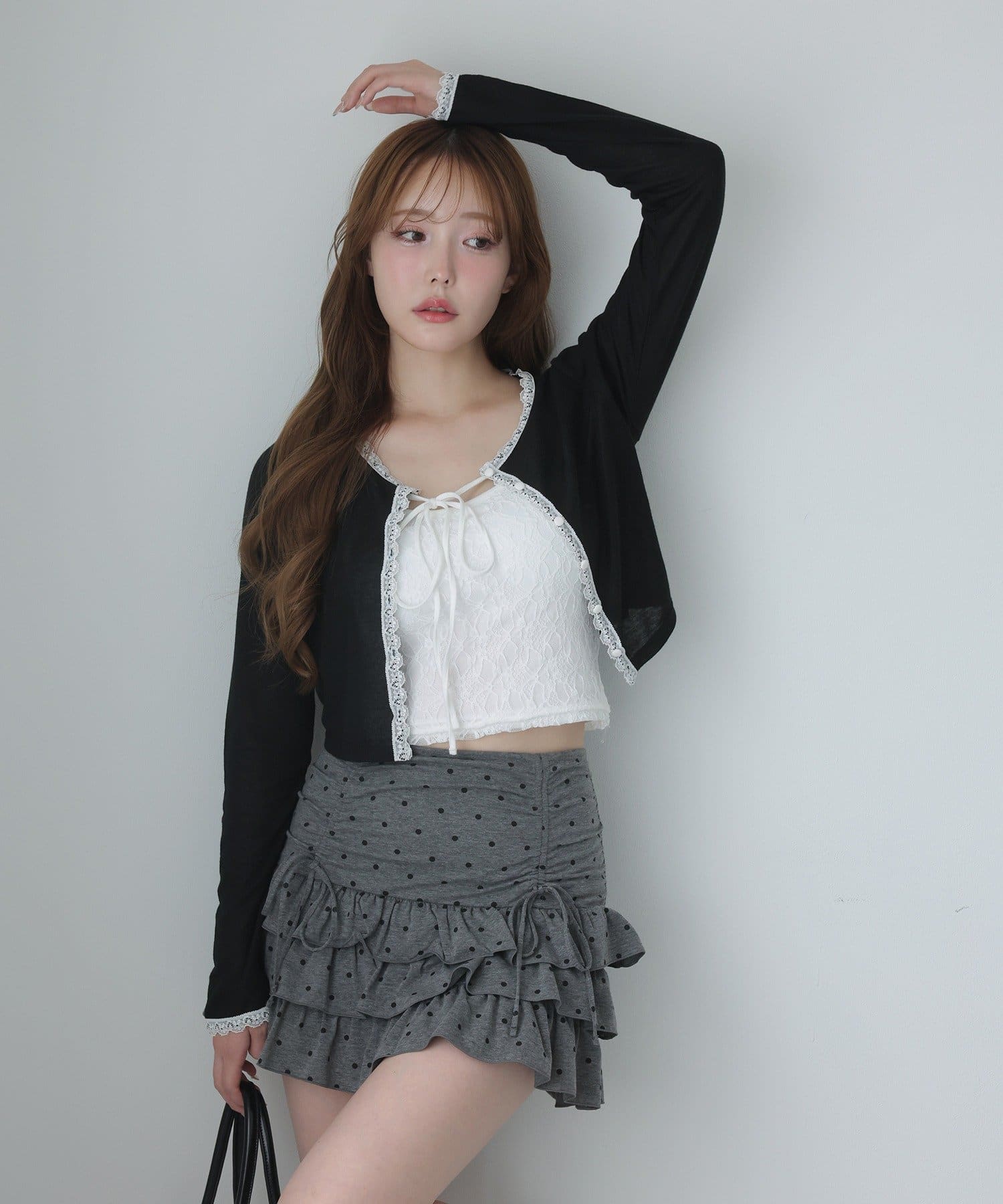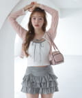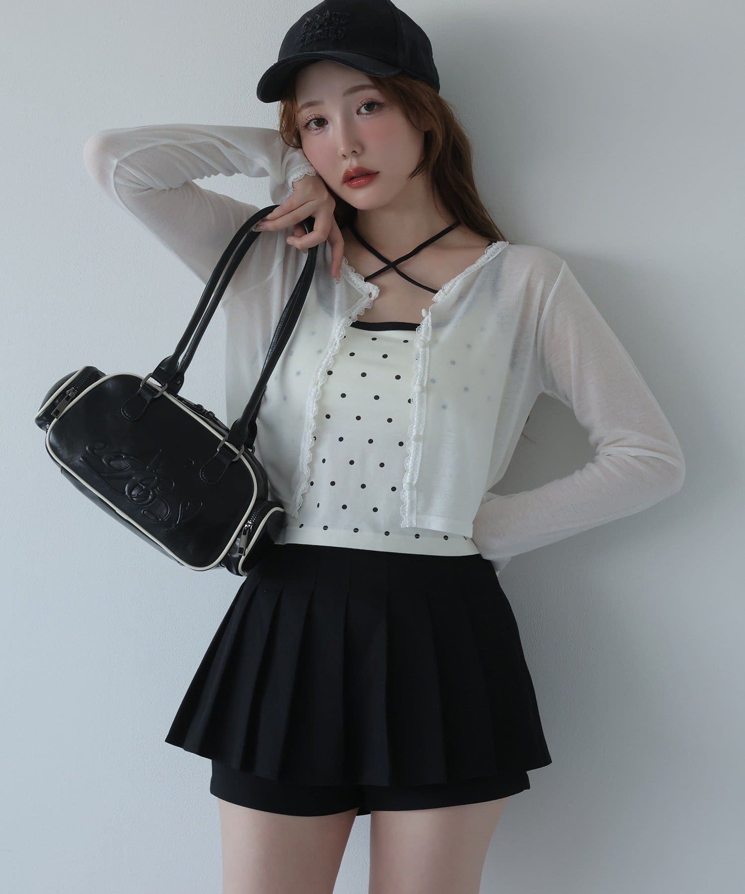 シアートップスやカーディガンのインナーとしてレイヤードすると、胸元のリボンがアクセントに。