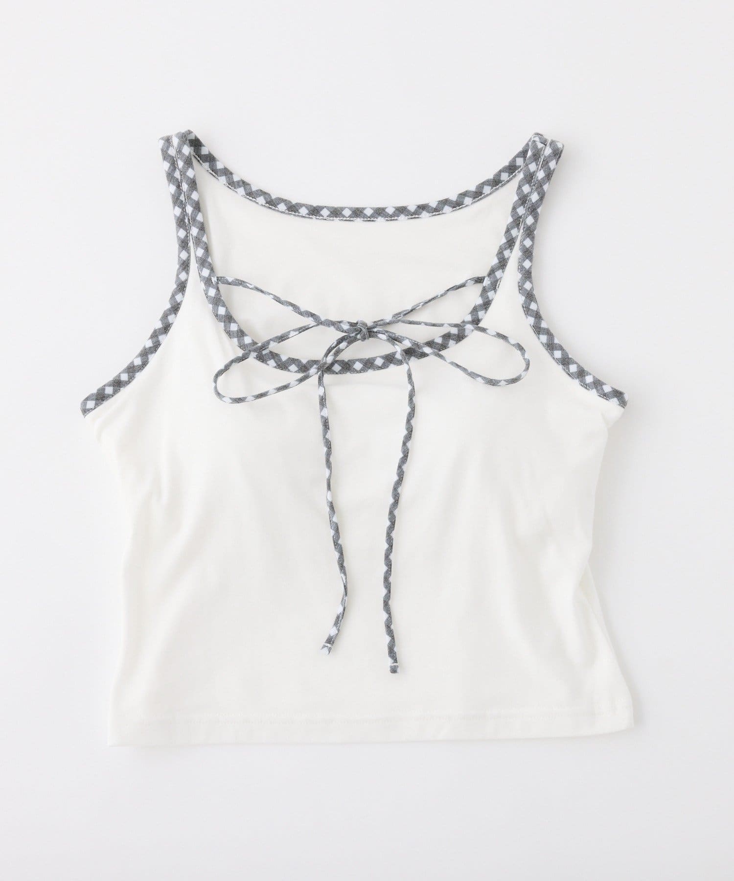 胸元にあしらったリボンとパイピングデザインがポイントの、カップ付きインナー。