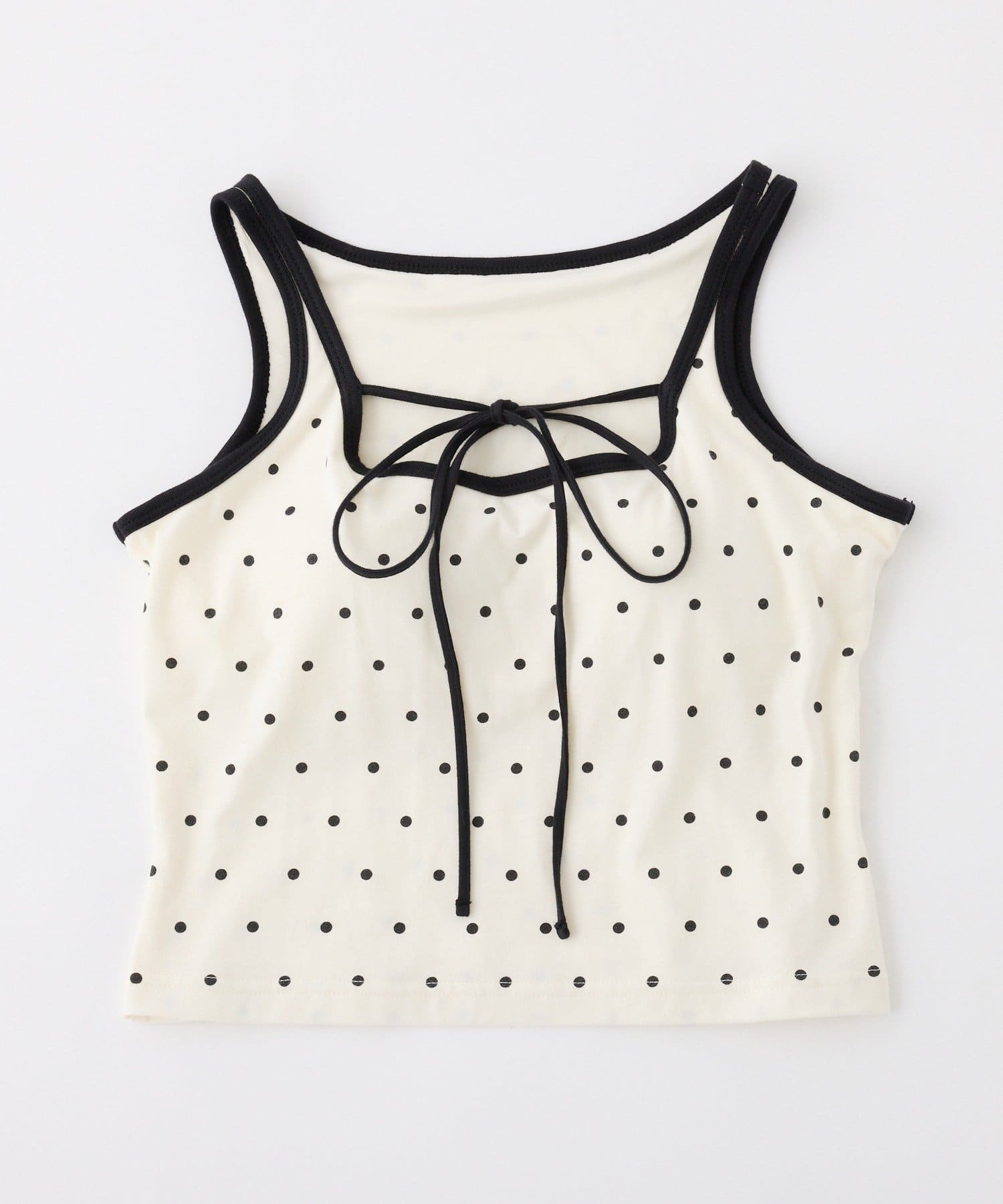 胸元にあしらったリボンとパイピングデザインがポイントの、カップ付きインナー。