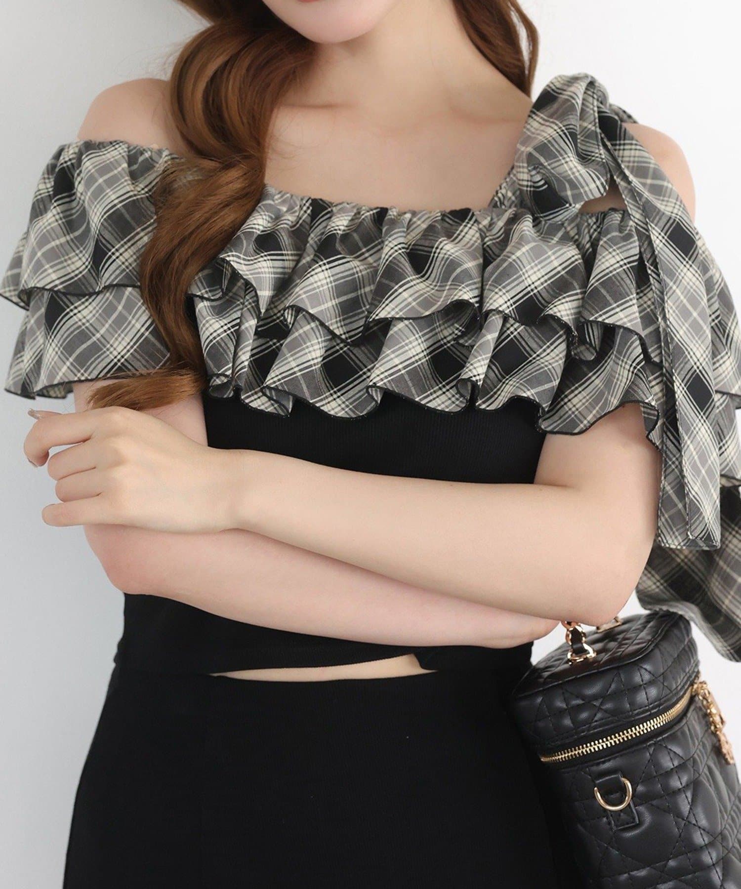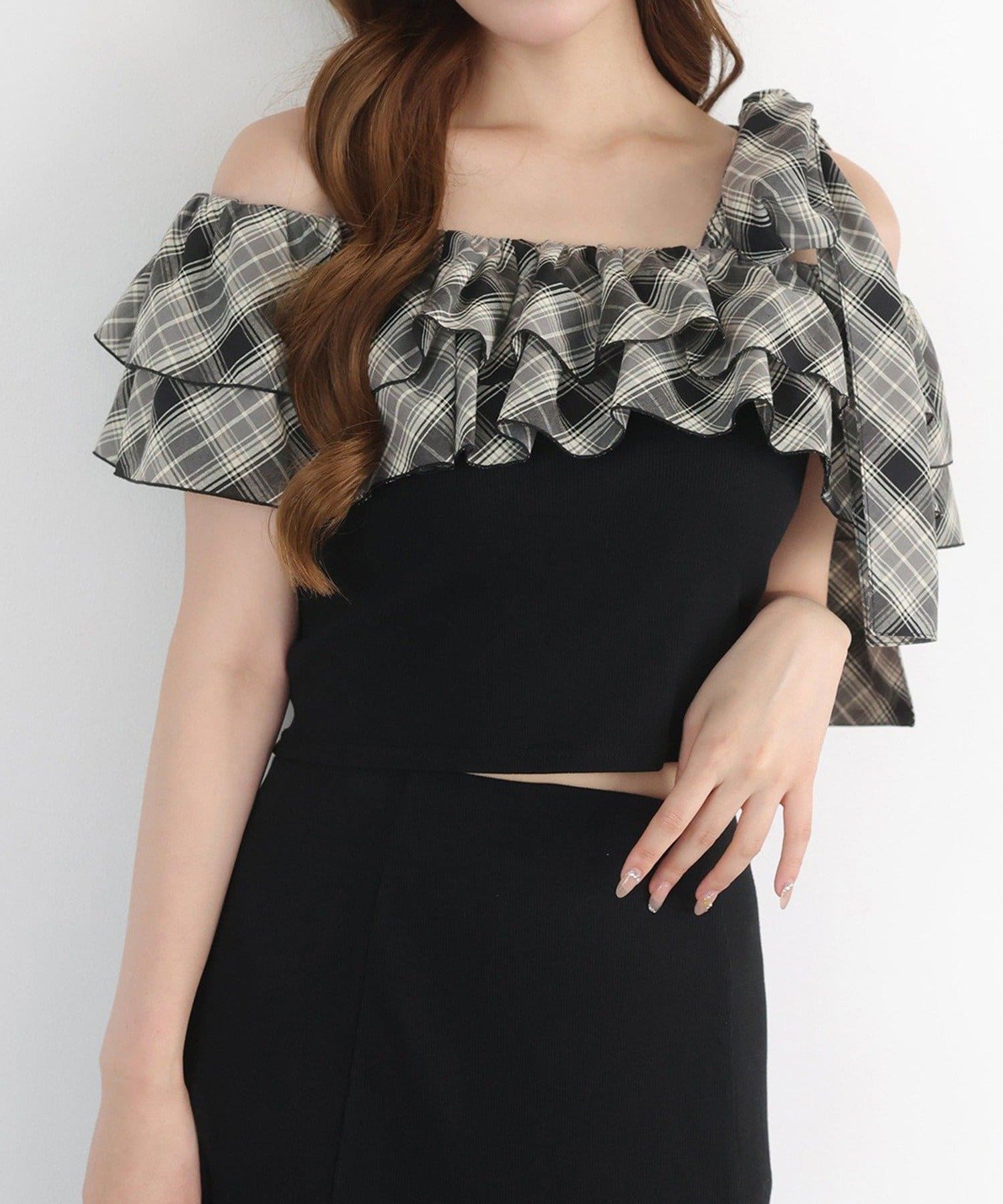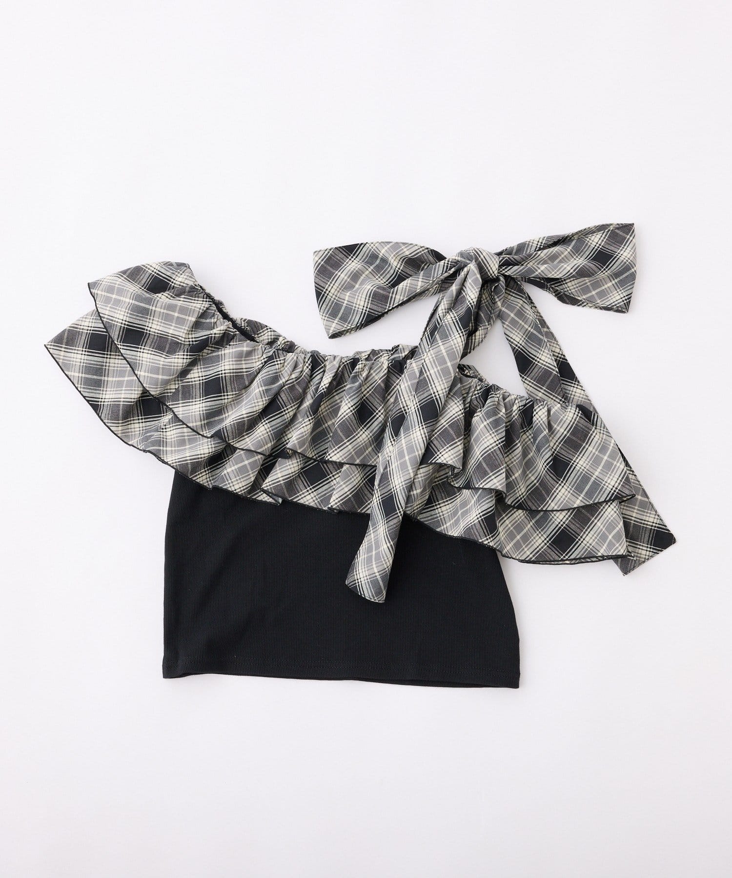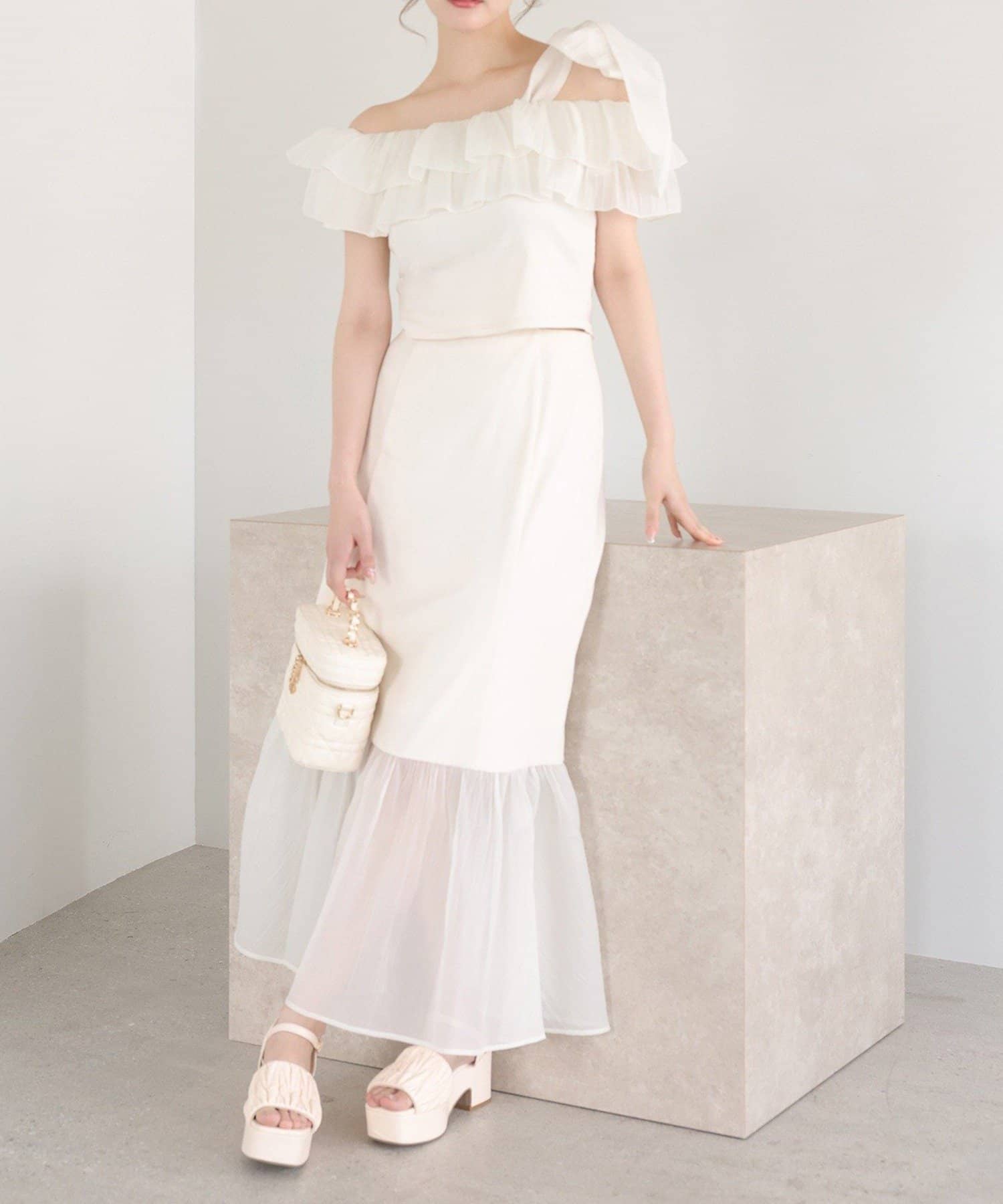 ワンショルダーのシルエットに、たっぷりのフリルと大きめリボンをあしらった主役級トップス。