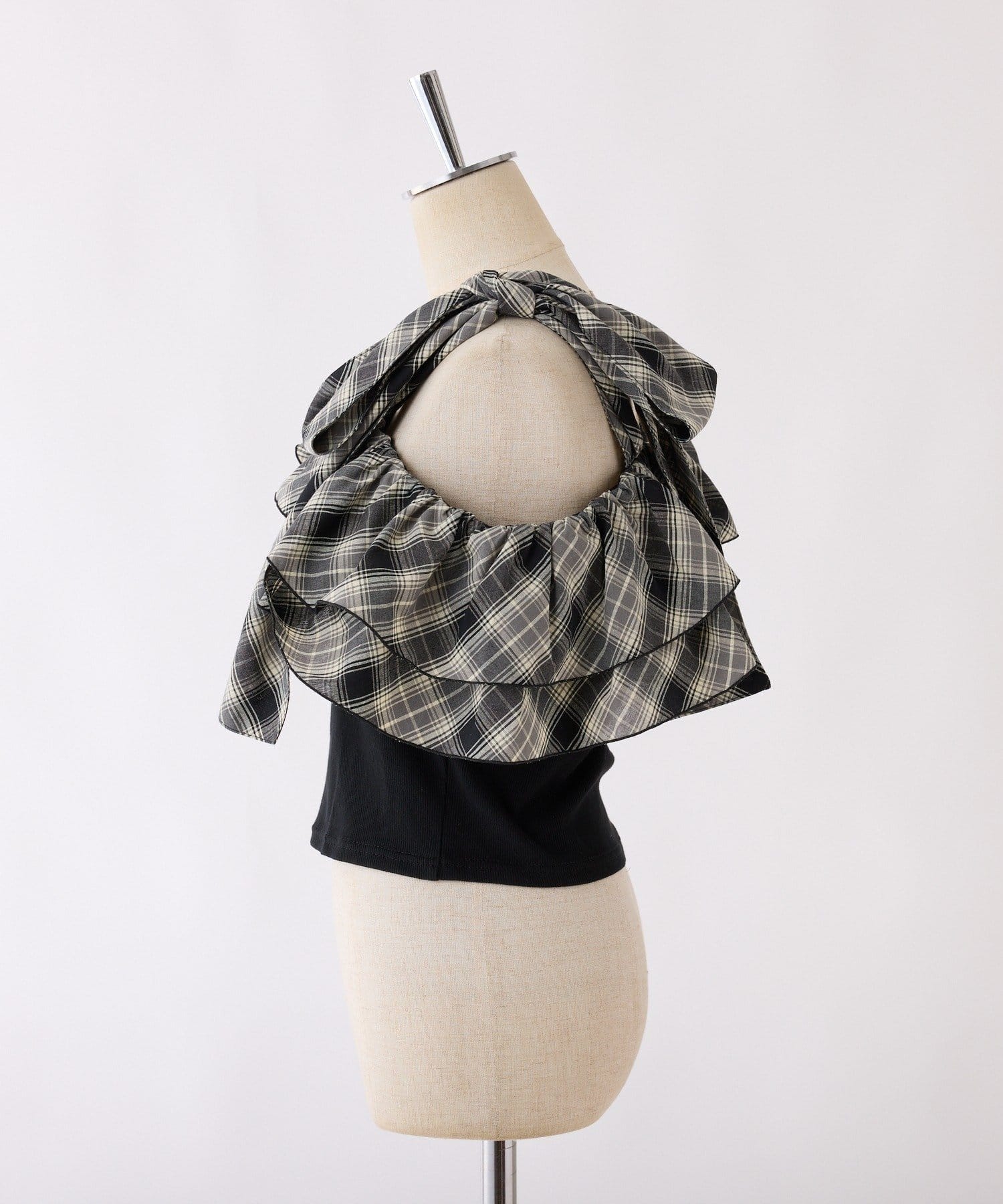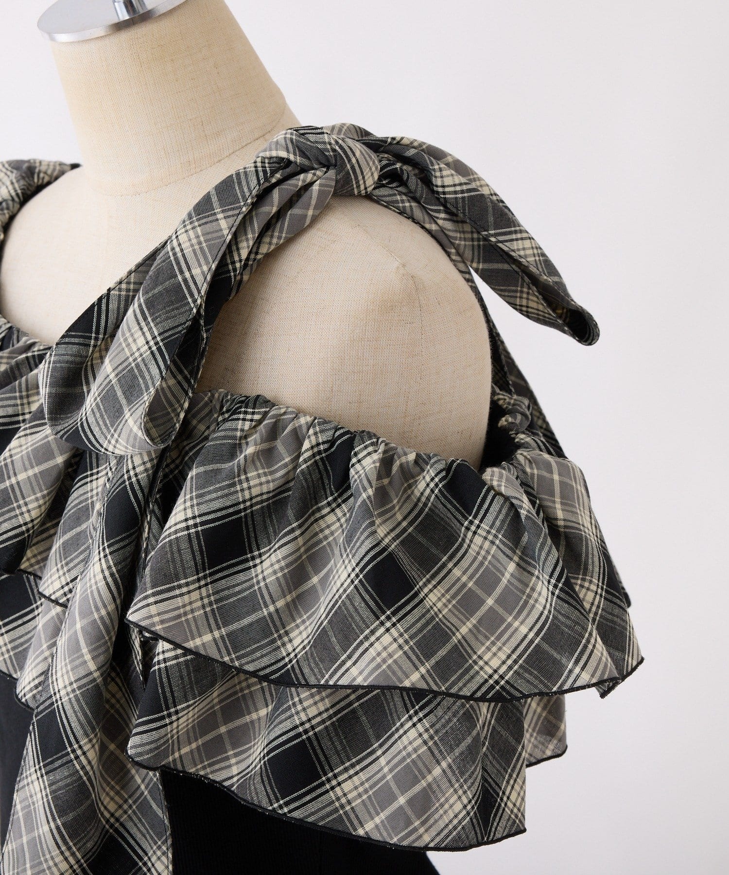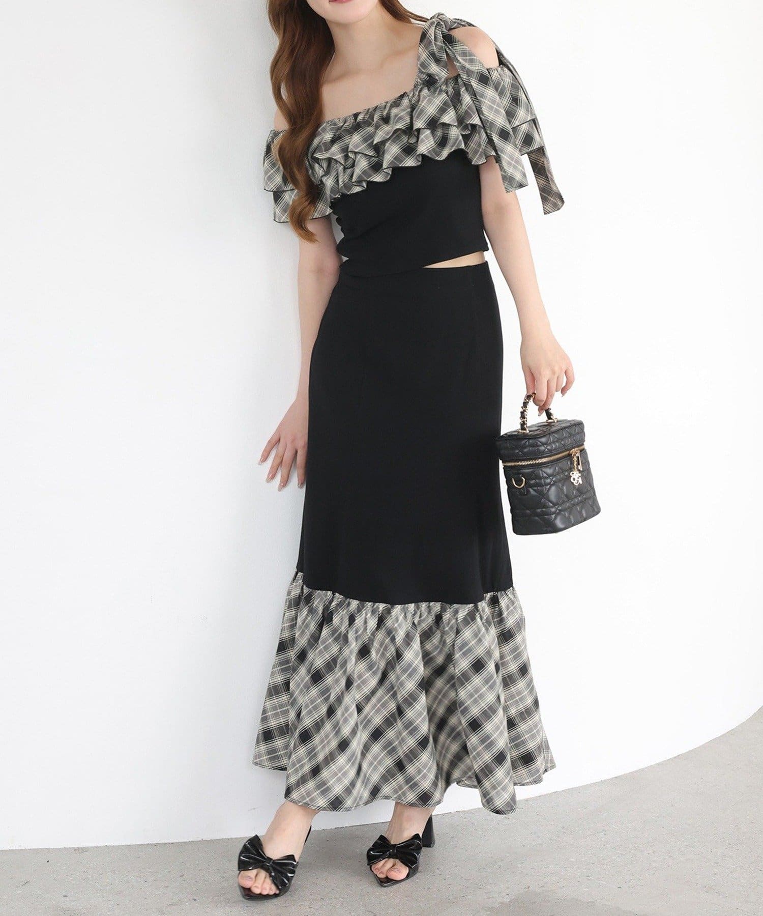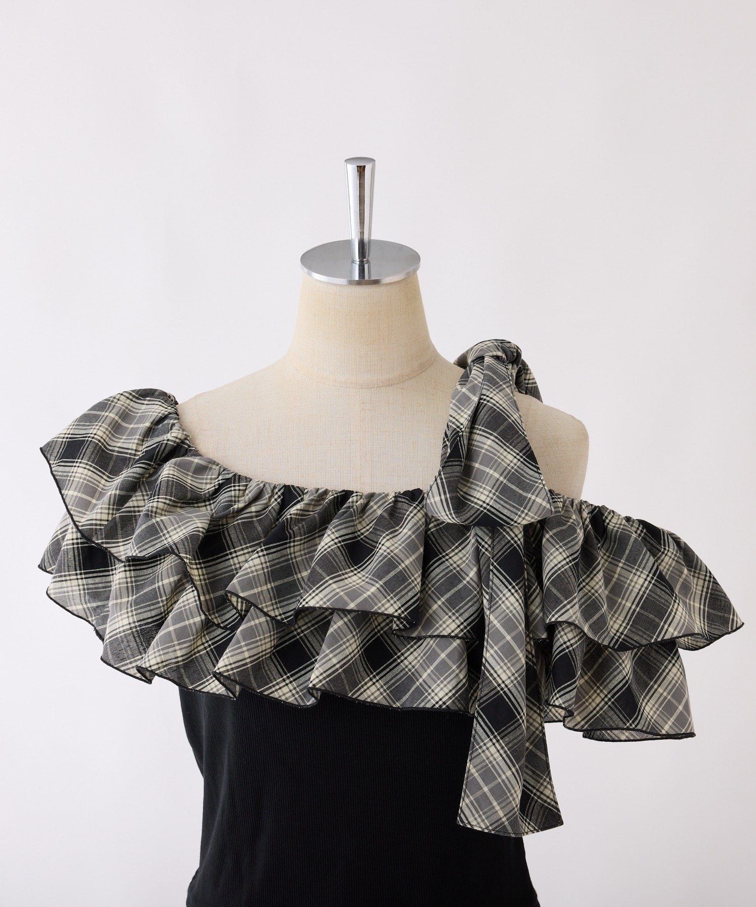 ワンショルダーのシルエットに、たっぷりのフリルと大きめリボンをあしらった主役級トップス。