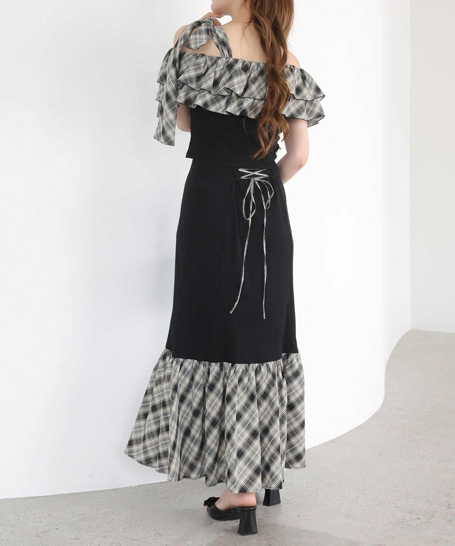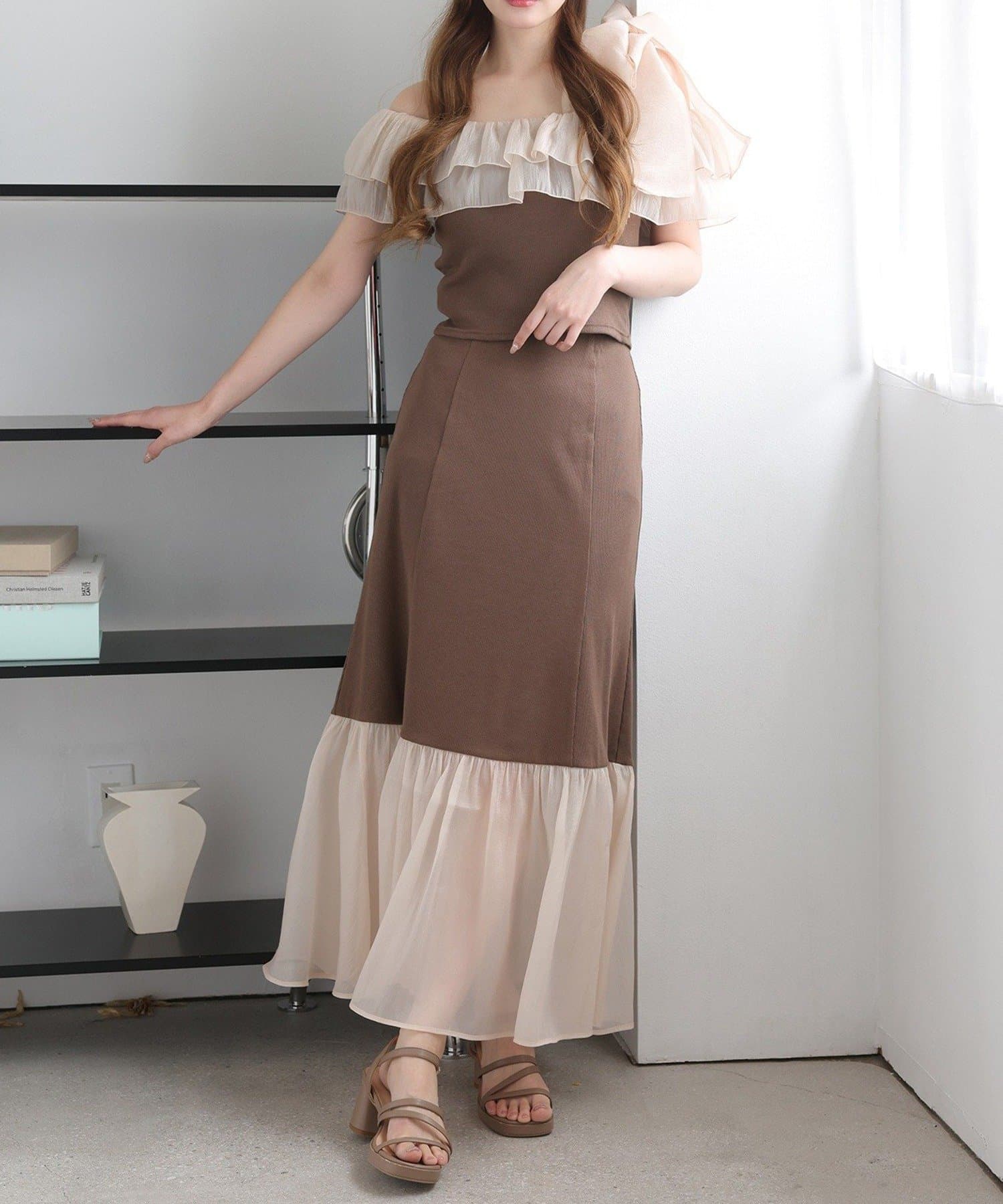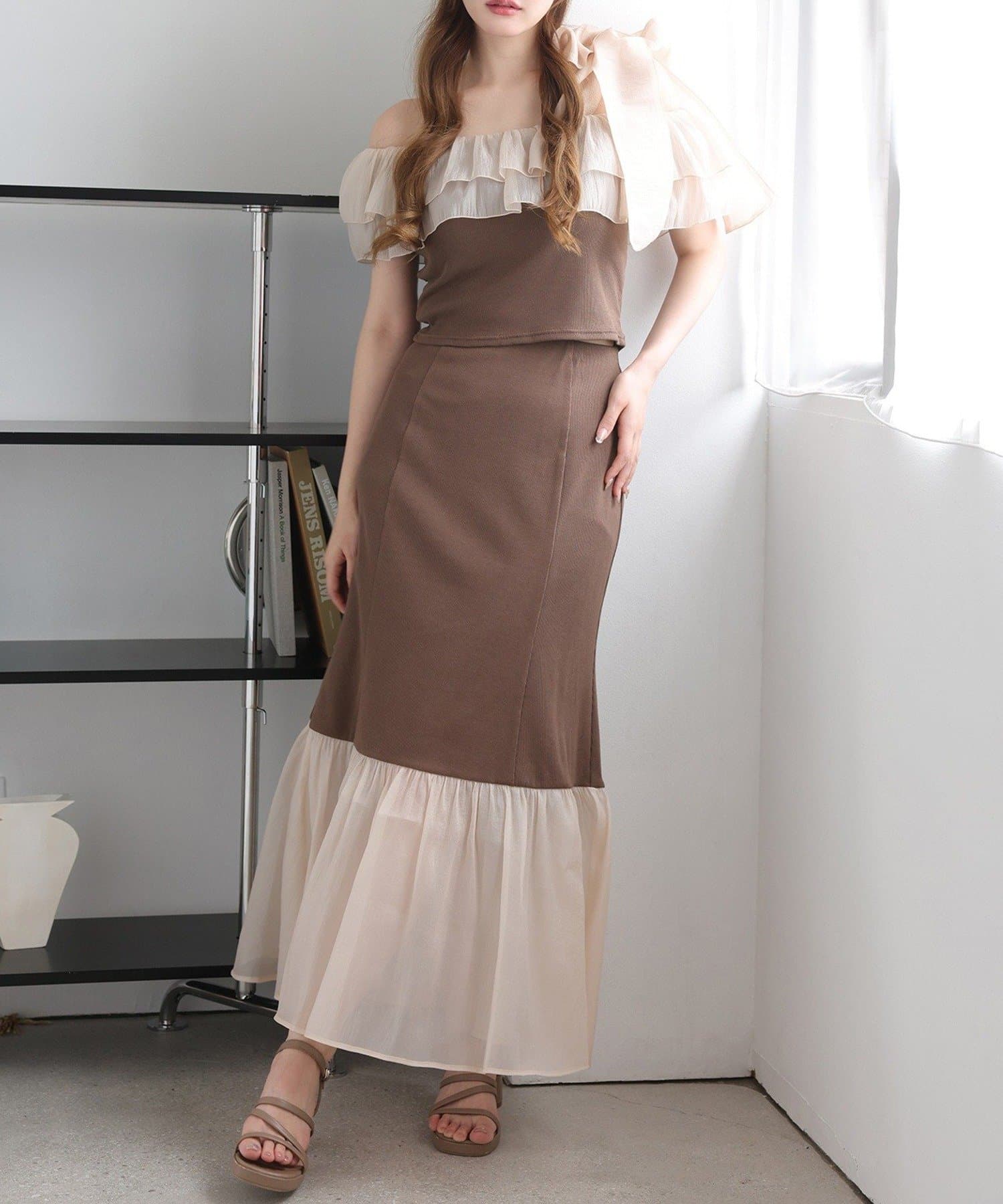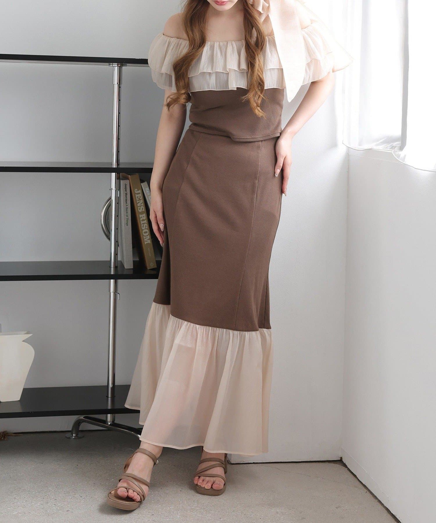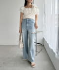 ボリュームのあるティアードスカートと合わせて、ロマンティックな着こなしも☆
