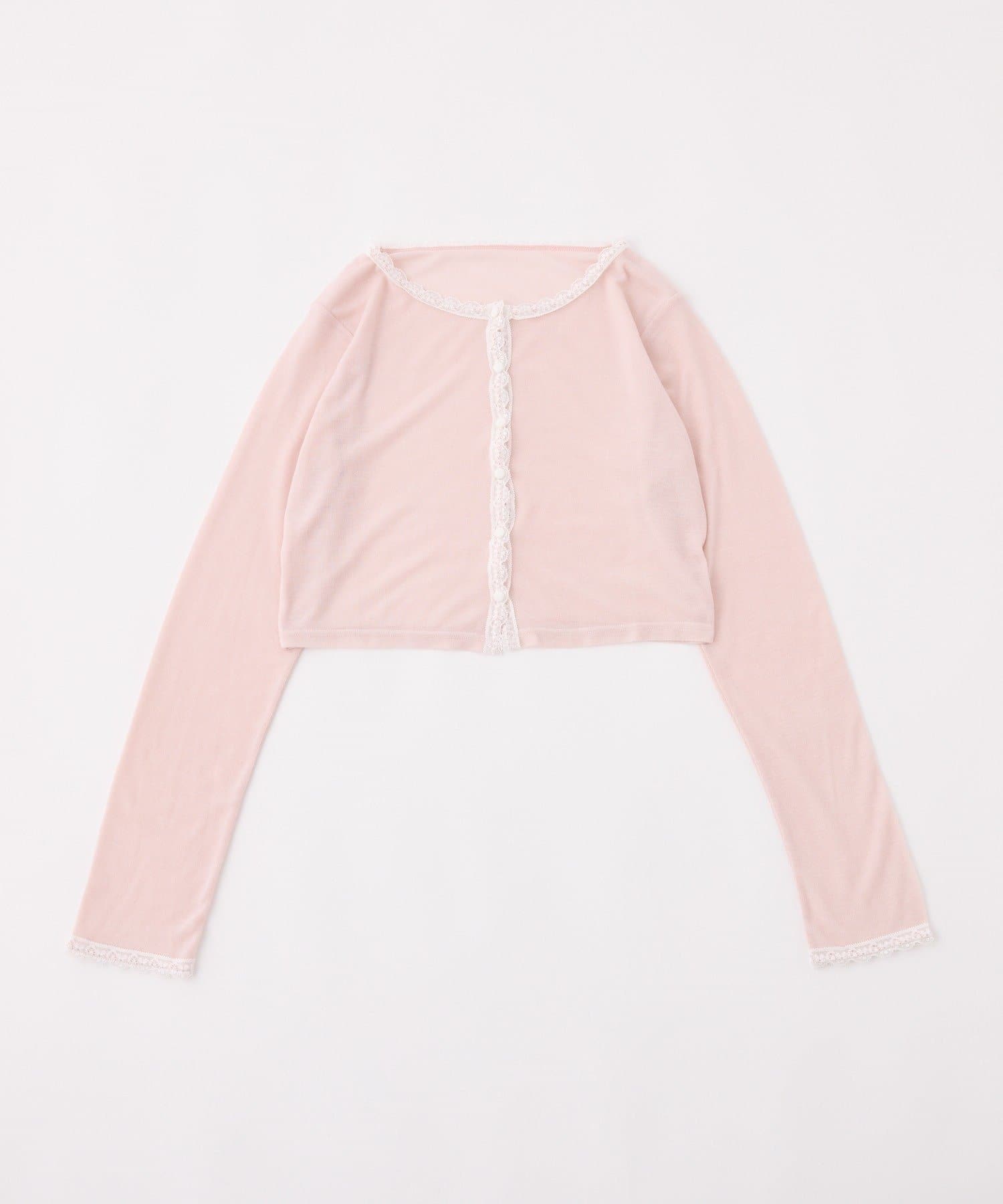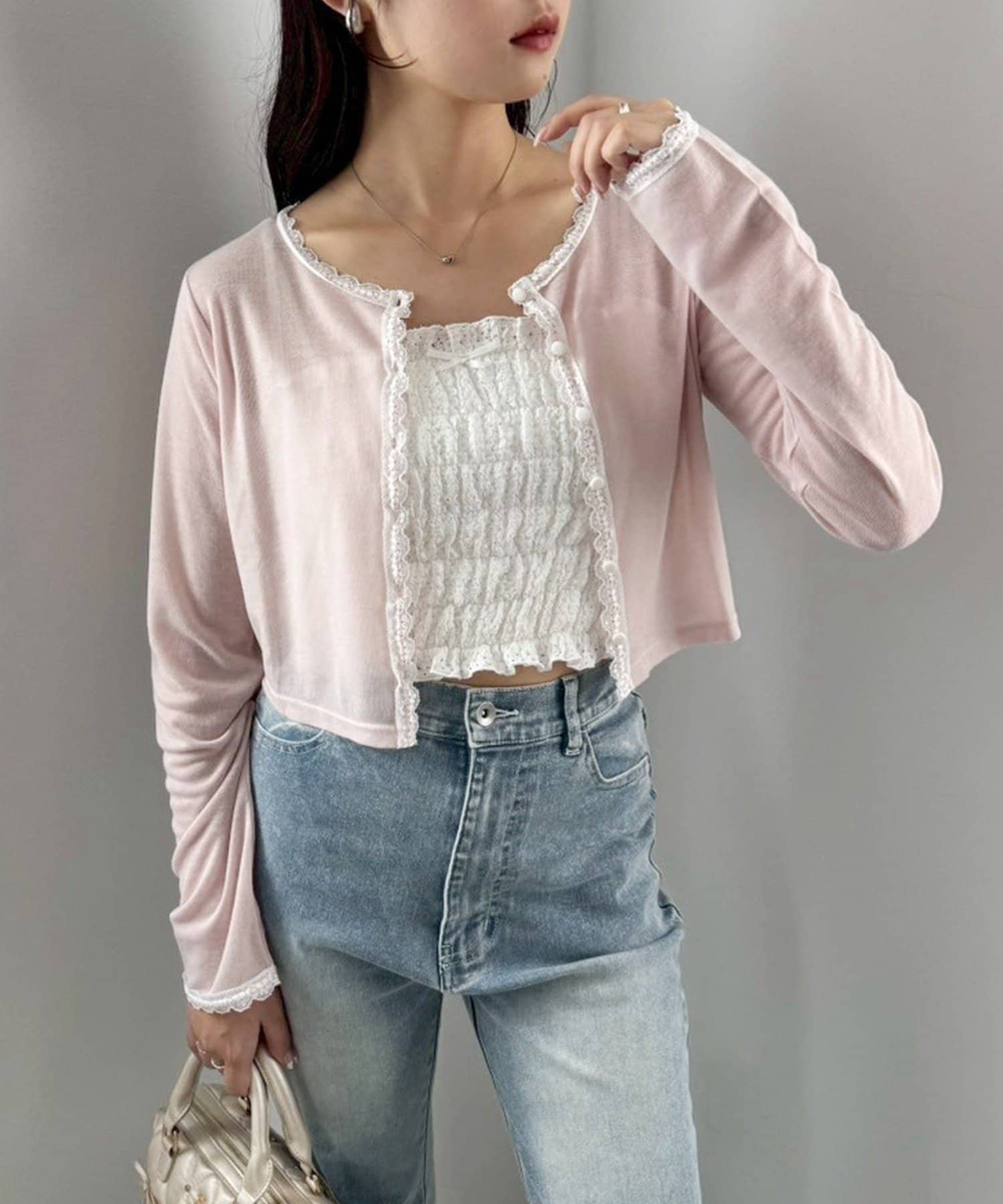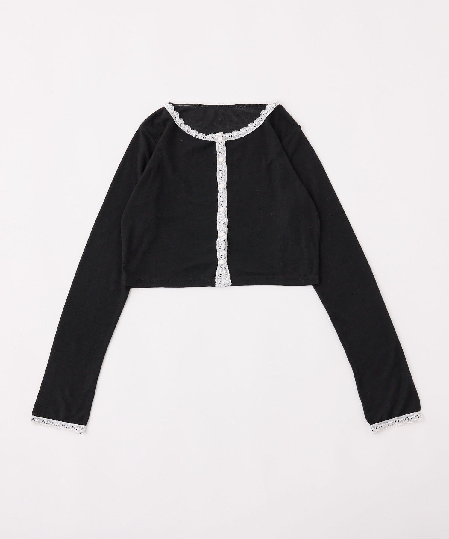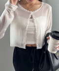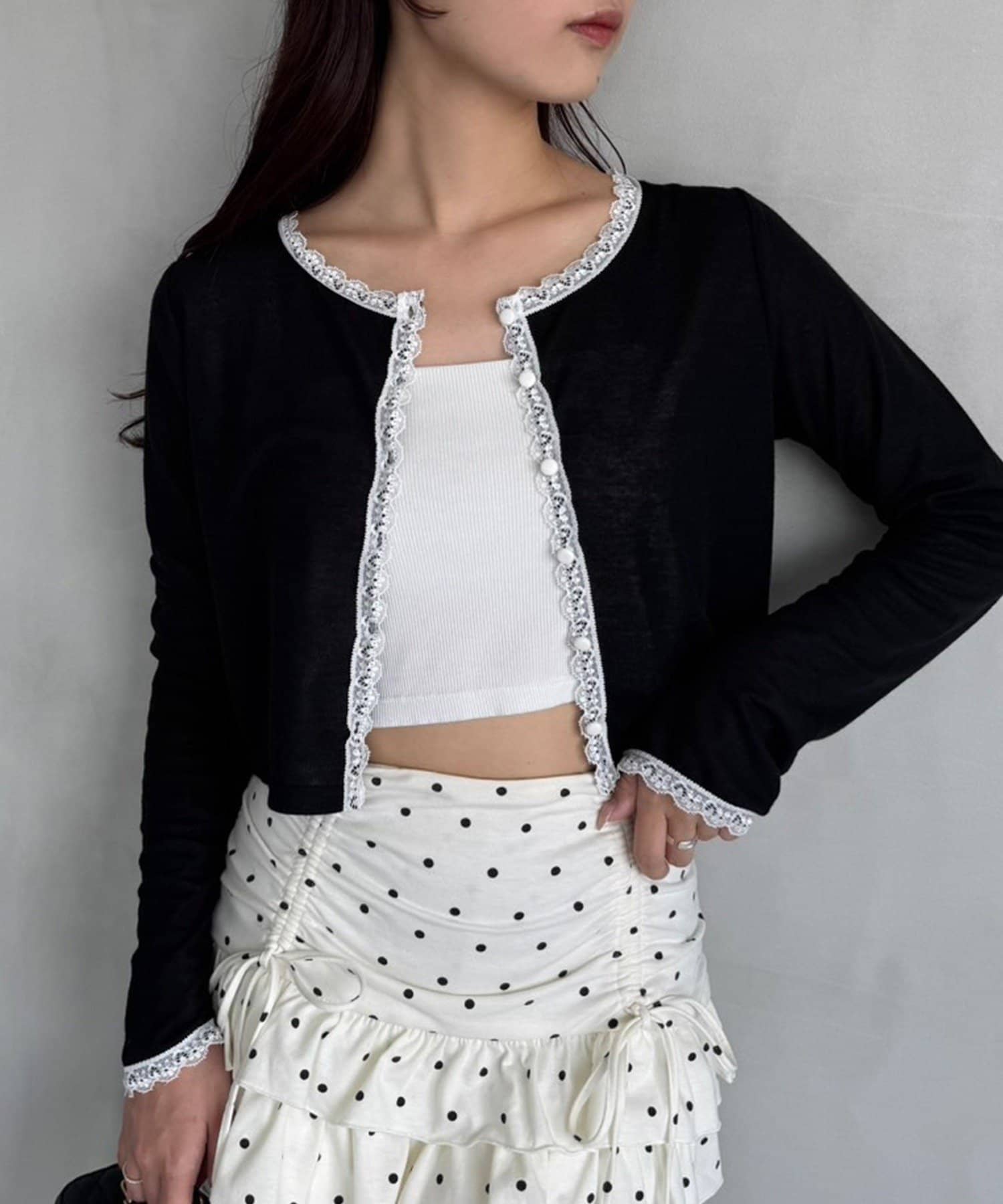 ショート丈でこなれ感があり、レースが華やかさをプラスしてくれるカット素材のカーディガン